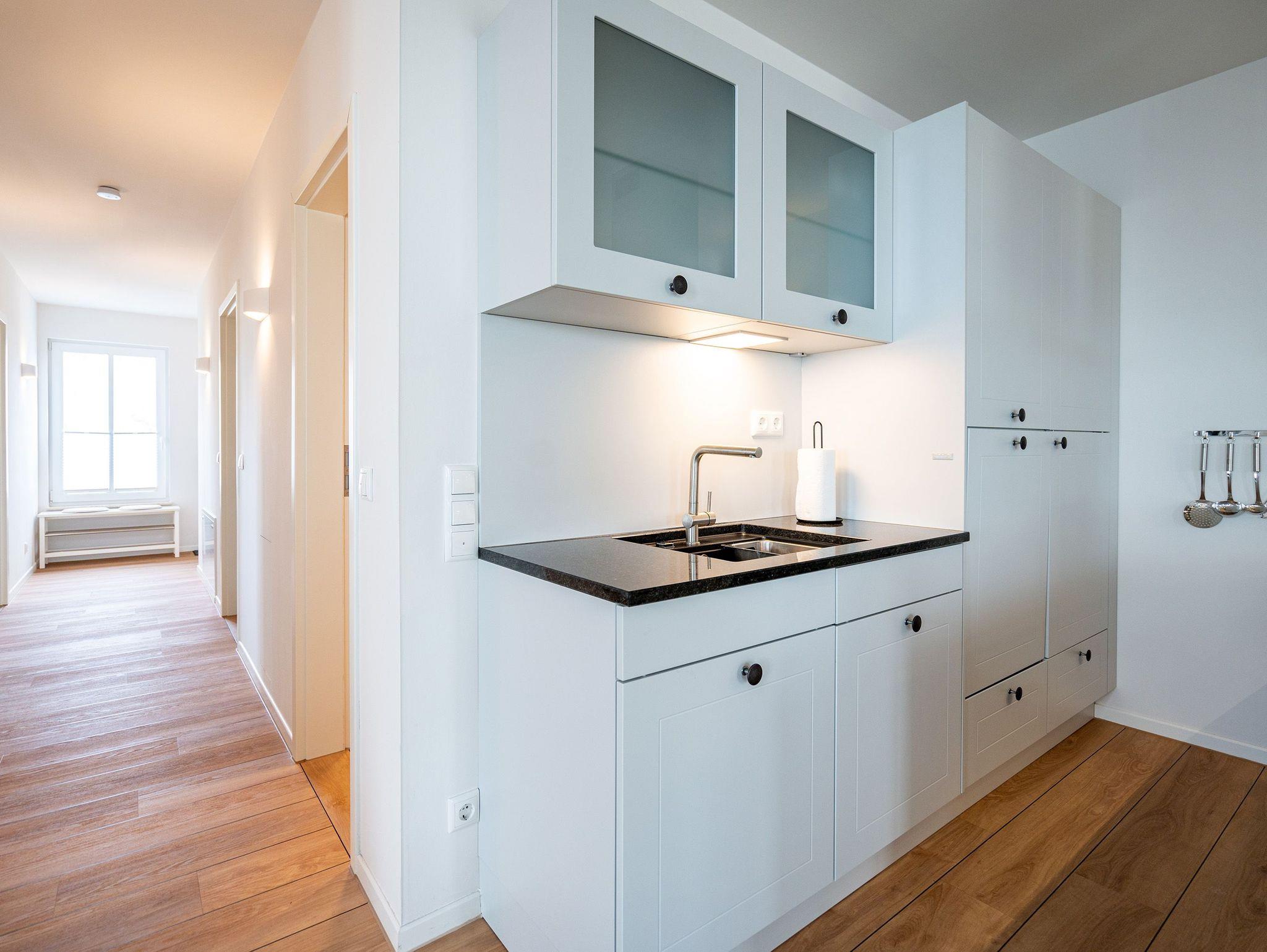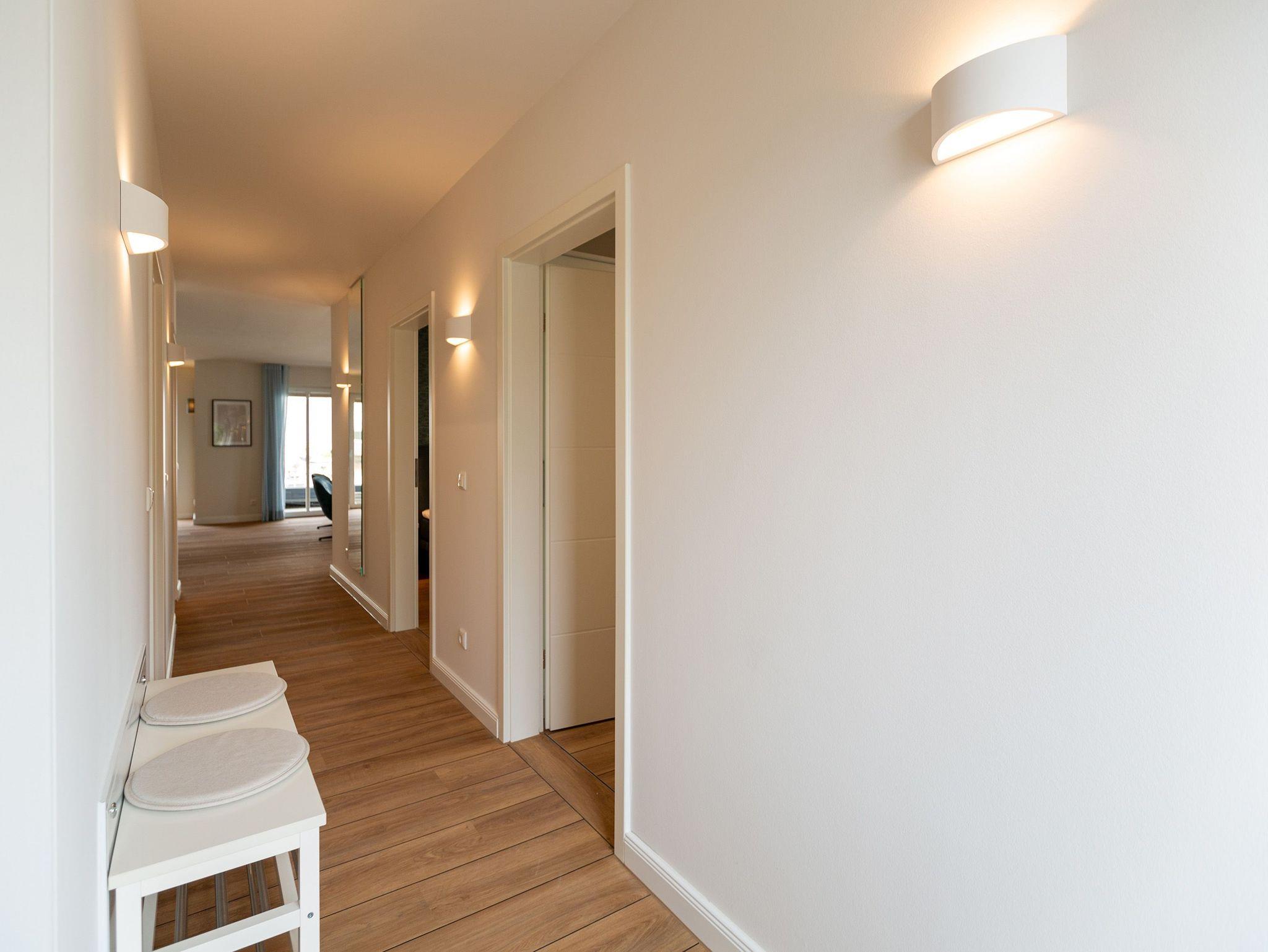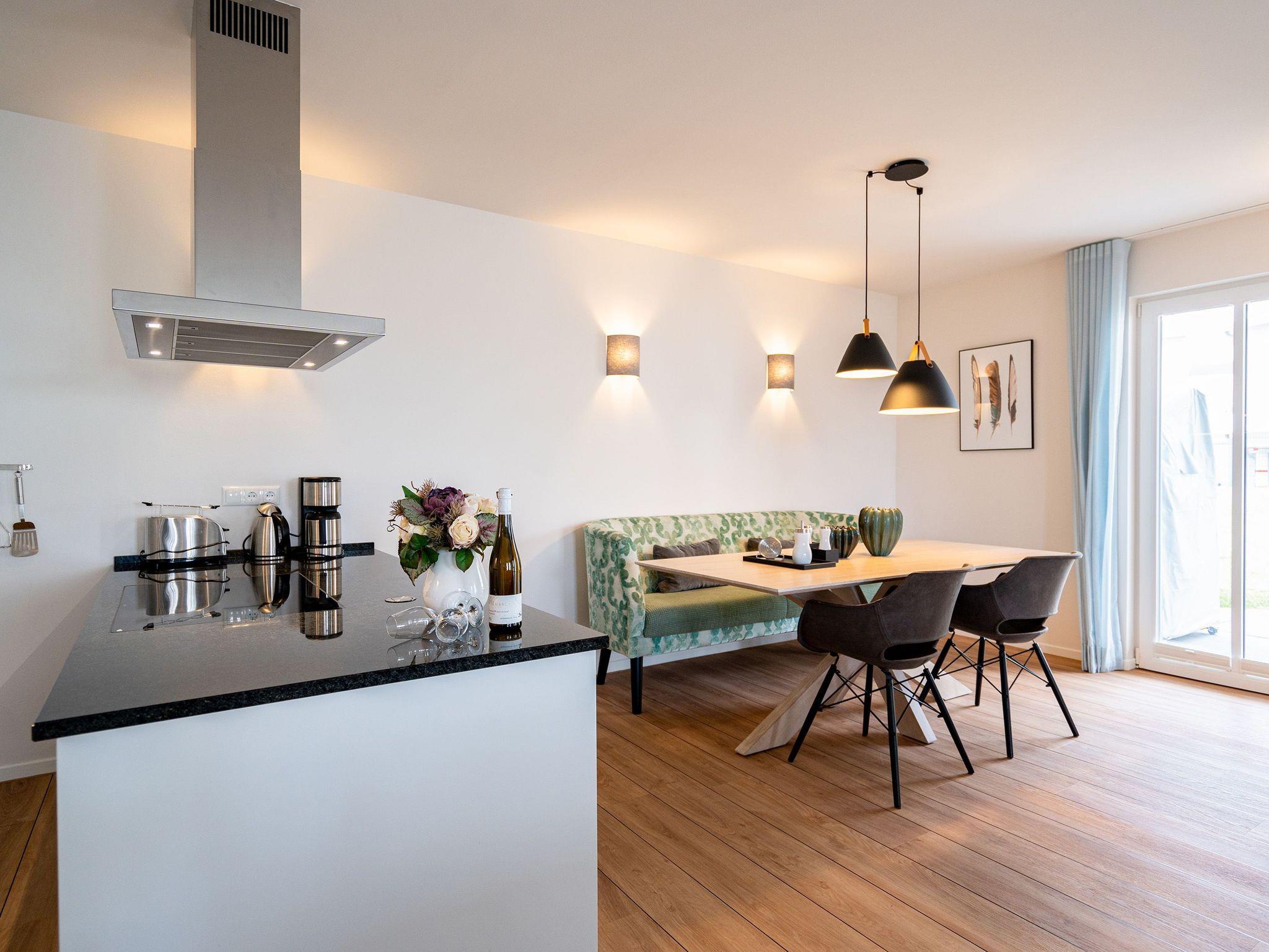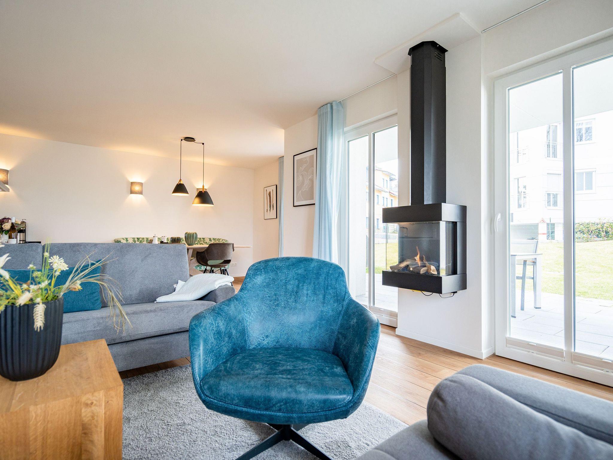 In diesen 2021 errichteten Häusern trifft Helligkeit auf Moderne und bietet Ihnen in seinen stilvoll eingerichteten Zwei- bis Drei-Zimmer Appartements Komfort auf höchster Ebene. Die offen gestalteten Wohn-Ess-Bereiche überzeugen durch ein stylisches Ambiente und ihr großzügiges Raumkonzept. Die teilweise mit Kochinseln ausgestatteten Küchen integrieren sich perfekt in den ebenso schlichten wie modernen Wohnraum. Alle Appartements verfügen über zwei Bäder oder ein Bad und ein zusätzliches Gäste-WC. Um Ihre Auszeit am Meer zusätzlich zu verschönern, wurden alle Appartements mit Gaskamin und Finnischer Sauna ausgestattet. Genießen Sie von den großzügigen Balkonen und Terrassen den Ausblick auf die parkähnliche Grünanlage oder verbringen Sie Ihren Abend auf dem frei zur Verfügung stehenden Grillplatz mit Sitzecke und Grill. Ein kostenloser PKW-Stellplatz in der Tiefgarage (Einfahrtshöhe 1,95m, Anfahrt über die Straße ?Kieferngrund? Höhe Hausnummer 17) gehört ebenso zum Komfort dieser Appartement-Häuser wie kostenfreies W-Lan. Für E-Autos steht am Objekt eine E-Ladesäule mit 2 Ladeplätzen (gesamt 22 kW) auf dem Grundstück kostenpflichtig zur Verfügung. Eine Waschmaschine und ein Trockner können Sie gegen Gebühr über die kostenlose App WeWash nutzen.