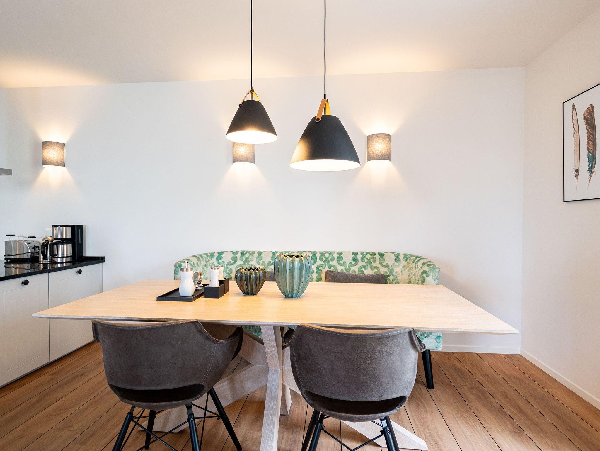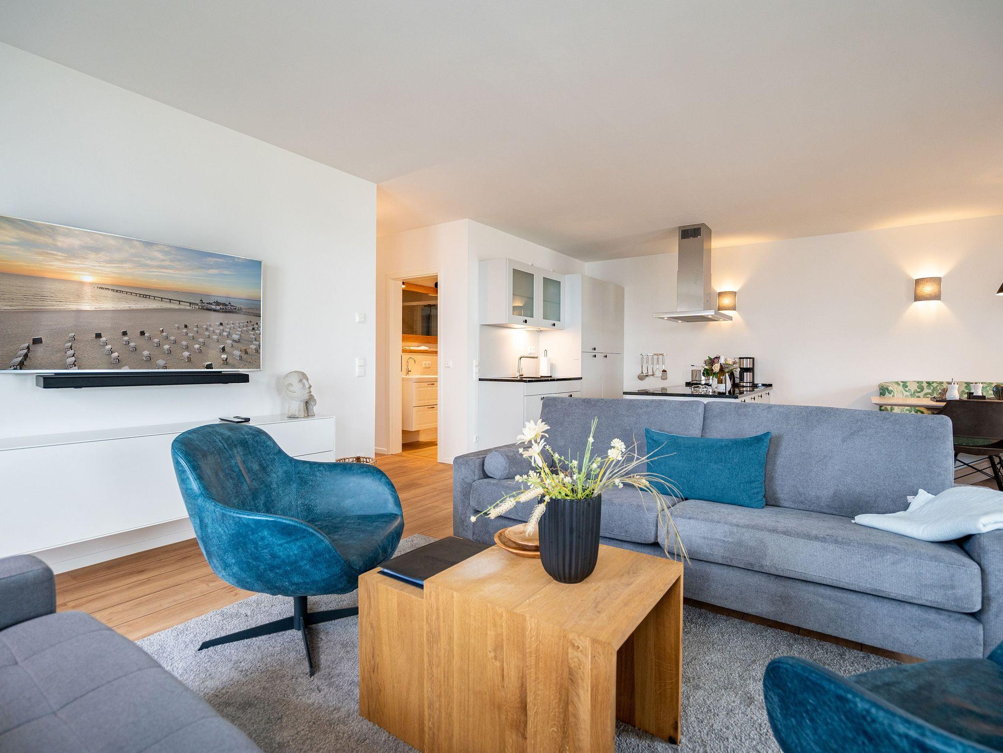 Sie wünschen sich Entspannung und Erholung für bis zu vier Personen in einem exklusiven Ferienappartement? Dieses großzügig geschnittene 88qm Urlaubsdomizil im Erdgeschoss (barrierefrei) überzeugt durch sein offenes Raumkonzept in Wohn- und Essbereich und versetzt Sie direkt in Urlaubsstimmung. Exklusive Designmöbel in schlichter Eleganz und ein perfekt abgestimmtes Farbkonzept sorgen für eine moderne, aber dennoch warme Wohnatmosphäre. Die offene Küche mit Kochinsel und hochwertigen Siemens-Elektrogeräten wie Backofen, Induktionskochfeld und Kühlschrank mit Gefrierfach sorgen für den entsprechenden Komfort beim Zubereiten Ihrer Speisen. Eine edle Granit-Arbeitsplatte fügt sich perfekt in das anspruchsvolle Gesamtkonzept der Küche ein. Genießen Sie nach einem ausgiebigen Strandspaziergang die wohltuende Wärme des Gaskamins von der gemütlichen Sofalandschaft aus. Der großzügige Flat-TV mit Soundsystem sorgt für die richtige Stimmung an Ihren Fernsehabenden. Ein besonderes Highlight dieses Appartements ist die nach Süden ausgerichtete Terrasse, von der aus Sie sich bei richtiger Windrichtung und entsprechendem Wellengang sogar das nicht weit entfernte Meer bis in Ihr Appartement holen können. Genießen Sie auch von einem der beiden Schlafzimmer, die mit hochwertigen Boxspringbetten (1,80m x 2,00m), Flat-TV und Einbauschrank mit Safe ausgestattet sind, das Rauschen des Meeres. Für ein besonderes Spa-Erlebnis sorgen die beiden Badezimmer mit Regendusche und beheizten Kosmetikspiegeln. Eine Finnische Sauna zählt ebenso zur hochwertigen Ausstattung dieses Appartements, wie kostenfreies W-Lan und ein Stellplatz in der hauseigenen Tiefgarage. Ihre Fahrräder können Sie gern im Appartement zugehörigen Abstellraum im Nachbarhaus unterbringen.