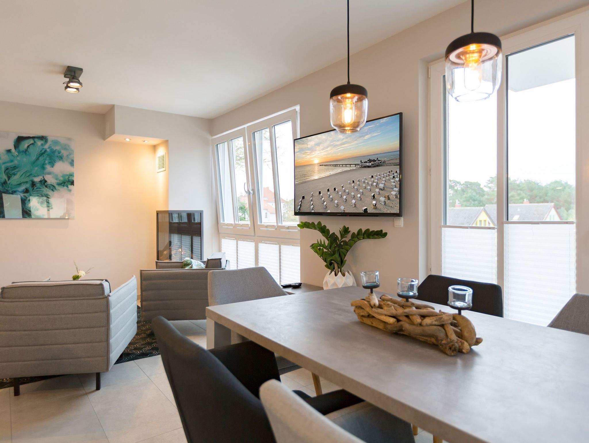 Modernes Appartement mit Sauna und Balkon nahe Strand in Ahlbeck für erholsamen Urlaub.