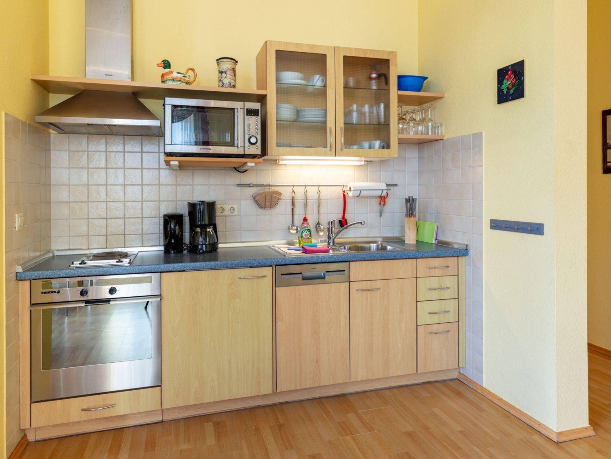 Die Wohnung besteht aus zwei Schlafräumen mit jeweils einem Doppelbett, einem kombinierten Wohn-und Schlafraum mit Doppelbettschlafcouch, einer kompletten Küchenzeile mit Geschirrspüler, Herd, Backofen, Kaffeemaschine. Bad mit Dusche und WC.