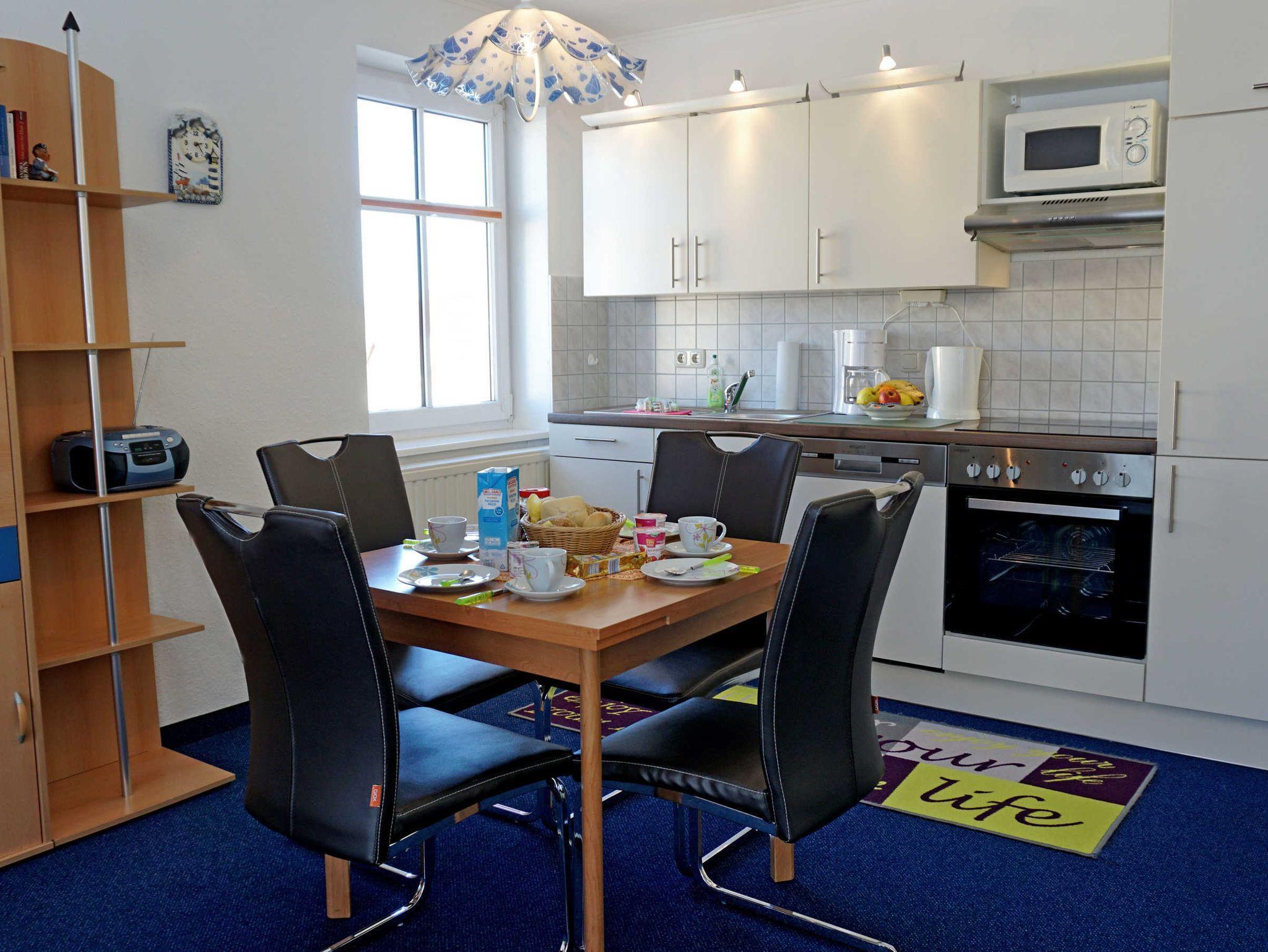 Die Ferienwohnung befindet sich im schönen frisch renovierten Haus Antje im 1. OG. Das gemütliche, komplett eingerichtete Wohnzimmer mit Couchgarnitur (Schlafcoch) und Küchenzeile lässt keine Wünsche offen. Das Schlafzimmer ist mit einem Doppelbett ausgestattet (genügend Platz für Babybett vorhanden). Das großzügige Bad ist ausgestattet mit Badewanne, Waschtisch und WC.