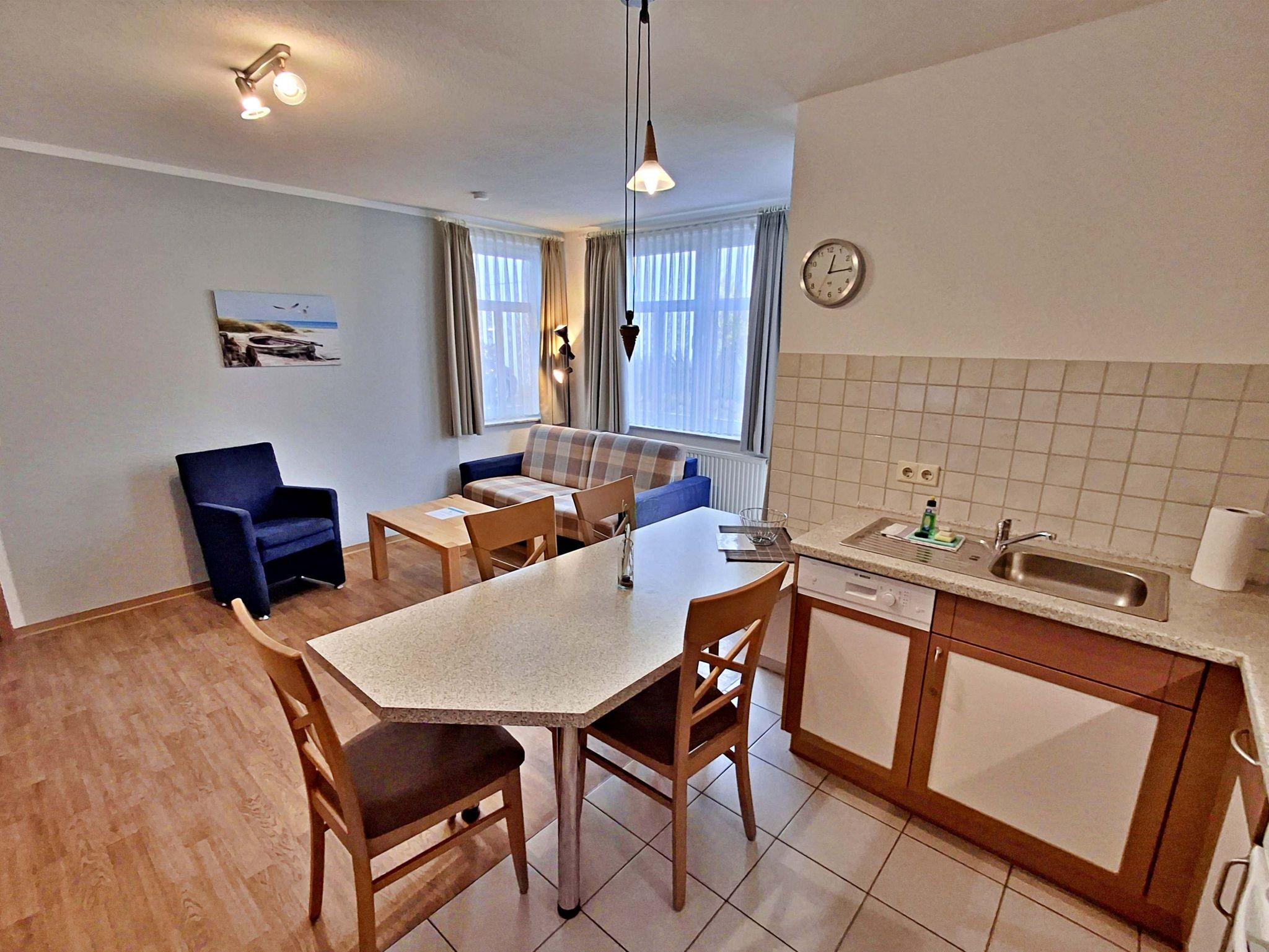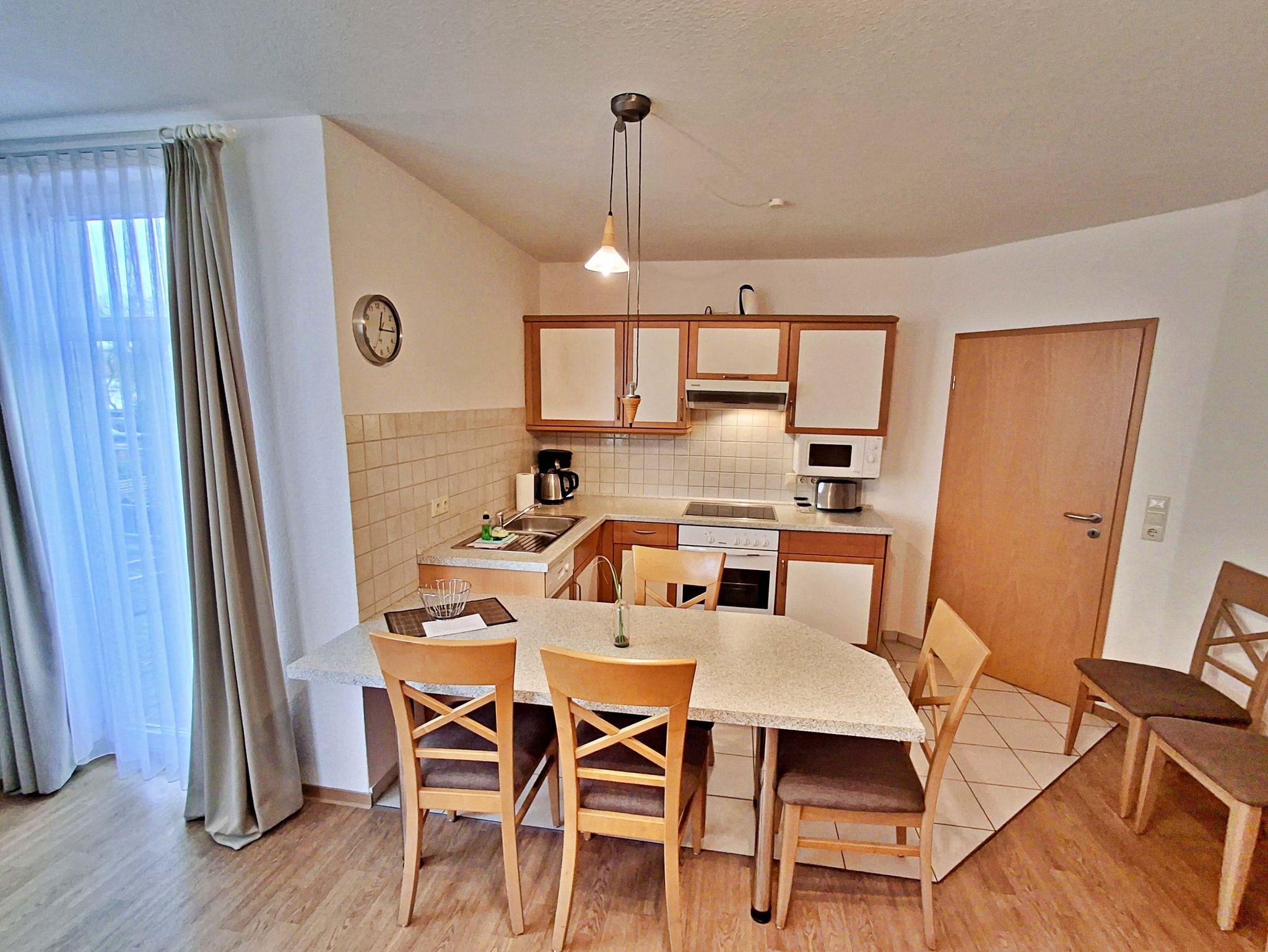 Die moderne Küchenzeile mit Cerankochfeld, Backofen, Geschirrspüler, Mikrowelle, Kaffeemaschine, Wasserkocher und Toaster bietet optimalen Komfort für Selbstversorger. Zur Ausstattung gehören außerdem Flachbild-TV, Radio-CD-Player und kostenfreies WLAN.