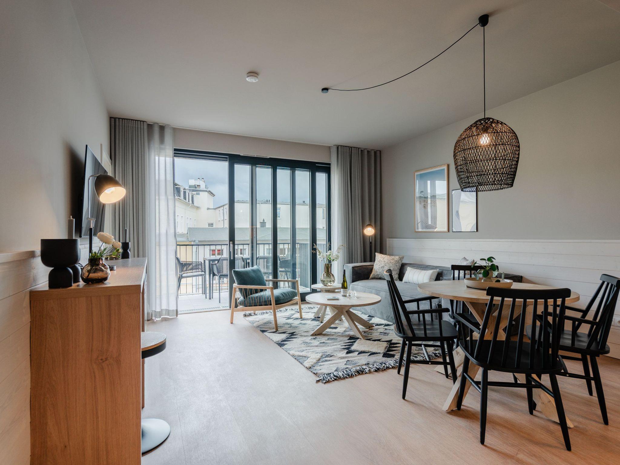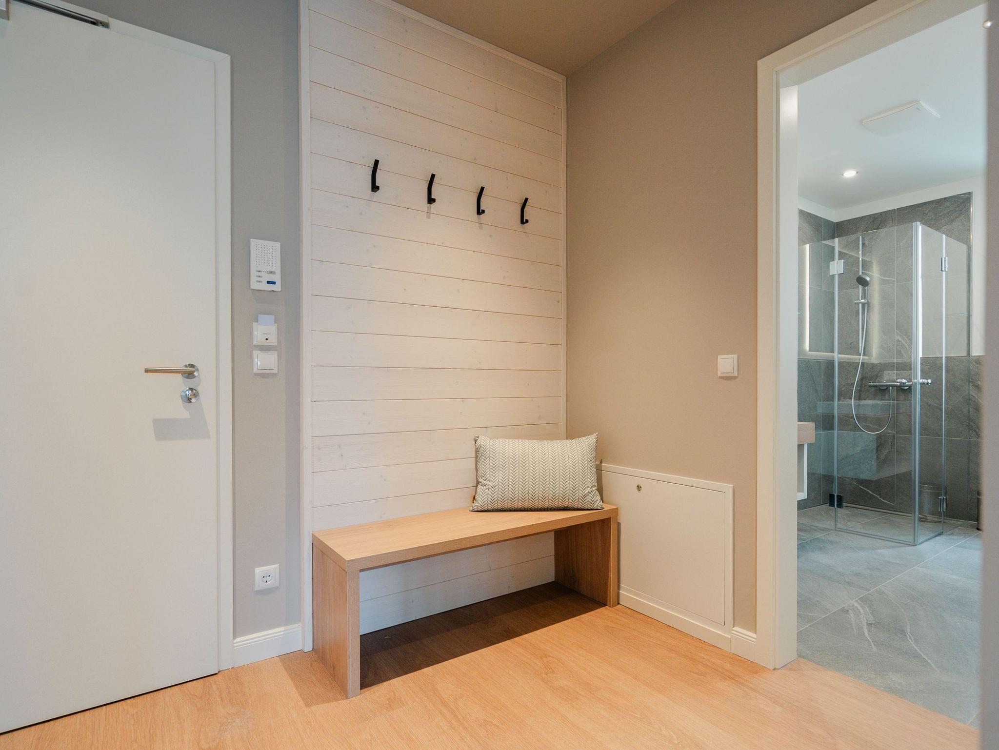 Drei Räume zum Verlieben bietet das Appartement B 2.2 in der 2. Etage der Strandterrasse. Helle, große Zimmer lassen viel Licht in dieses Auszeitparadies für bis zu 4 Personen. Die 76 Quadratmeter sind ein gemütliches und schickes Domizil, um gemeinsam mit der Familie oder mit Freunden eine unvergesslich schöne Zeit am Meer zu verbringen. Nordisches Design erwartet Sie im Wohn-Esszimmer und in den beiden Schlafzimmern. Dazu ist die Wohnung mit allen Annehmlichkeiten ausgestattet, die man für entspannte Tage brauchen kann. Die offene Küche verfügt über modernste Elektrogeräte wie einem Backofen , einen 4-Platten-Induktionsherd und eine Nespresso-Kapselmaschine. Ein gemütliches Wohnzimmer mit bequemem Sofa, Sessel und einem schönen, großen Esstisch sorgt für das ersehnte Urlaubsgefühl. Genießen Sie die Stunden vor dem Elektrokamin (ohne Wärmeabgabe) oder auf dem Balkon, der einen herrlichen, seitlichen Ausblick auf die Ostsee und auf die Seebrücke Ahlbeck gewährt. Was will man mehr. Ein Gartentisch mit Stühlen erlaubt sogar das Essen unter freiem Himmel. Die Süd-Ost-Ausrichtung ist perfekt für sonnige Frühstücke. Ein großer Flat-TV (50 Zoll) sorgt im Wohnzimmer für spannende Heimkinoabende. Zwei Schlafzimmer gibt es in dieser tollen Wohnung. Das erste Schlafzimmer verfügt über ein komfortables Boxspringdoppelbett (1,80m x 2,00m), einen Kleiderschrank, einen Flat-TV (43 Zoll) und den Zugang zu einem zweiten Balkon mit Gartenliege. Von hier aus können Sie auf die belebte Promenade von Ahlbeck und die dahinter liegende Ostsee schauen. Nur 80 Meter ist sie von Ihrem Domizil entfernt. Das zweite Schlafzimmer bietet ebenfalls ein Boxspringdoppelbett und einen Kleiderschrank sowie einen Flat-TV (32 Zoll). Die beiden Bäder sind mit Dusche, Waschtisch und WC ausgestattet. Sie lieben kuschelige Wärme? Dann entspannen Sie doch in der Infrarotsaunakabine, die in eines der beiden Bäder eingebaut ist. Alles ist da, damit Sie sich rundum wohlfühlen können. Sie brauchen also nur noch ankommen, Ihr Auto in der Tiefgarage auf Ihrem PKW-Stellplatz parken und schon kann die wundervolle Ostseeauszeit beginnen.