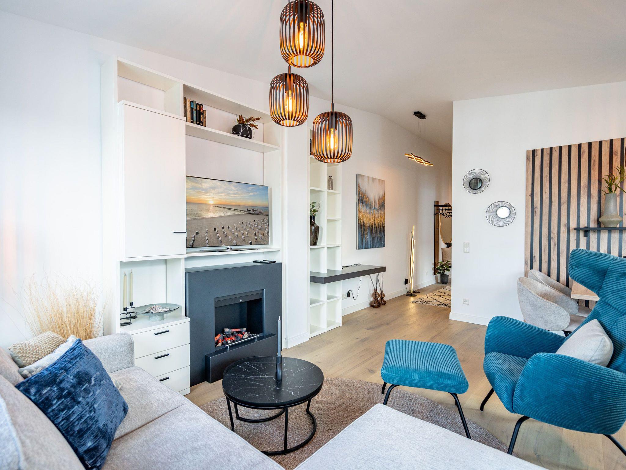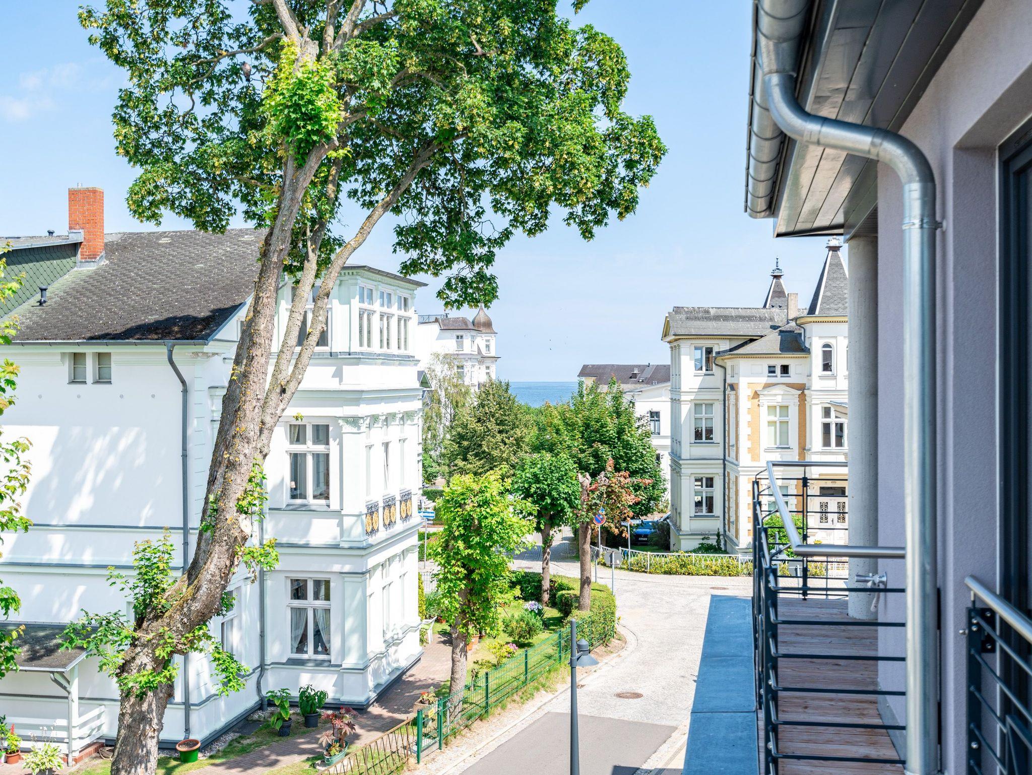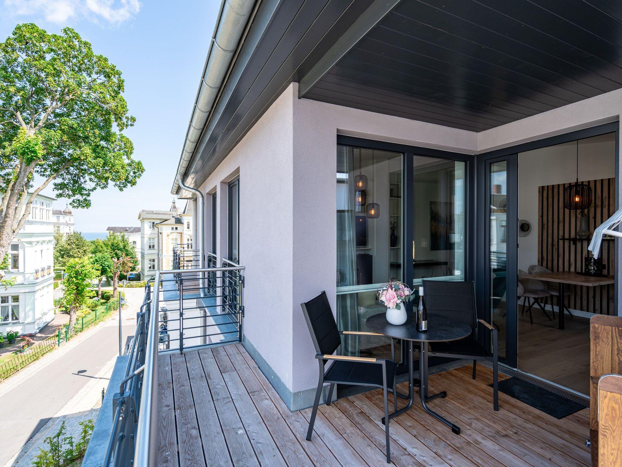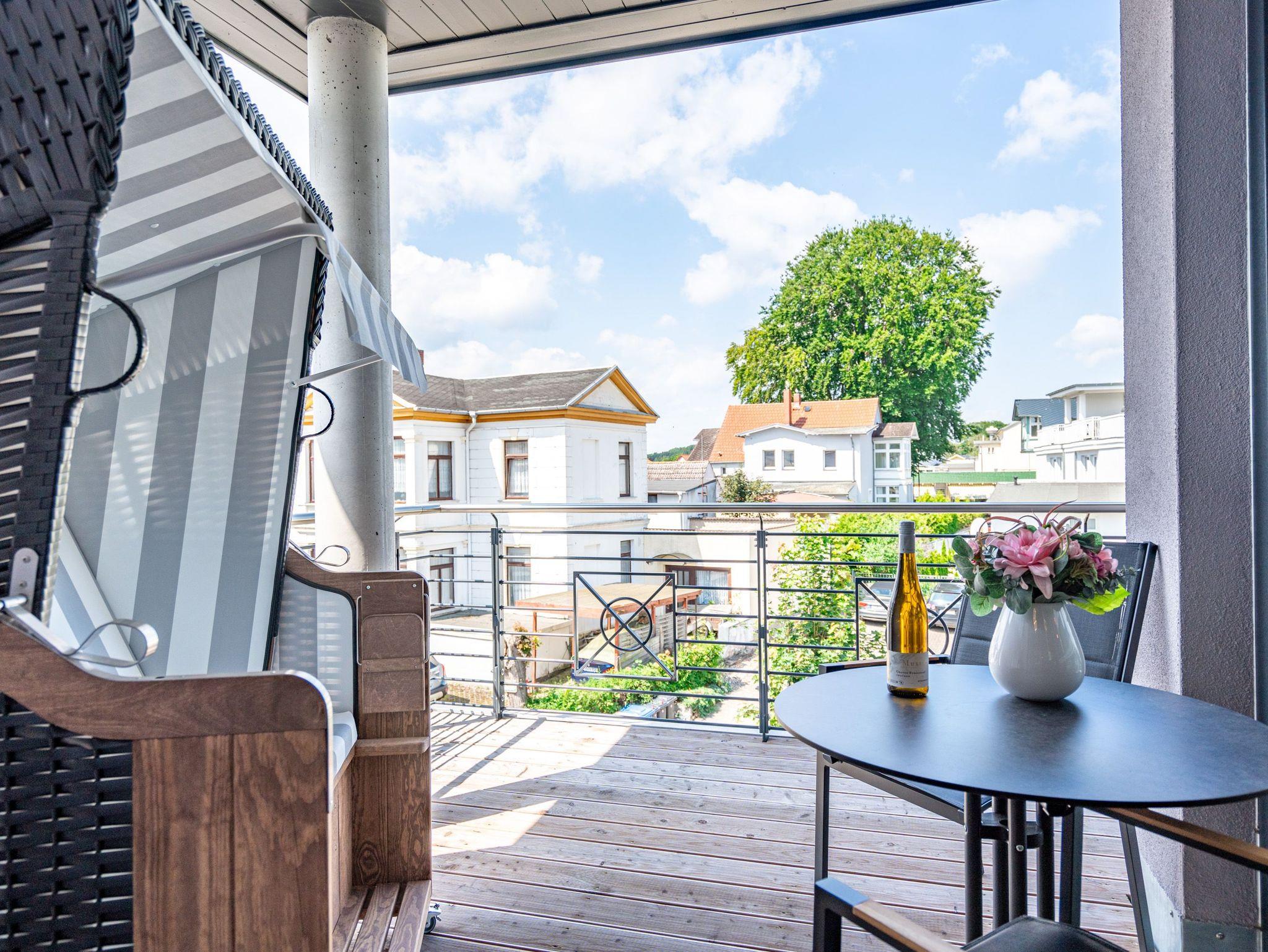Charmantes Dachgeschoss-Appartement in Ahlbeck mit Sauna, Kamin und Ostseeblick auf großer Terrasse.