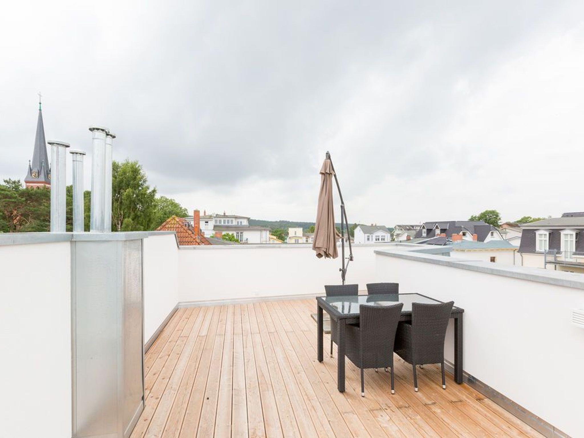 Genießen Sie Ihren Ostseeurlaub in diesem modernen 3-Zimmer-Appartement mit Sauna und Dachterrasse im Herzen von Ahlbeck.