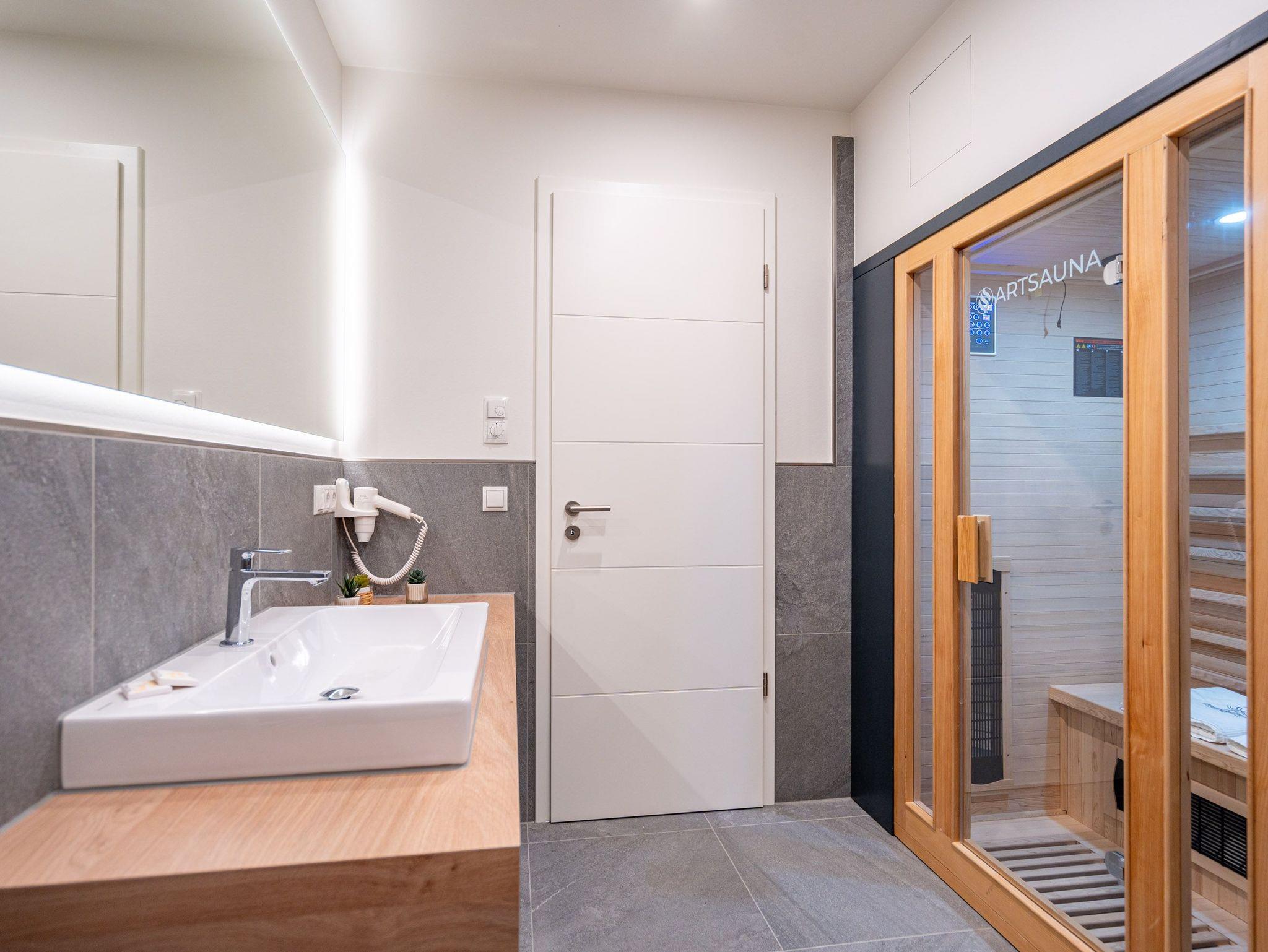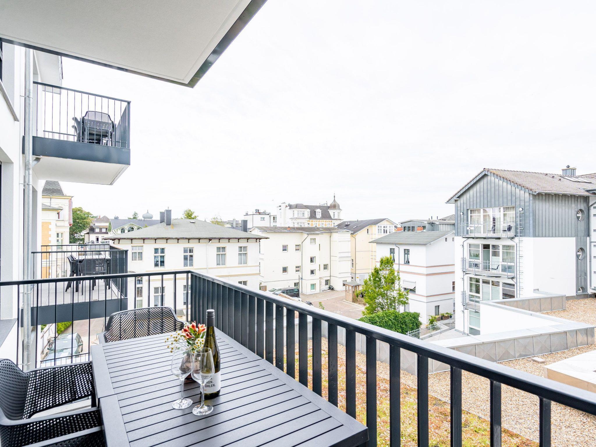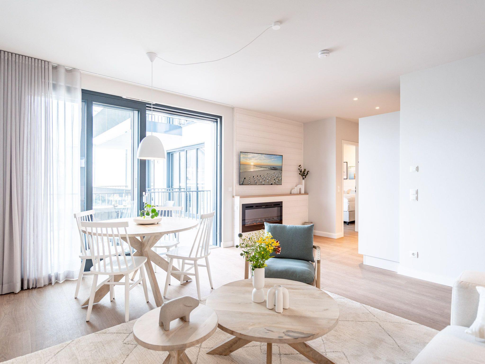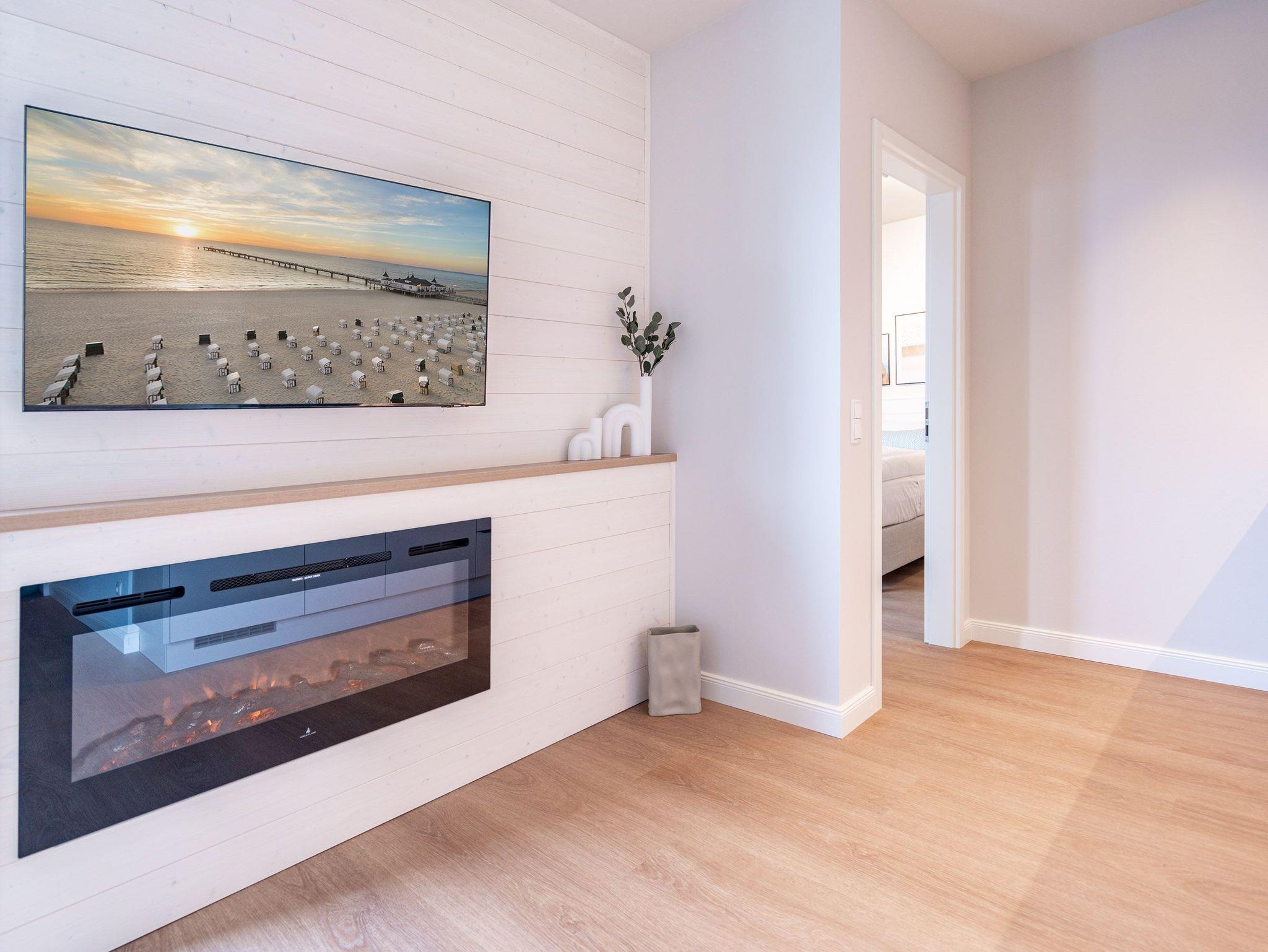 Moderne Ferienwohnung in Ahlbeck mit Balkon, Infrarotsauna, Elektrokamin und unmittelbarer Strandnähe für erholsame Ostseeferien.
