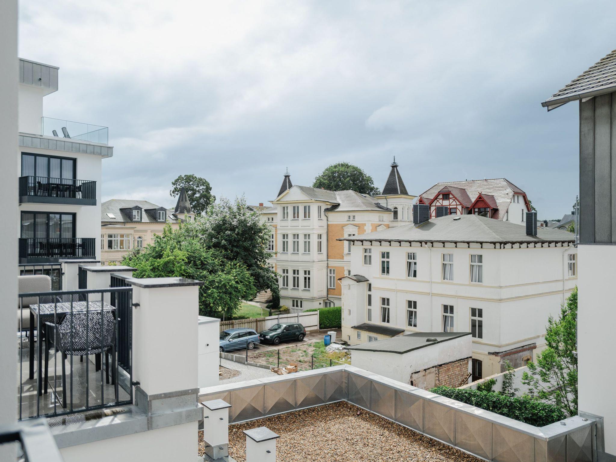 Die 2024 fertig gestellte Strandterrasse liegt direkt an der belebten Strandpromenade und bietet einen einzigartigen Ausblick auf die Grand Dame der historischen Seebrücken sowie die historische Konzertmuschel, einem beliebten Treffpunkt für Kunst und Kultur. Dahinter liegt die Ostsee ? ein Panorama, das zu den schönsten in den Kaiserbädern gehört. Es ist wie das Abtauchen in eine andere Zeit. In eine Zeit, in der man mit Stock, Sonnenschirm und Hut fürs „Sehen und gesehen werden“ über die Promenade schlenderte; aber auch in eine Zeit, in der ? damals wie heute ? Zeit einmal für eine kurze Weile keine Rolle spielt. Weil man angekommen ist im Loslassen, Entspannen und Genießen. Es ist dieser besondere Geruch nach Meeresluft und Freiheit, der in Erinnerung bleibt. Dazu die Bilder, die man mitnimmt. Von langen Strandspaziergängen, vom Lachen in fröhlich schäumenden Ostseewellen, von der Zeit in einem wunderschönen Urlaubsdomizil. Denn genau das ist die Strandterrasse mit ihren 56 modernen und exklusiven Ferienappartements direkt gegenüber der Ahlbecker Seebrücke. Die Ein-, Zwei- oder Dreizimmerwohnungen ? zwischen 40 und 70 Quadratmeter groß ? sind von einer Innenarchitektin gemeinsam mit unserem Erfahrungsschatz an Gästewünschen mit viel Liebe zum Detail und ganz individuell konzipiert worden. Entspannung und Wohlfühlen stehen an erster Stelle. Alles ist aufeinander abgestimmt und sorgt für eine gemütliche Atmosphäre. Wählen Sie zwischen einem Domizil in einem hellen, sandfarbenen Designkonzept oder einem Appartement mit anthrazitfarbenen Farbakzenten. Alle Appartements verfügen gleichermaßen über eine stilvolle und komfortable Einrichtung, die passgenau angefertigt worden ist, sowie über moderne Küchen und Bäder. Jedem Schlafzimmer ist ein eigenes Bad mit Dusche zugeordnet (außer App. B4.5). Die Appartements besitzen fast alle einen Balkon ? viele schauen sogar zur Ostsee hinaus. Die meisten Feriendomizile haben einen Elektrokamin und Infrarotsaunen. Im Erdgeschoss befindet sich ein separater Gemeinschaftsraum für Fahrräder. Außerdem besteht die Möglichkeit, im Gemeinschaftswaschraum 2 Waschmaschinen [&] Trockner zu nutzen. Ergänzt wird das Angebot durch eine Gemeinschaftssauna, die täglich von 11:00 bis 22:00 Uhr nutzbar ist. In der Tiefgarage (Einfahrtshöhe 2,03 Meter) steht für jede Wohnung 1 Pkw-Stellplatz zur Verfügung. Ist alles zur Zufriedenheit untergebracht? Dann kann der Urlaub ja beginnen. Und beim Blick vom Balkon über die Ostsee treffen sich zum Sonnenaufgang das Heute und das Damals. Gelassenheit legt sich beim Gang hinunter an den Strand auf die Seele. Jetzt darf die Zeit stehenbleiben.