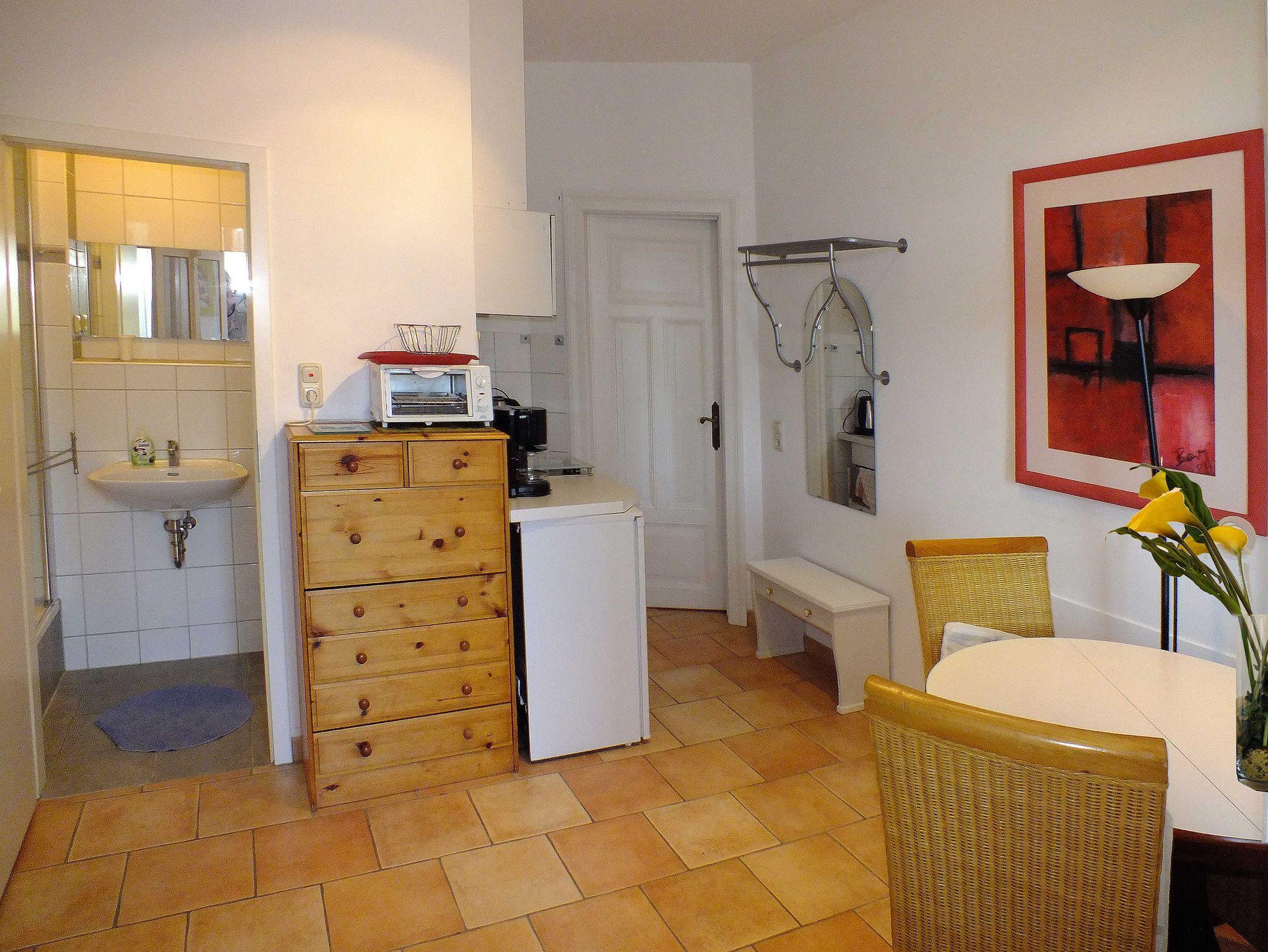 Die Appartements sind alle unterschiedlich in Zuschnitt und Einrichtung. - NICHTRAUCHERHAUS - Rauchen ist ausschließlich außerhalb des Hauses möglich. Auf der Hofseite befinden sich eine Gemeinschaftsterrasse mit Tischen und Liegestühlen sowie eine kleine Grünfläche mit einer Schaukel und Sandkasten für die kleinen Gäste. Eine Grillmöglichkeit steht Ihnen außerdem zur Verfügung, für die Nutzung bitten wir Sie sich mit anderen Mietern abzusprechen.