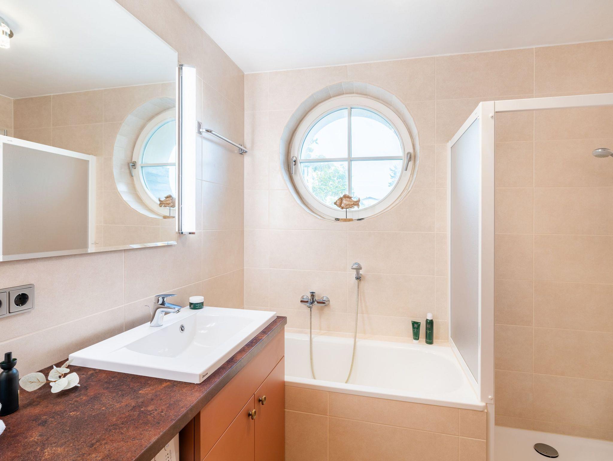 Damit Sie Ihre wohlverdiente Urlaubszeit bereits am Anreisetag in vollen Zügen genießen können, haben wir das Bett für Sie und das für Ihre lieben Mitreisenden bereits bezogen und ein Duschtuch sowie ein kleines Handtuch bereitgelegt. Das Badezimmer ist mit Dusche, Wanne, WC sowie einem Haartrockner ausgestattet.