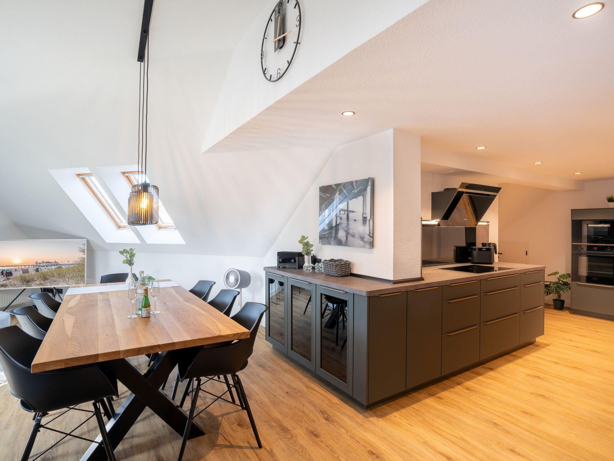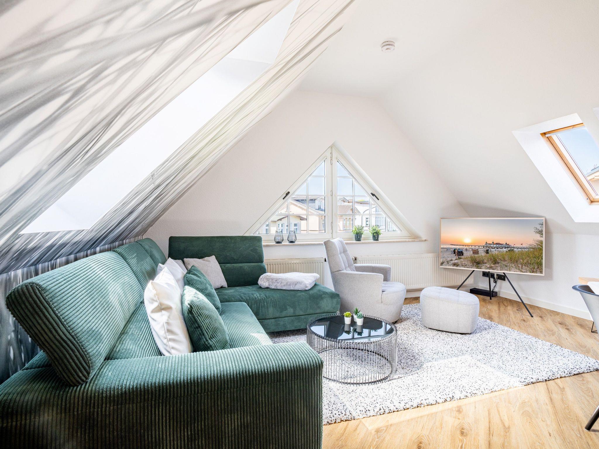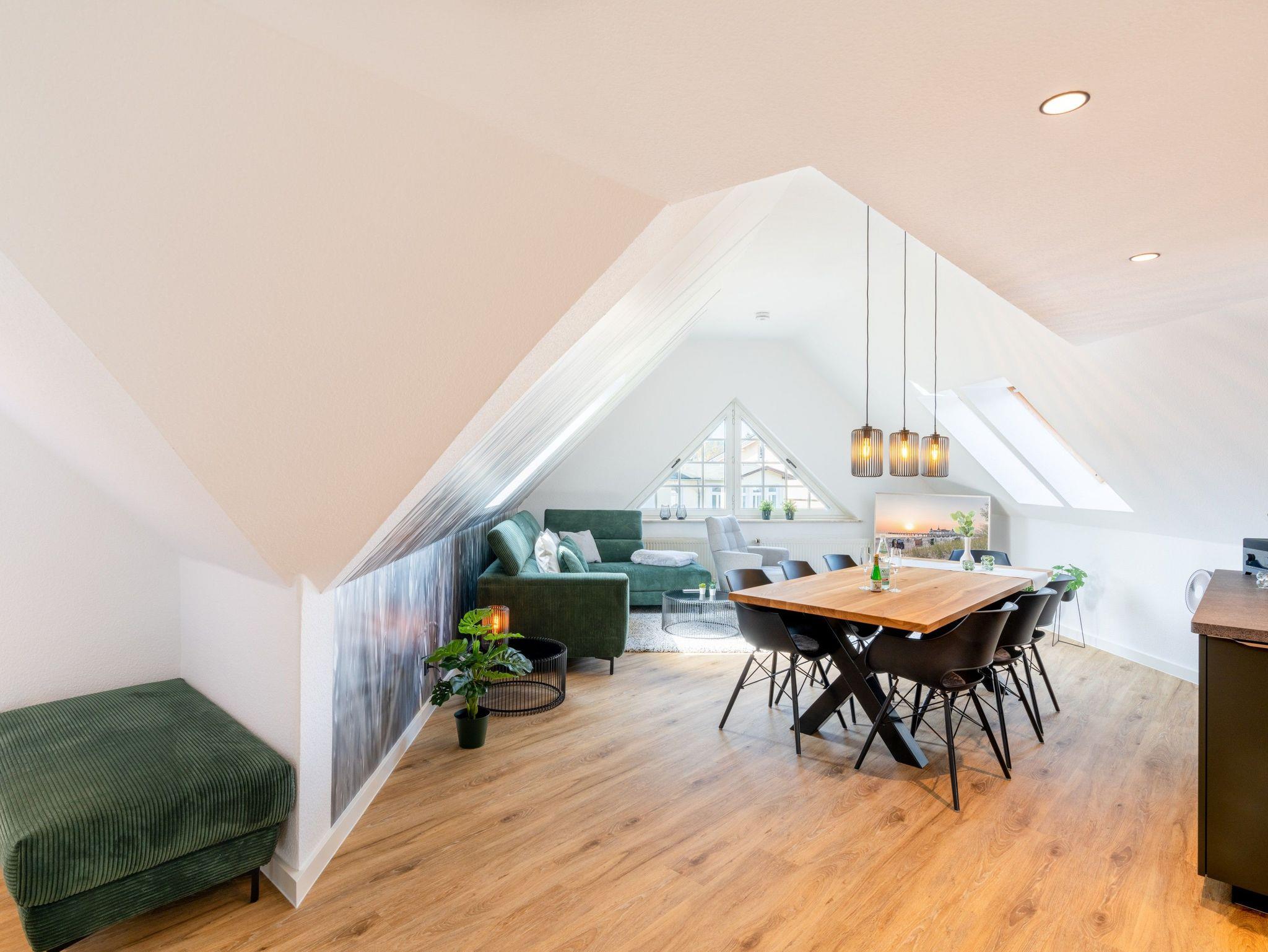 Komfortable Dachgeschosswohnung nahe Strand und Seebrücke in Ahlbeck, ideal für bis zu sechs Personen.
