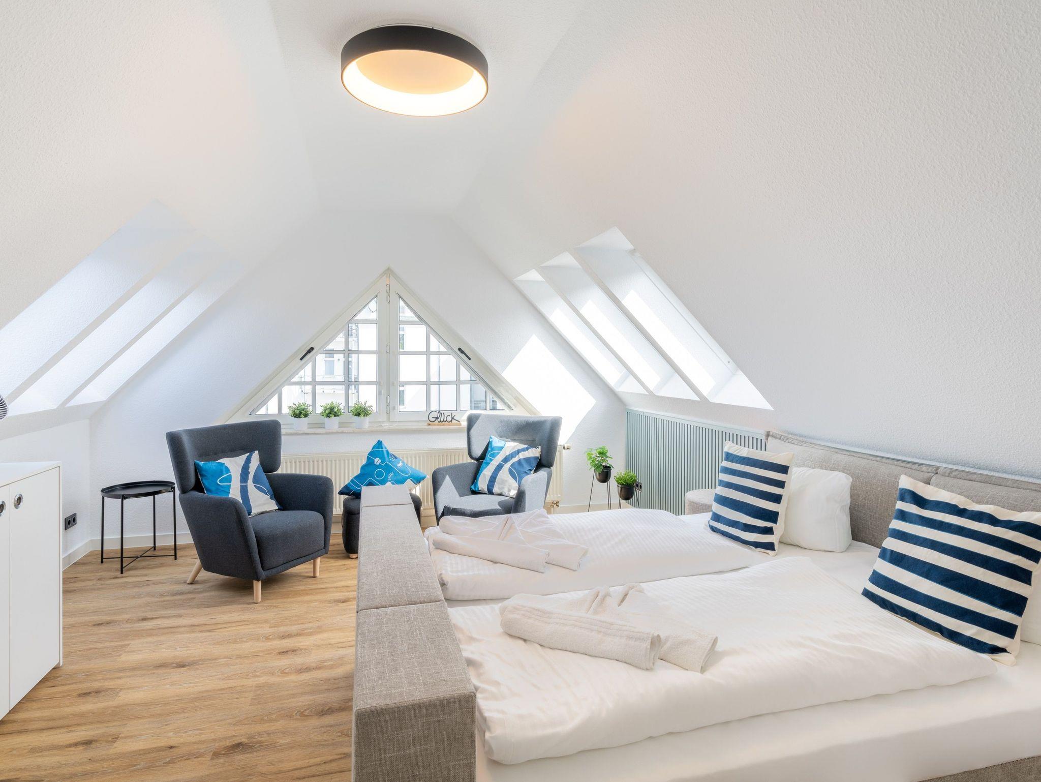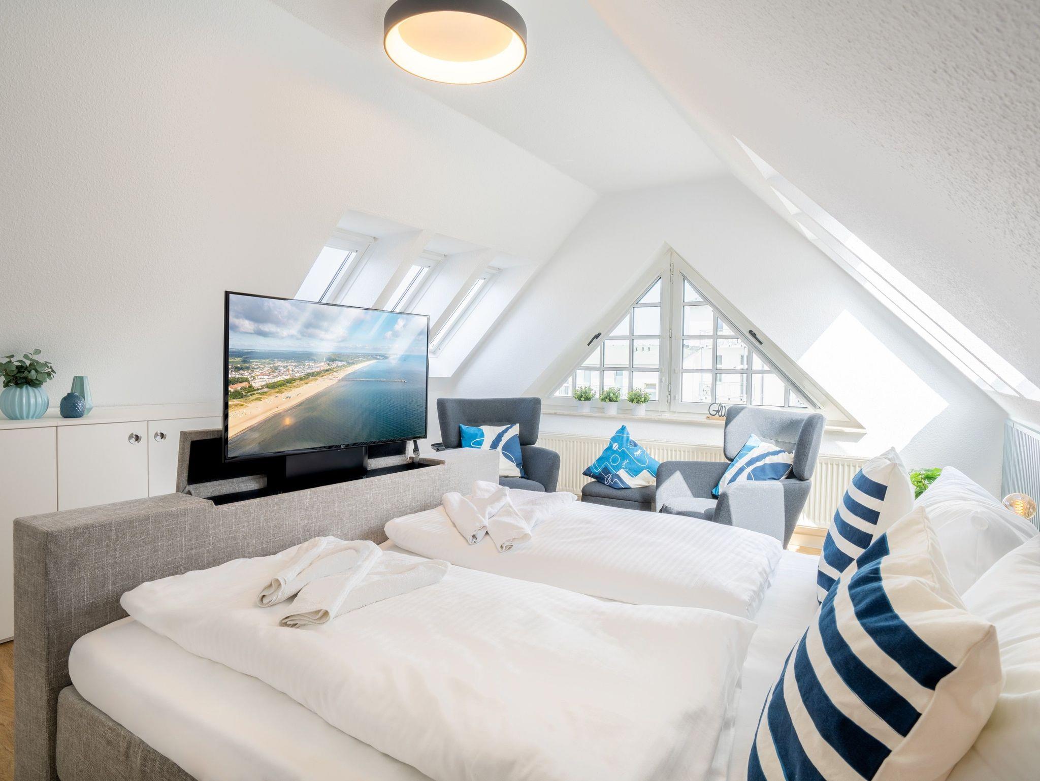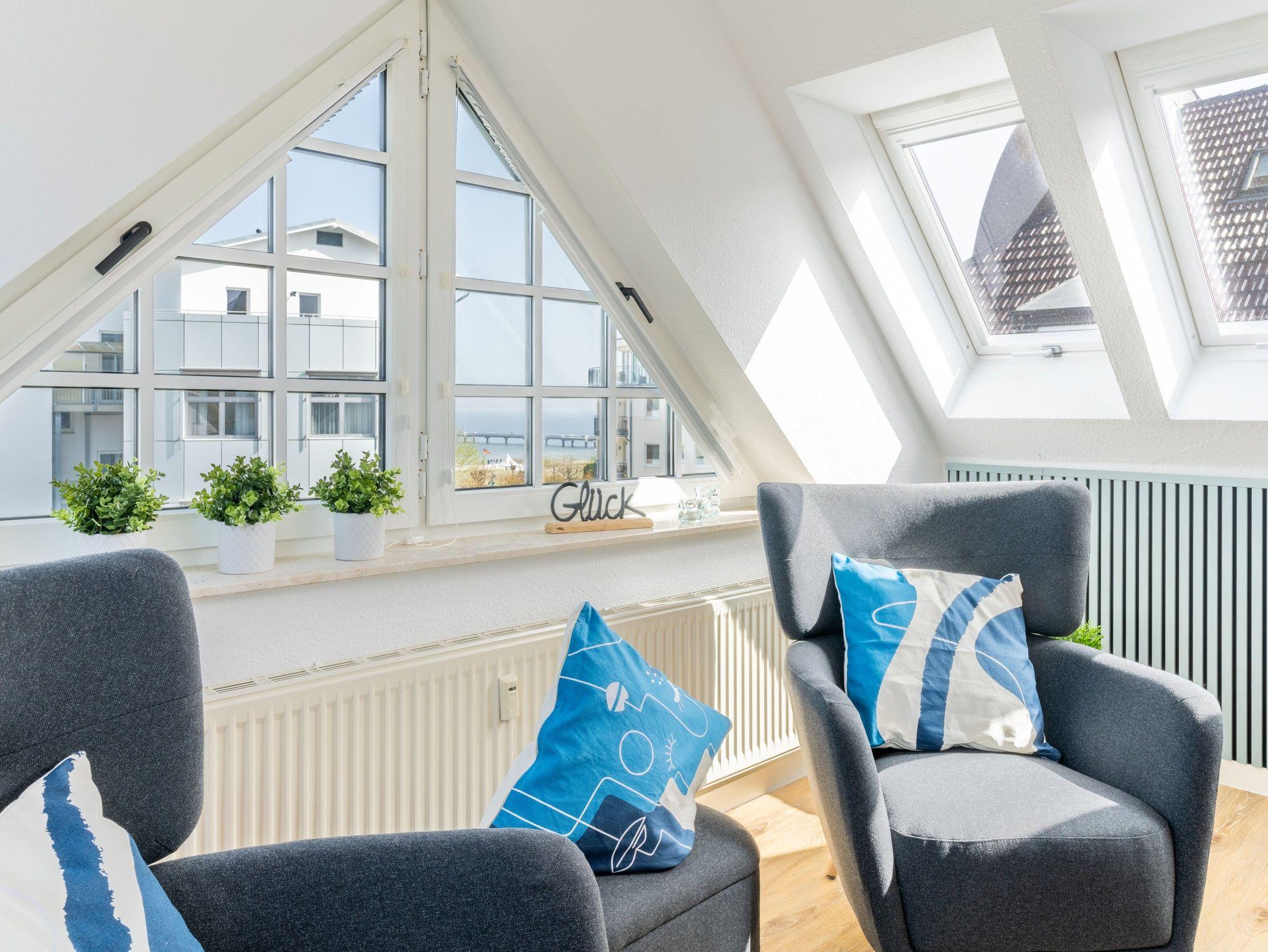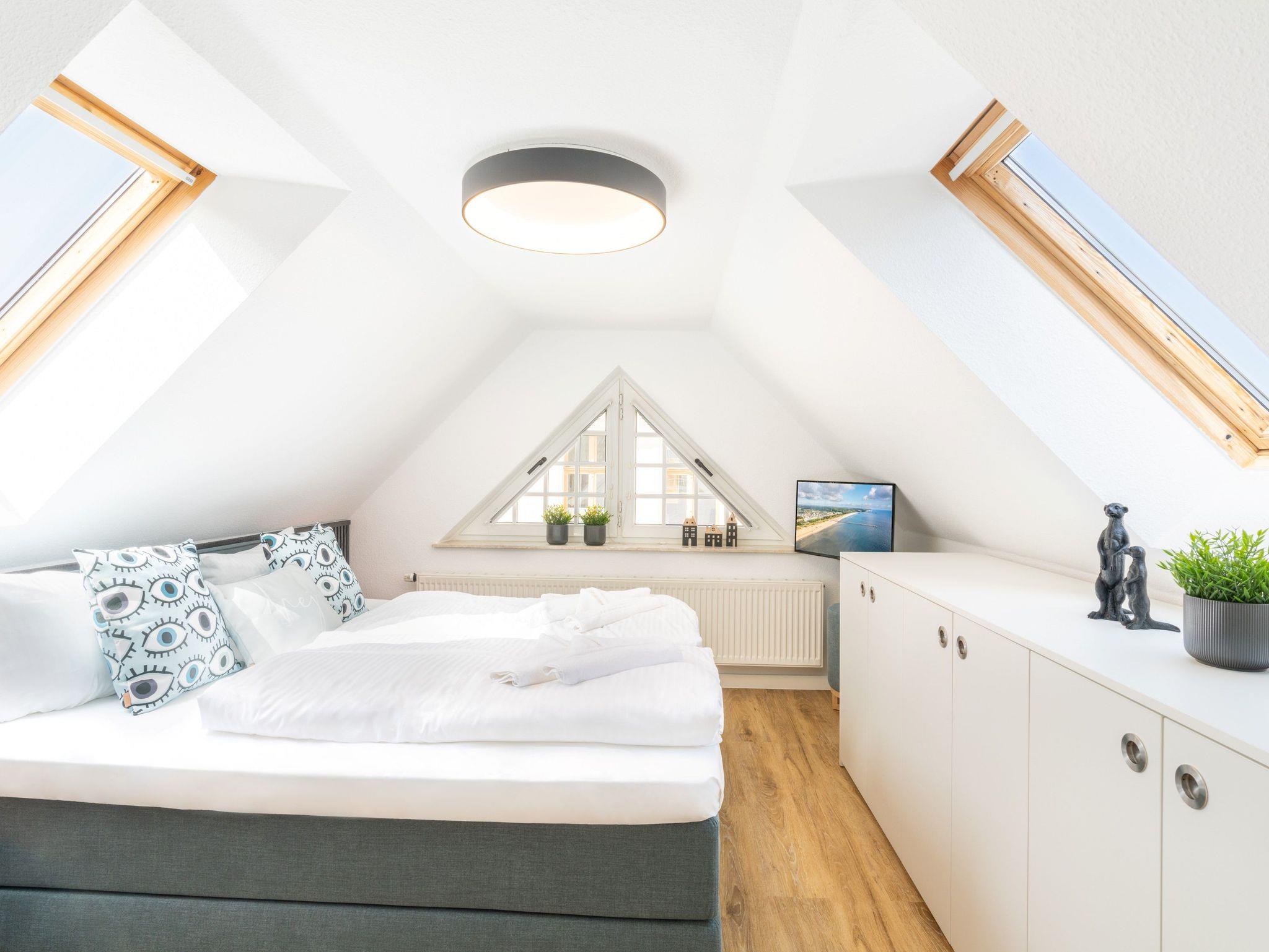 Komfortable Dachgeschosswohnung nahe Strand und Seebrücke in Ahlbeck, ideal für bis zu sechs Personen.