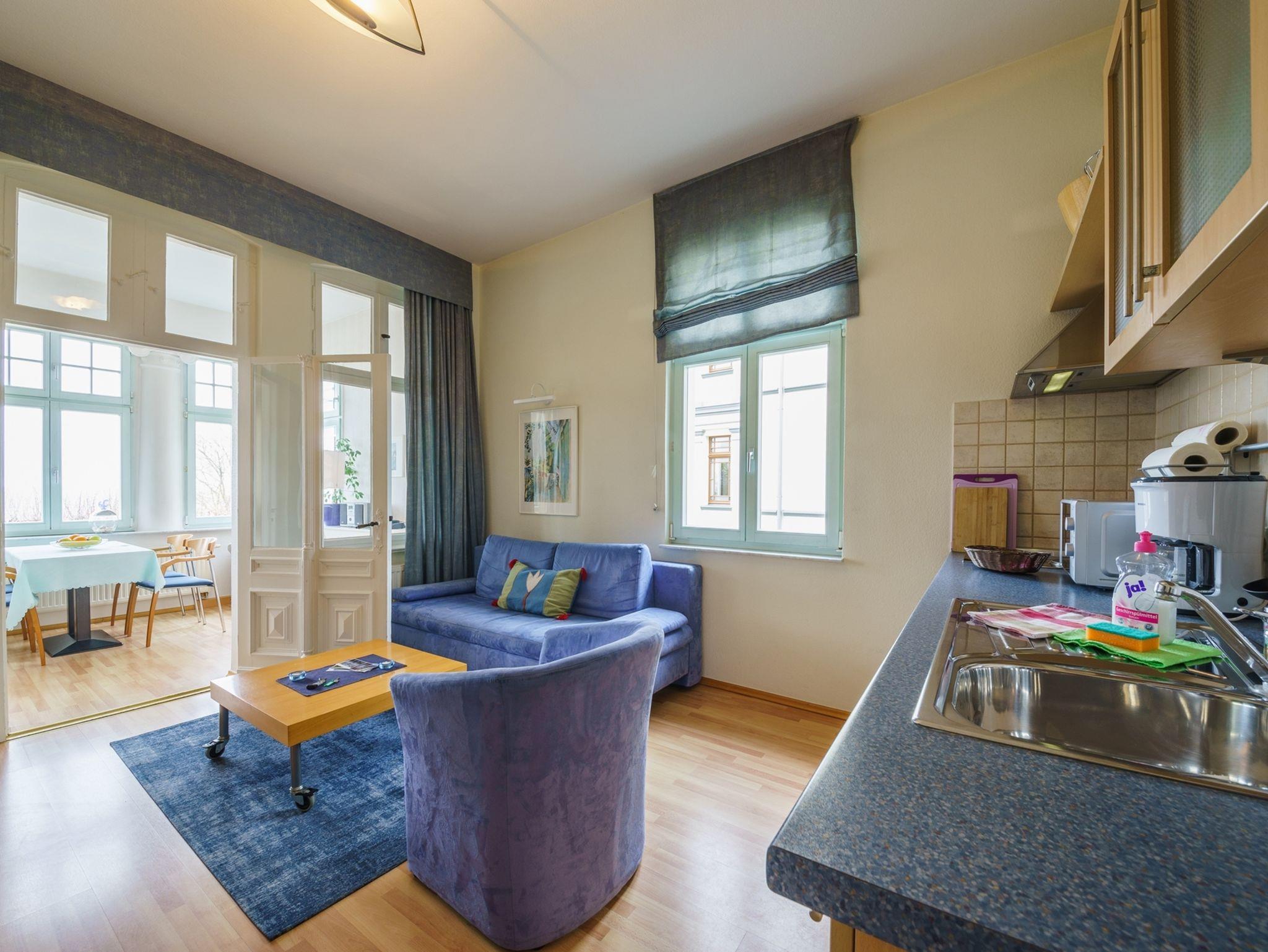 Die komfortable 2-Raum-Ferienwohnung mit 55 qm befindet sich in der ersten Etage der Villa Henriette und verfügt über eine Veranda mit herrlichem Meerblickund Essplatz. Die Wohnung ist weiterhin mit einem Schlafraum mit Doppelbett, einem kombinierten Wohn- und Schlafraum mit Doppelbettschlafcouch und einer komplette Küchenzeile mit Geschirrspüler, Herd, Backofen, Kaffeemaschine, Geschirr etc. ausgestattet. Bad mit Dusche und WC sowie Haarfön. Zur weiteren Ausstattung gehören TV, Radio + CD-Player, Telefon und Schranktresor.