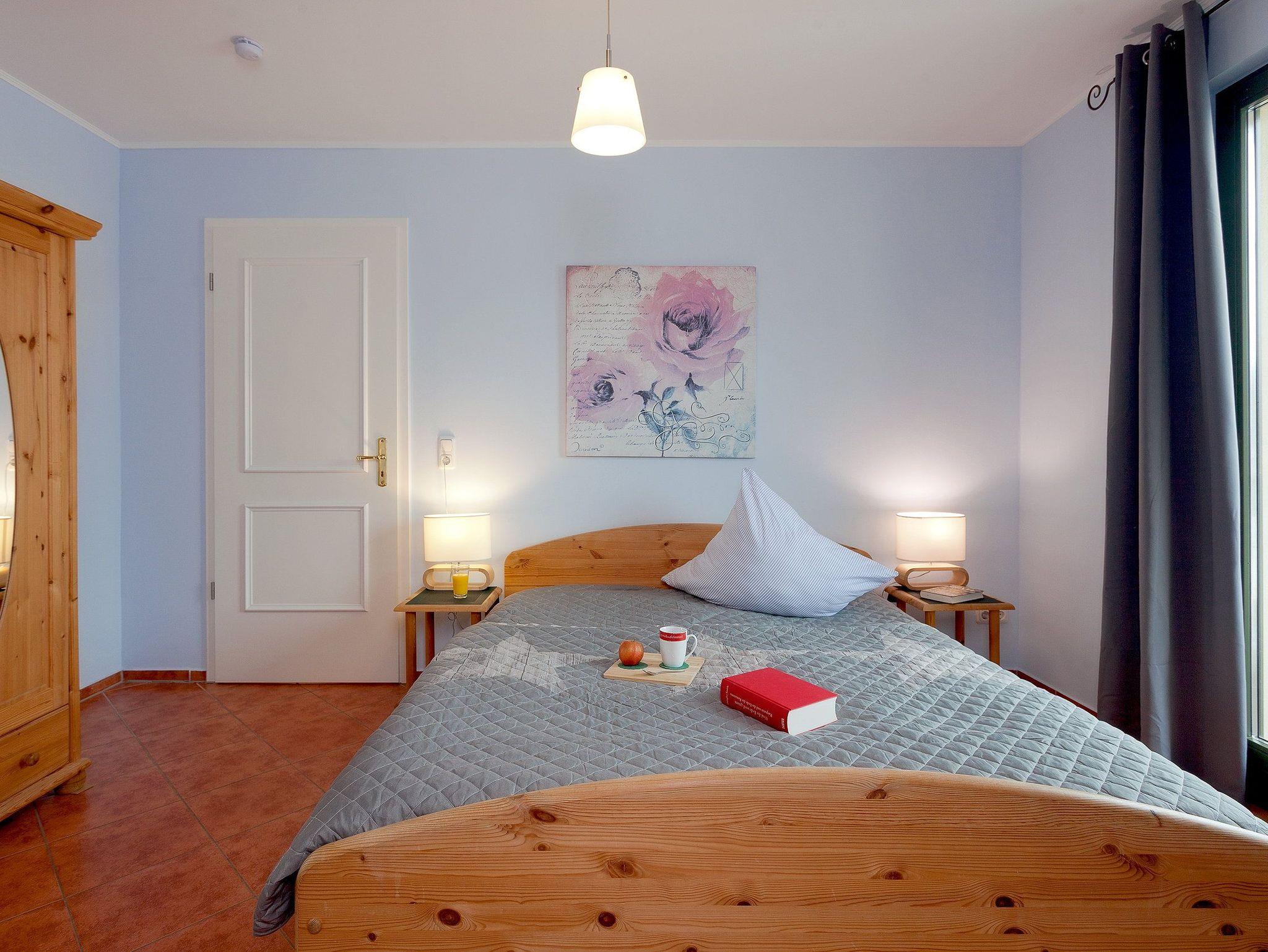 Das freundliche Schlafzimmer lockt für die Nachtruhe, aber auch für ein Schlummerstündchen am Nachmittag mit einem bequemen Doppelbett (160 x 200cm / zwei getrennte Matratzen).