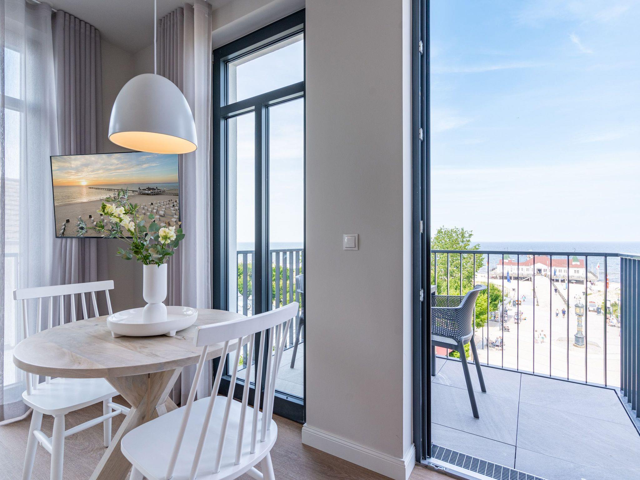 Modernes Appartement mit Meerblick und zwei Balkonen direkt an der Ahlbecker Seebrücke.