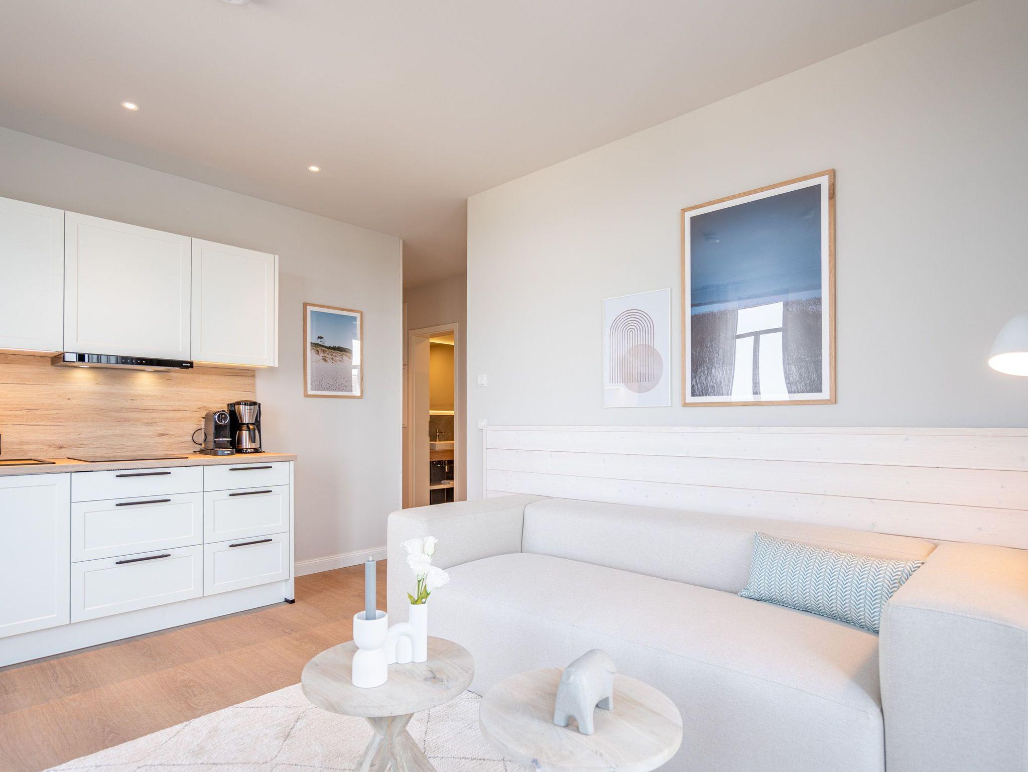 Ob beim Essen, beim Entspannen auf der Couch oder gleich nach dem Aufstehen aus dem lichtdurchfluteten Appartement A 3.3 im Haus A der Strandterrasse haben Sie die Ostsee immer im Blick. Hier können Sie von gleich zwei Balkonen und aus den bodentiefen Fenstern die blaue Weite jederzeit genießen. Das 45 Quadratmeter große Urlaubsparadies für zwei Personen befindet sich im 3. Obergeschoss direkt gegenüber der Ahlbecker Seebrücke. Der Wohnbereich zur Seeseite lädt zum Verweilen ein und bietet einen atemberaubenden Ausblick. Das Designkonzept der Einrichtung ist darauf abgestimmt, dass Sie sich rundum wohlfühlen. Helle Möbel und warme Farben versetzen Sie in eine entspannte Stimmung. Ein schöner Essplatz bietet nicht nur Platz für gemeinsame Mahlzeiten, sondern lässt den Blick auch immer wieder über die Ostsee und die Promenade schweifen. Ein bequemes Sofa verführt zum Kuscheln und zum Kinoerlebnis auf dem 43-Zoll-Flachbildfernseher. In das geräumige Wohnzimmer ist eine offene Küchenzeile integriert, die mit hochwertigen Elektrogeräten wie einem Backofen, einem 3-Platten-Induktionskochfeld und einer Nespresso-Kapselmaschine ausgestattet ist. Vom Wohnzimmer aus haben Sie Zugang zum Nord-Balkon mit einem Tisch und zwei Stühlen. Hier sind Sie dem Rauschen der Wellen noch ein Stück näher. Das Schlafzimmer verfügt über ein luxuriöses Boxspringdoppelbett (1,80m x 2,00m), einen extra angefertigten Kleiderschrank mit viel Stauraum und einen weiteren 43-Zoll-Flachbildfernseher für Ihre Unterhaltung. Von hier aus können Sie auf den zweiten Balkon in Nord-West-Richtung hinaustreten. Inhalieren Sie die gesunde Meeresbrise tief ein und genießen Sie entspannte Mußestunden auf der Sonnenliege. Im innenliegenden Bad ist mit Dusche, Waschtisch und Toilette alles vorhanden, was Sie zum Frischmachen brauchen. Ein reservierter PKW-Stellplatz in der Tiefgarage sorgt dafür, dass Ihr Fahrzeug sicher untergebracht ist. Dann kann es ja losgehen mit den wundervollen und erlebnisreichen Tagen am Meer.