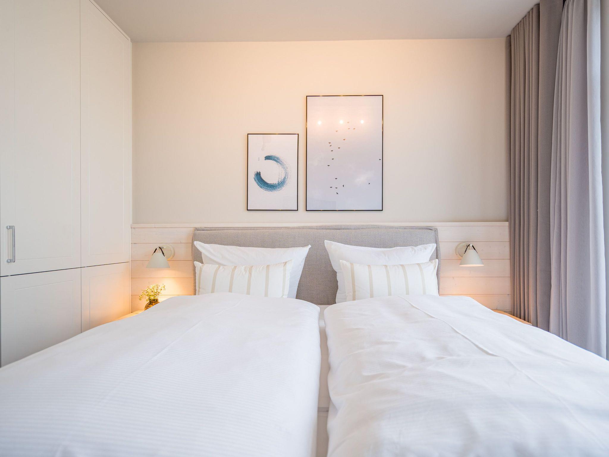 Die 2024 fertig gestellte Strandterrasse liegt direkt an der belebten Strandpromenade und bietet einen einzigartigen Ausblick auf die Grand Dame der historischen Seebrücken sowie die historische Konzertmuschel, einem beliebten Treffpunkt für Kunst und Kultur. Dahinter liegt die Ostsee ? ein Panorama, das zu den schönsten in den Kaiserbädern gehört. Es ist wie das Abtauchen in eine andere Zeit. In eine Zeit, in der man mit Stock, Sonnenschirm und Hut fürs „Sehen und gesehen werden“ über die Promenade schlenderte; aber auch in eine Zeit, in der ? damals wie heute ? Zeit einmal für eine kurze Weile keine Rolle spielt. Weil man angekommen ist im Loslassen, Entspannen und Genießen. Es ist dieser besondere Geruch nach Meeresluft und Freiheit, der in Erinnerung bleibt. Dazu die Bilder, die man mitnimmt. Von langen Strandspaziergängen, vom Lachen in fröhlich schäumenden Ostseewellen, von der Zeit in einem wunderschönen Urlaubsdomizil. Denn genau das ist die Strandterrasse mit ihren 56 modernen und exklusiven Ferienappartements direkt gegenüber der Ahlbecker Seebrücke. Die Ein-, Zwei- oder Dreizimmerwohnungen ? zwischen 40 und 70 Quadratmeter groß ? sind von einer Innenarchitektin gemeinsam mit unserem Erfahrungsschatz an Gästewünschen mit viel Liebe zum Detail und ganz individuell konzipiert worden. Entspannung und Wohlfühlen stehen an erster Stelle. Alles ist aufeinander abgestimmt und sorgt für eine gemütliche Atmosphäre. Wählen Sie zwischen einem Domizil in einem hellen, sandfarbenen Designkonzept oder einem Appartement mit anthrazitfarbenen Farbakzenten. Alle Appartements verfügen gleichermaßen über eine stilvolle und komfortable Einrichtung, die passgenau angefertigt worden ist, sowie über moderne Küchen und Bäder. Jedem Schlafzimmer ist ein eigenes Bad mit Dusche zugeordnet (außer App. B4.5). Die Appartements besitzen fast alle einen Balkon ? viele schauen sogar zur Ostsee hinaus. Die meisten Feriendomizile haben einen Elektrokamin und Infrarotsaunen. Im Erdgeschoss befindet sich ein separater Gemeinschaftsraum für Fahrräder. Außerdem besteht die Möglichkeit, im Gemeinschaftswaschraum 2 Waschmaschinen [&] Trockner zu nutzen. Ergänzt wird das Angebot durch eine Gemeinschaftssauna, die täglich von 11:00 bis 22:00 Uhr nutzbar ist. In der Tiefgarage (Einfahrtshöhe 2,03 Meter) steht für jede Wohnung 1 Pkw-Stellplatz zur Verfügung. Ist alles zur Zufriedenheit untergebracht? Dann kann der Urlaub ja beginnen. Und beim Blick vom Balkon über die Ostsee treffen sich zum Sonnenaufgang das Heute und das Damals. Gelassenheit legt sich beim Gang hinunter an den Strand auf die Seele. Jetzt darf die Zeit stehenbleiben.