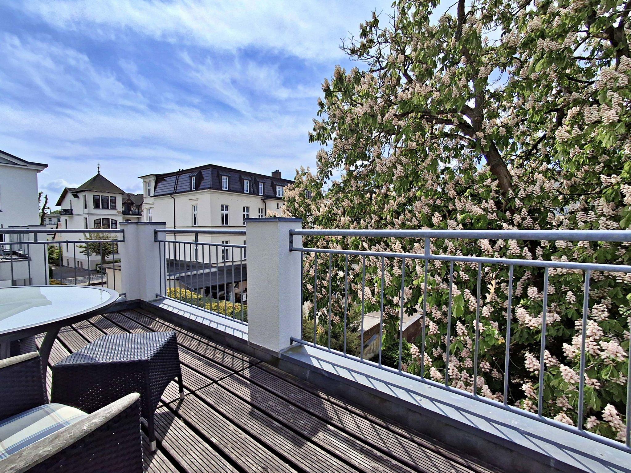 Moderne Ferienwohnung mit Balkon nur 50 m vom Strand in stilvoll restaurierter Villa Ahlbeck.