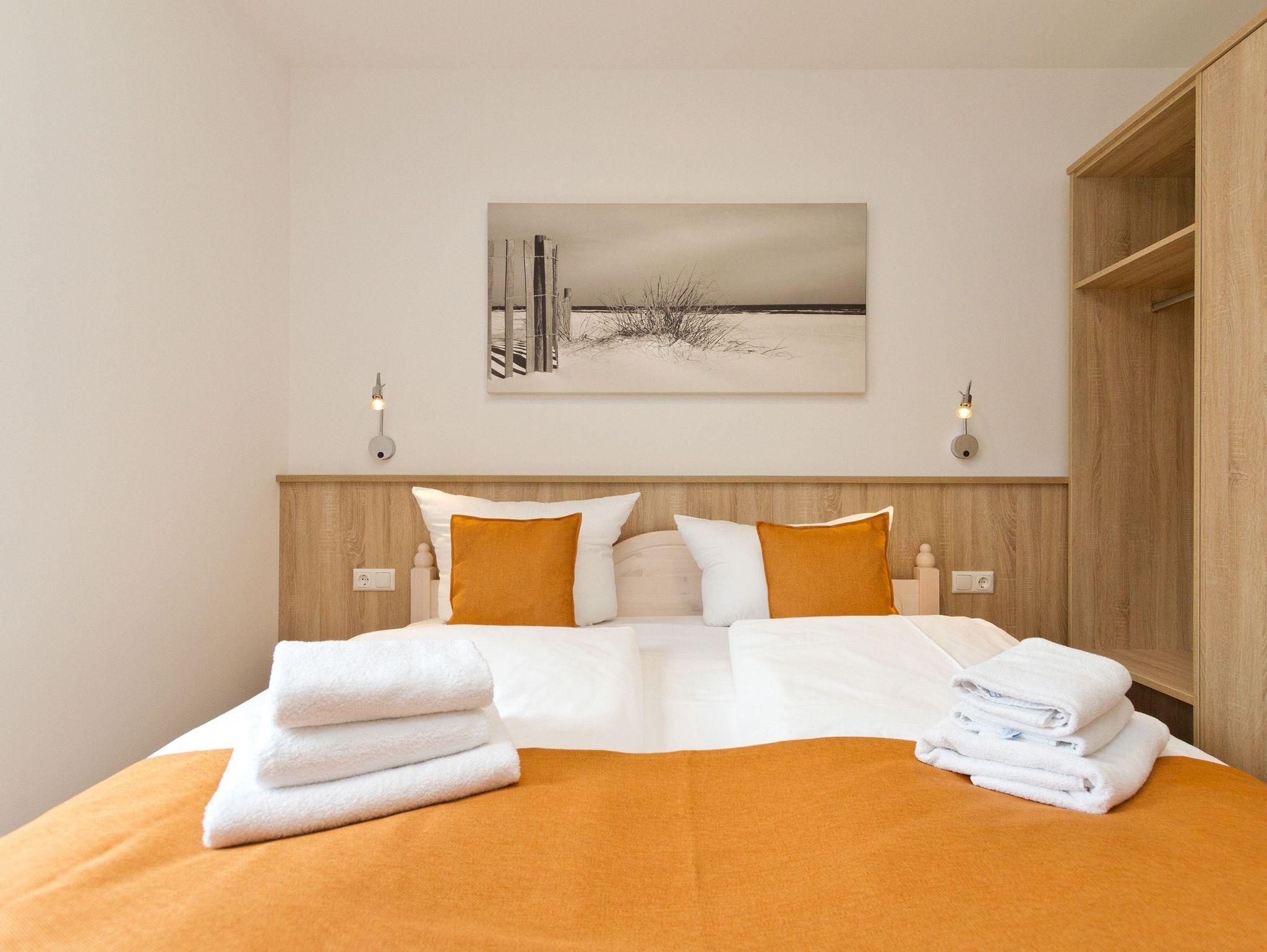 Schon morgens wird der Frühstückstisch auf der Süd-Ost-Terrasse von der Sonne verwöhnt. So wird schon der Genuss des ersten Kaffees oder Tees zum Urlaub. Von hier aus geht?s in die offene Küche eines rundum kuscheligen und modernen Feriendomizils. Auf 64 Quadratmetern ist aller erdenkliche Urlaubskomfort geboten. Gönnen Sie sich Ihre Auszeit in diesem kleinen Paradies mit bis zu vier Personen. Eine bequeme Sofalandschaft lädt zum Entspannen ein. Der Kamin ? von drei Seiten aus einsehbar ? ist ein absoluter Hingucker. Die Küche ist mit allen Geräten und hochwertigem Geschirr ausgestattet. Elektronik? Auch hier ist das Appartement Nummer 02 im Erdgeschoss des Quartier Ahlbeck auf dem neuesten Stand. Egal ob Flat-TV, Kaffeemaschine oder Waschmaschine ? diese Wohnung hat all das und noch vieles Schöne mehr. Die beiden Schlafzimmer sind hell und freundlich eingerichtet und die Doppelbetten (1,80 m x 2,00 m) verheißen nicht nur beim Schlafen Freude. Die großen Schränke bieten viel Platz zur Ablage. Das Badezimmer verfügt über eine Dusche, einen Waschtisch, WC, die erwähnte Waschmaschine und eine Finnische Sauna. Genießen Sie das Schwitzen und Abschalten, Entspannen und Energietanken an ungemütlichen Tagen oder Abenden. Für Ihren Komfort sind die Betten bei Ihrer Anreise bezogen und Handtücher liegen für Sie bereit. Ein Pkw-Stellplatz steht am Haus zur Verfügung.