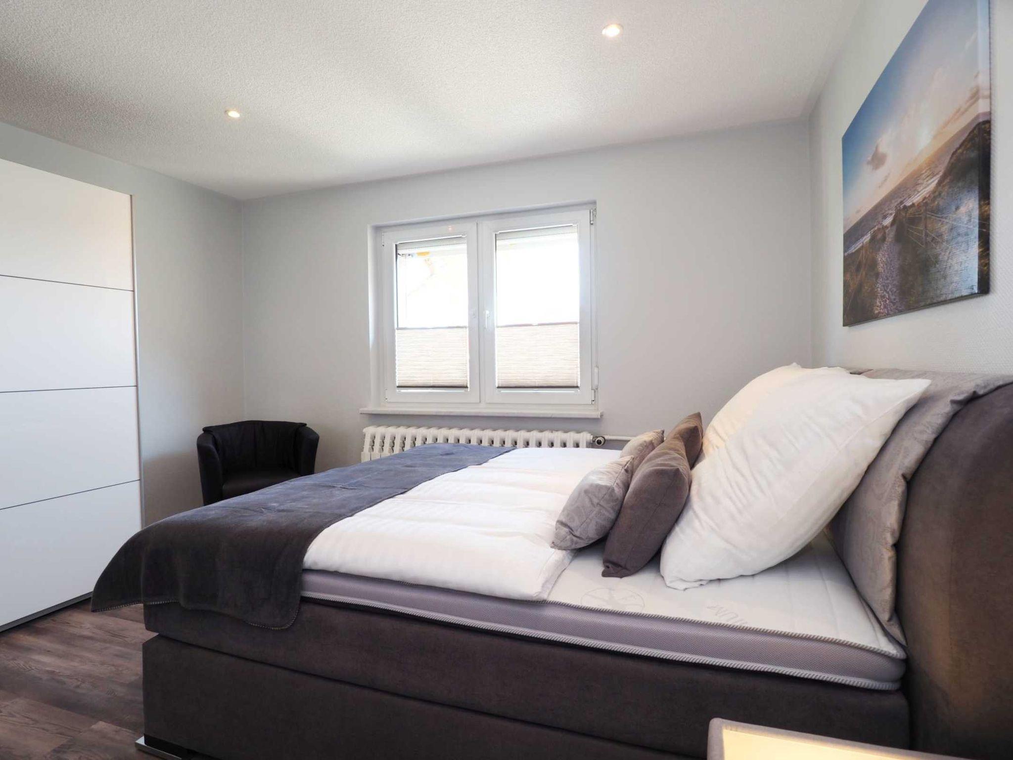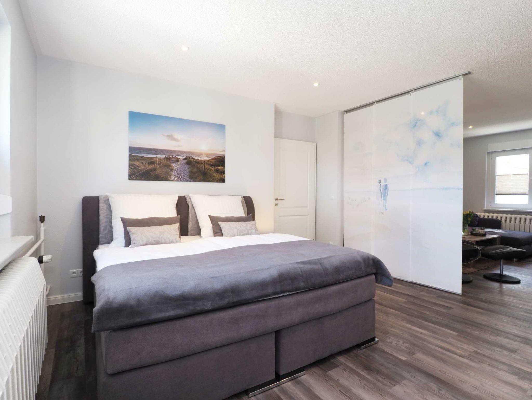 Im angrenzenden Schlafzimmer mit einem Doppelbett (180 x 200cm/getrennte Matratzen) können im Kleiderschrank Ihre persönlichen Dinge unterbringen. Auf der Schlafcouch im Wohnzimmer haben Sie besten Sitz- und Schlafkomfort für die 3. Person.
