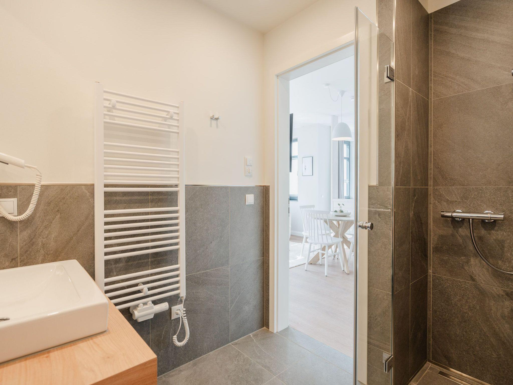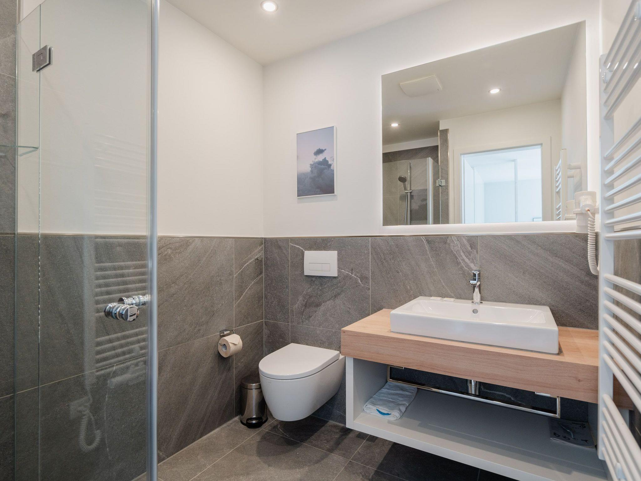 Die 2024 fertig gestellte Strandterrasse liegt direkt an der belebten Strandpromenade und bietet einen einzigartigen Ausblick auf die Grand Dame der historischen Seebrücken sowie die historische Konzertmuschel, einem beliebten Treffpunkt für Kunst und Kultur. Dahinter liegt die Ostsee ein Panorama, das zu den schönsten in den Kaiserbädern gehört. Es ist wie das Abtauchen in eine andere Zeit. In eine Zeit, in der man mit Stock, Sonnenschirm und Hut fürs Sehen und gesehen werden über die Promenade schlenderte; aber auch in eine Zeit, in der damals wie heute Zeit einmal für eine kurze Weile keine Rolle spielt. Weil man angekommen ist im Loslassen, Entspannen und Genießen. Es ist dieser besondere Geruch nach Meeresluft und Freiheit, der in Erinnerung bleibt. Dazu die Bilder, die man mitnimmt. Von langen Strandspaziergängen, vom Lachen in fröhlich schäumenden Ostseewellen, von der Zeit in einem wunderschönen Urlaubsdomizil. Denn genau das ist die Strandterrasse mit ihren 56 modernen und exklusiven Ferienappartements direkt gegenüber der Ahlbecker Seebrücke. Die Ein-, Zwei- oder Dreizimmerwohnungen zwischen 40 und 70 Quadratmeter groß sind von einer Innenarchitektin gemeinsam mit unserem Erfahrungsschatz an Gästewünschen mit viel Liebe zum Detail und ganz individuell konzipiert worden. Entspannung und Wohlfühlen stehen an erster Stelle. Alles ist aufeinander abgestimmt und sorgt für eine gemütliche Atmosphäre. Wählen Sie zwischen einem Domizil in einem hellen, sandfarbenen Designkonzept oder einem Appartement mit anthrazitfarbenen Farbakzenten. Alle Appartements verfügen gleichermaßen über eine stilvolle und komfortable Einrichtung, die passgenau angefertigt worden ist, sowie über moderne Küchen und Bäder. Jedem Schlafzimmer ist ein eigenes Bad mit Dusche zugeordnet (außer App. B4.5). Die Appartements besitzen fast alle einen Balkon viele schauen sogar zur Ostsee hinaus. Die meisten Feriendomizile haben einen Elektrokamin und Infrarotsaunen. Im Erdgeschoss befindet sich ein separater Gemeinschaftsraum für Fahrräder. Außerdem besteht die Möglichkeit, im Gemeinschaftswaschraum 2 Waschmaschinen [&] Trockner zu nutzen. Ergänzt wird das Angebot durch eine Gemeinschaftssauna, die täglich von 11:00 bis 22:00 Uhr nutzbar ist. In der Tiefgarage (Einfahrtshöhe 2,03 Meter) steht für jede Wohnung 1 Pkw-Stellplatz zur Verfügung. Ist alles zur Zufriedenheit untergebracht? Dann kann der Urlaub ja beginnen. Und beim Blick vom Balkon über die Ostsee treffen sich zum Sonnenaufgang das Heute und das Damals. Gelassenheit legt sich beim Gang hinunter an den Strand auf die Seele. Jetzt darf die Zeit stehenbleiben.