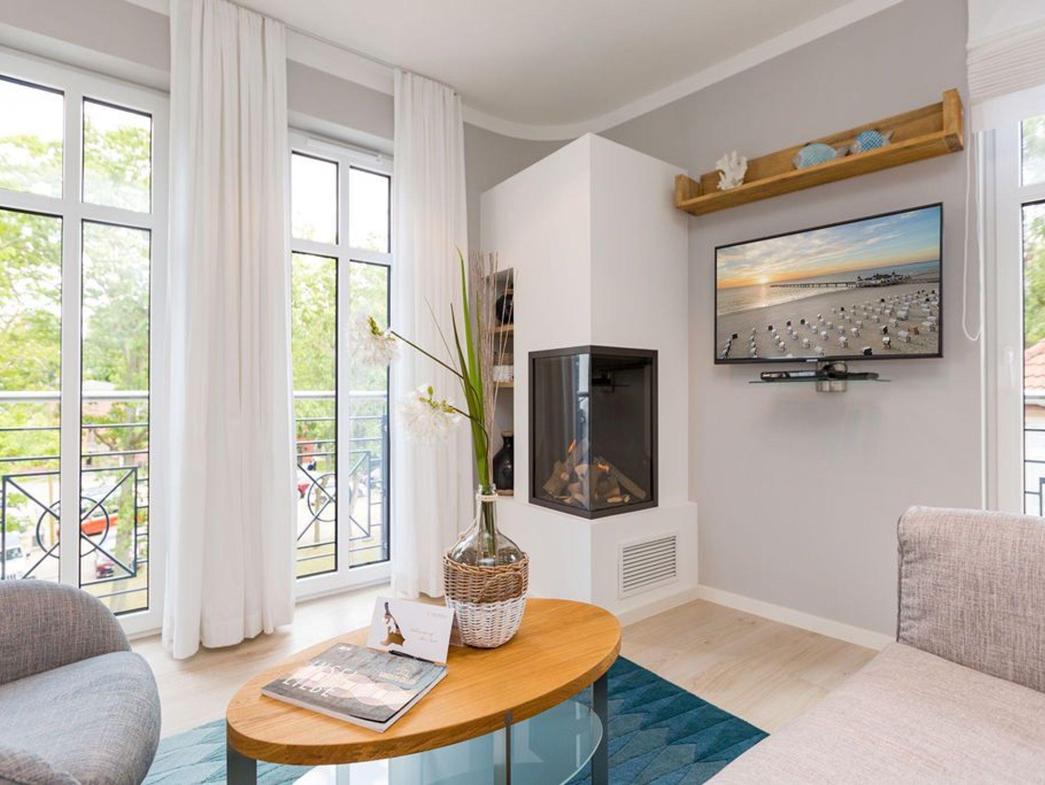 Komfortables 2-Zimmer-Apartment mit Balkon, Sauna und Meerblick im Herzen von Ahlbeck, perfekt für entspannte Ostseeferien.