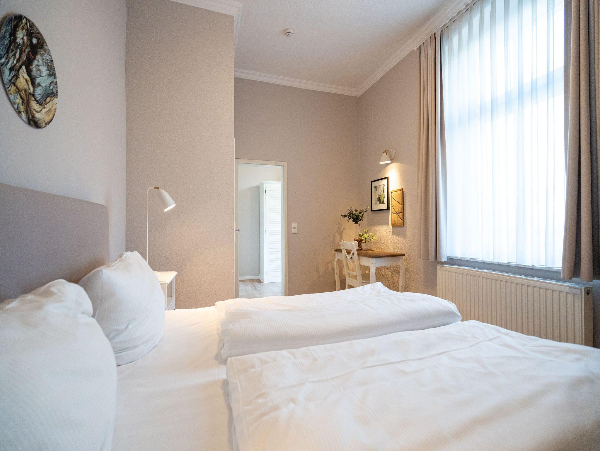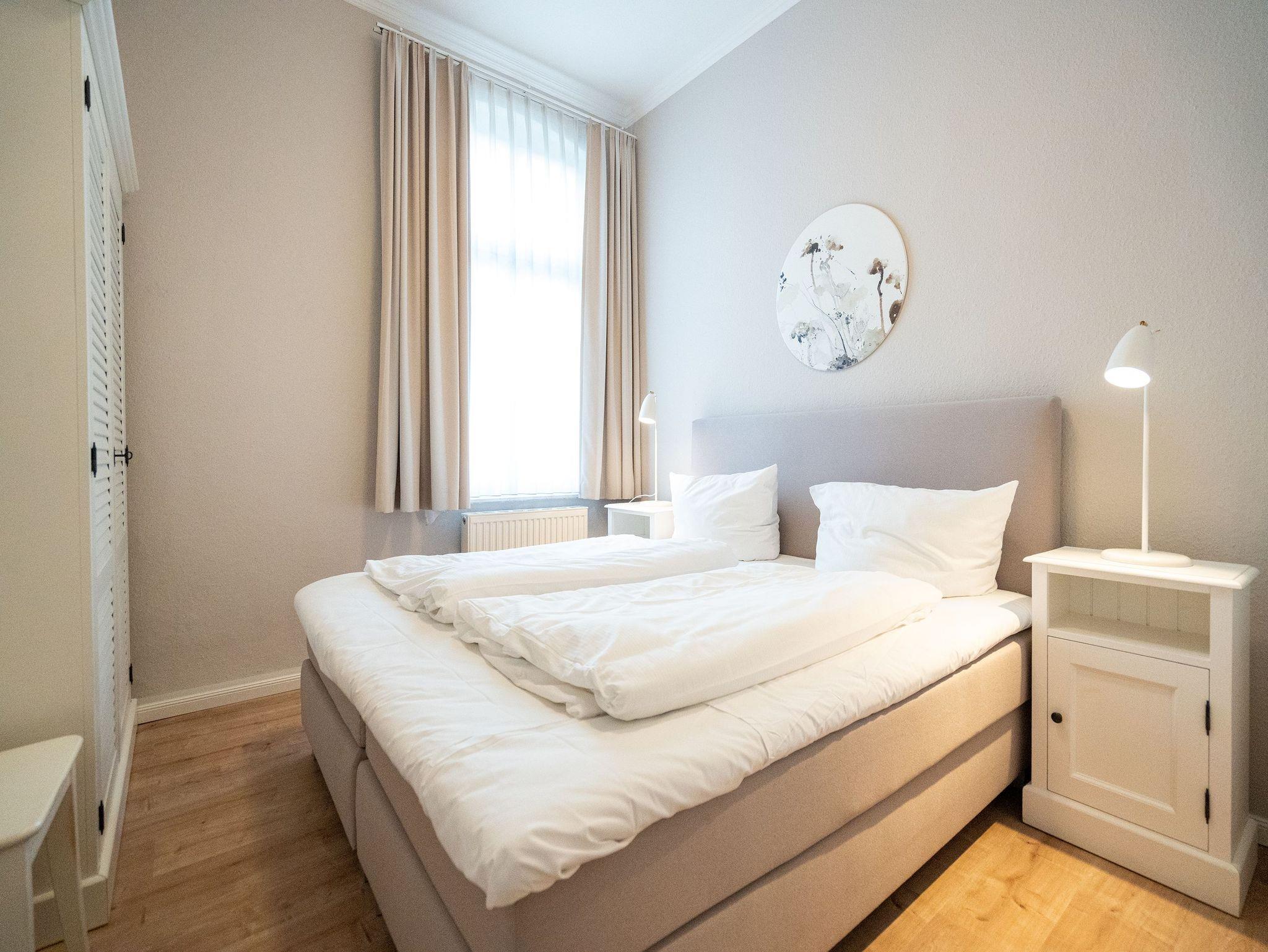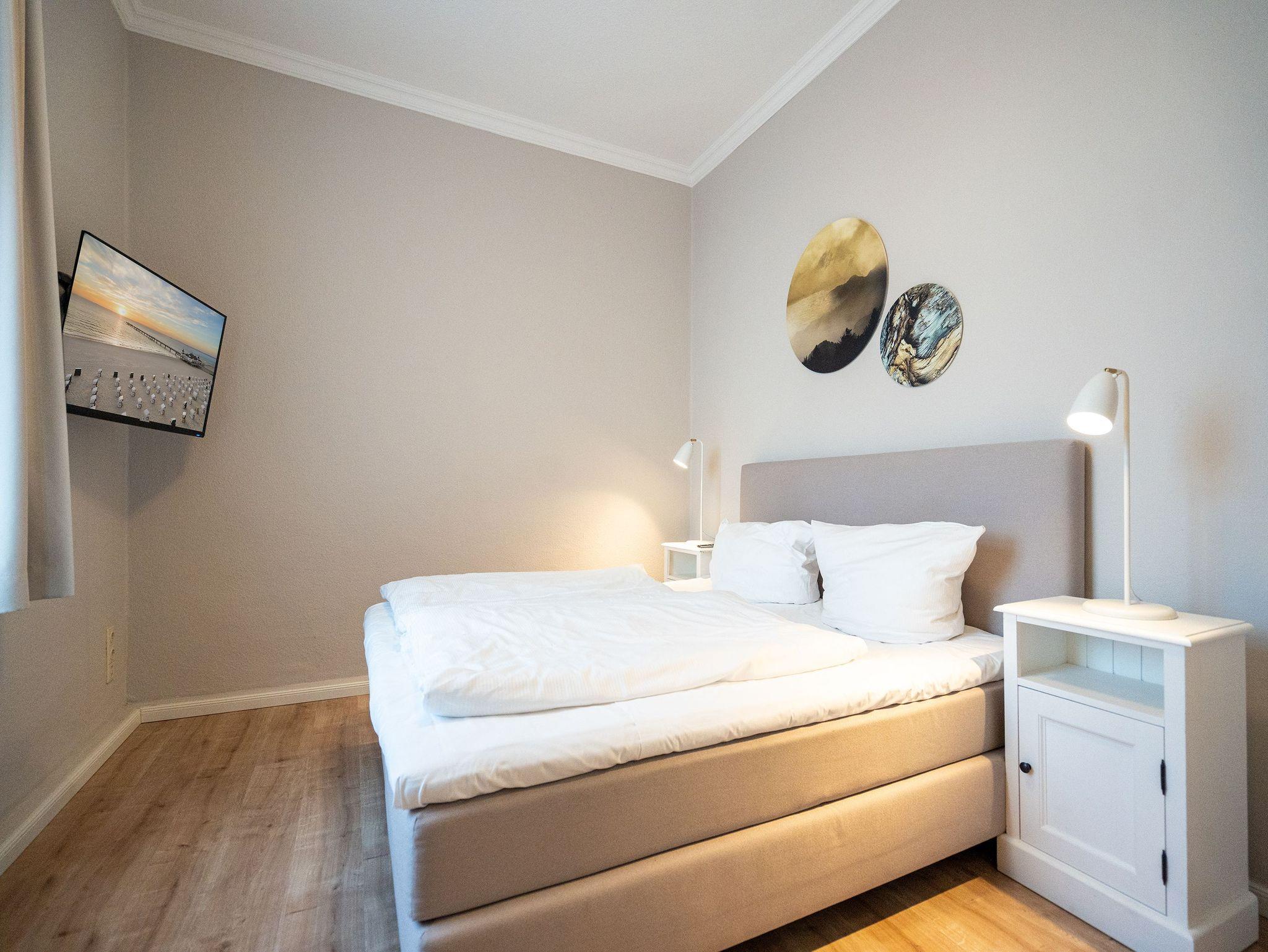 Drei Schlafzimmer, zwei Bäder, ein großes Wohn-Esszimmer mit offener Küche, eine große Terrasse, ein kleiner Balkon und die Ostsee nur wenige Meter vor der Haustür: das alles macht die Wohnung 2 im Erdgeschoss der Villa Albertine zu einem idealen Ort zum Urlauben mit Freunden oder der ganzen Familie. Denn auf den 80 Quadratmetern haben bis zu sechs Personen reichlich Platz für eine wunderschöne Ostseezeit. Hell und modern eingerichtet, sind Hektik und Stress hier schnell vergessen. In der lichtdurchfluteten Veranda lässt es sich auf dem Sofa im Landhausstil oder dem Chaiselongue herrlich vor dem großen Flat-TV entspannen. Der offene Wohn-Ess-Bereich ist mit einem großen Tisch ausgestattet, der Platz für bis zu 6 Personen bietet. Ihre Speisen können Sie in der Kochecke zubereiten. Ceranfeld, Backofen, Spülmaschine, Kühlschrank mit Gefrierfach sowie Kleinküchengeräte runden diesen Platz ab. Wenn das Wetter mitspielt, ist die Sonnenterrasse ein absoluter Lieblingsort. Hier können Sie vom Frühjahr bis in den Herbst auch draußen auf den Gartenmöbeln und dem obligatorischen Ostseestrandkorb sitzen und essen oder einfach nur die Sonne und die frische Ostseebrise genießen, die vom nur ein paar Meter entfernten Strand herüberweht. In den drei Schlafzimmern finden Sie komfortable Boxspringdoppelbetten (einmal 1,80 m x 2,00 m und zweimal 1,80 m x 1,90 m), die zum Schlafen und Kuscheln bestens geeignet sind. Ihre Urlaubsgarderobe können Sie bequem in einem der beiden Kleiderschränke in zwei Schlafzimmern verstauen. Das dritte Schlafzimmer verfügt über einen kleinen Abstellraum mit Kleiderschrank. Hier befindet sich auch der Durchgang zu einem kleinen Balkon nach hinten raus. Im Ferienappartement Nummer 2 gibt es zwei Bäder, die jeweils mit Dusche, Waschtisch und WC ausgestattet sind. Für die perfekte Urlaubsauszeit sind die Betten bei Ihrer Anreise bereits bezogen und Handtücher liegen bereit. Zum Appartement gehört ein Pkw-Stellplatz, der Platz für bis zu zwei Autos bietet.