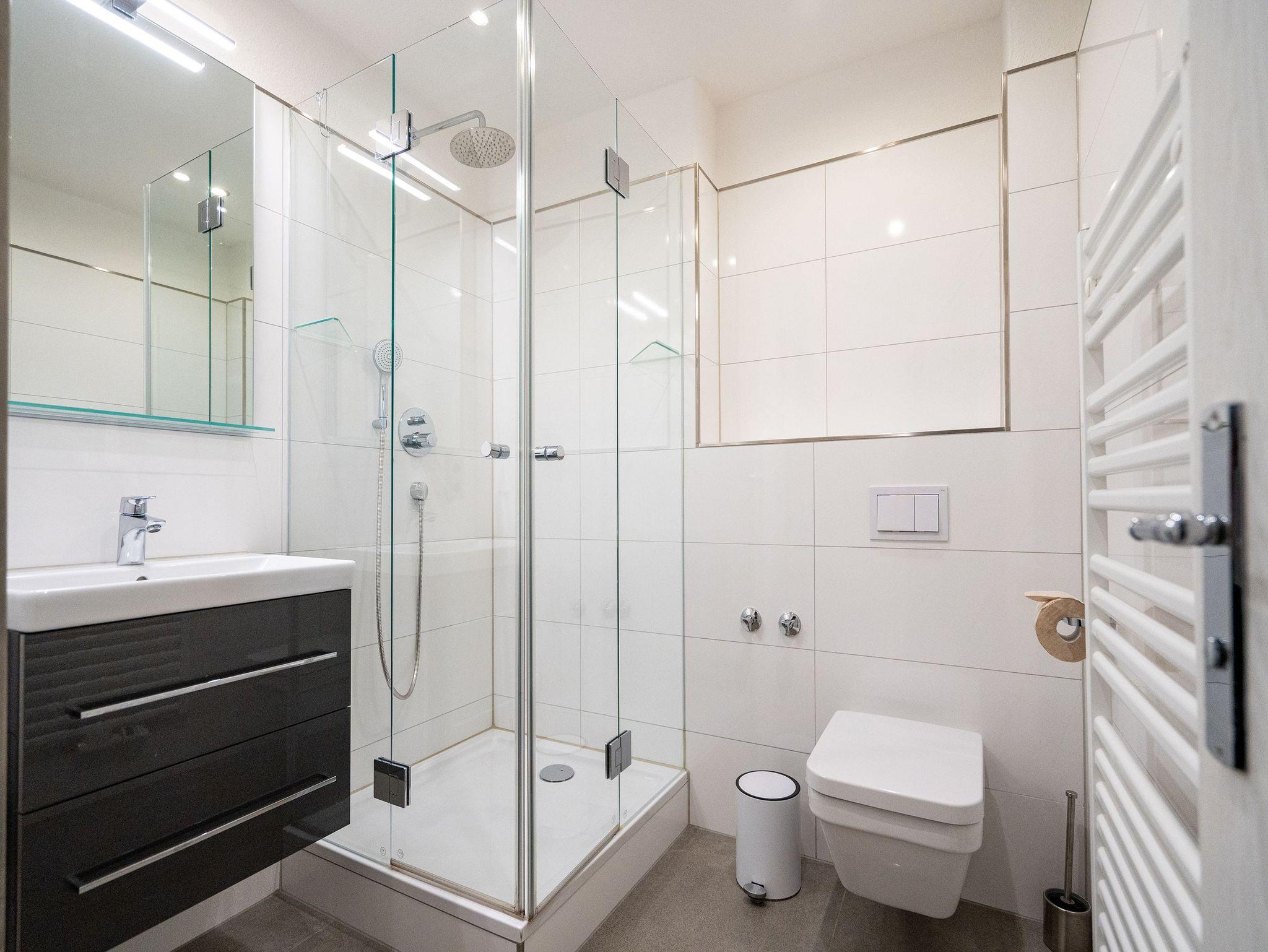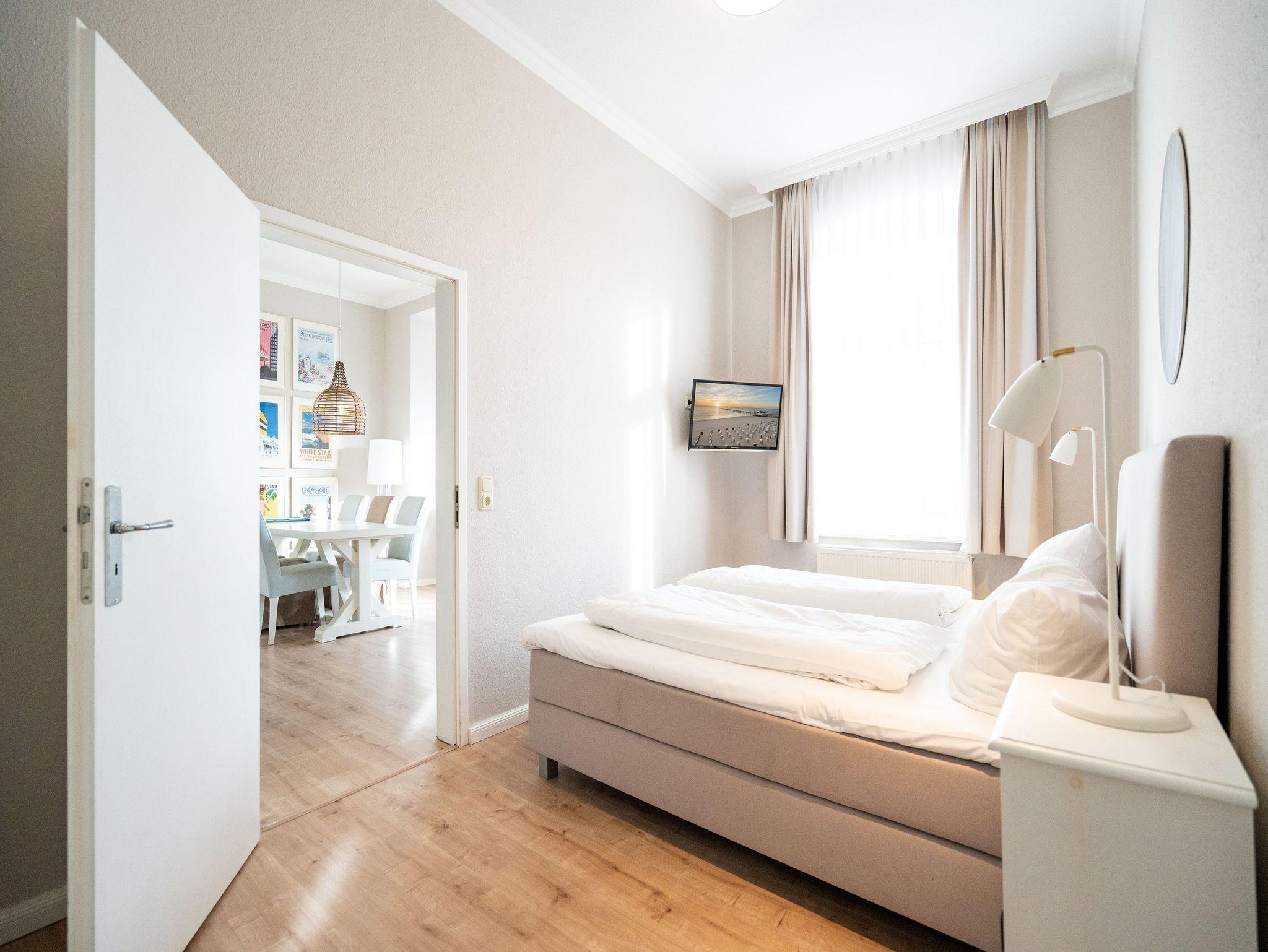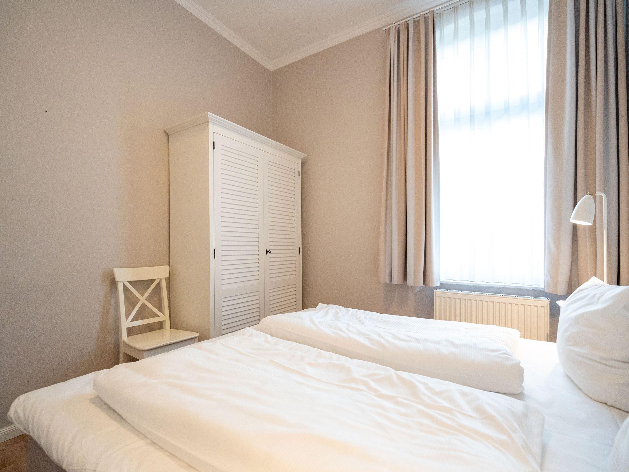 Drei Schlafzimmer, zwei Bäder, ein großes Wohn-Esszimmer mit offener Küche, eine große Terrasse, ein kleiner Balkon und die Ostsee nur wenige Meter vor der Haustür: das alles macht die Wohnung 2 im Erdgeschoss der Villa Albertine zu einem idealen Ort zum Urlauben mit Freunden oder der ganzen Familie. Denn auf den 80 Quadratmetern haben bis zu sechs Personen reichlich Platz für eine wunderschöne Ostseezeit. Hell und modern eingerichtet, sind Hektik und Stress hier schnell vergessen. In der lichtdurchfluteten Veranda lässt es sich auf dem Sofa im Landhausstil oder dem Chaiselongue herrlich vor dem großen Flat-TV entspannen. Der offene Wohn-Ess-Bereich ist mit einem großen Tisch ausgestattet, der Platz für bis zu 6 Personen bietet. Ihre Speisen können Sie in der Kochecke zubereiten. Ceranfeld, Backofen, Spülmaschine, Kühlschrank mit Gefrierfach sowie Kleinküchengeräte runden diesen Platz ab. Wenn das Wetter mitspielt, ist die Sonnenterrasse ein absoluter Lieblingsort. Hier können Sie vom Frühjahr bis in den Herbst auch draußen auf den Gartenmöbeln und dem obligatorischen Ostseestrandkorb sitzen und essen oder einfach nur die Sonne und die frische Ostseebrise genießen, die vom nur ein paar Meter entfernten Strand herüberweht. In den drei Schlafzimmern finden Sie komfortable Boxspringdoppelbetten (einmal 1,80 m x 2,00 m und zweimal 1,80 m x 1,90 m), die zum Schlafen und Kuscheln bestens geeignet sind. Ihre Urlaubsgarderobe können Sie bequem in einem der beiden Kleiderschränke in zwei Schlafzimmern verstauen. Das dritte Schlafzimmer verfügt über einen kleinen Abstellraum mit Kleiderschrank. Hier befindet sich auch der Durchgang zu einem kleinen Balkon nach hinten raus. Im Ferienappartement Nummer 2 gibt es zwei Bäder, die jeweils mit Dusche, Waschtisch und WC ausgestattet sind. Für die perfekte Urlaubsauszeit sind die Betten bei Ihrer Anreise bereits bezogen und Handtücher liegen bereit. Zum Appartement gehört ein Pkw-Stellplatz, der Platz für bis zu zwei Autos bietet.
