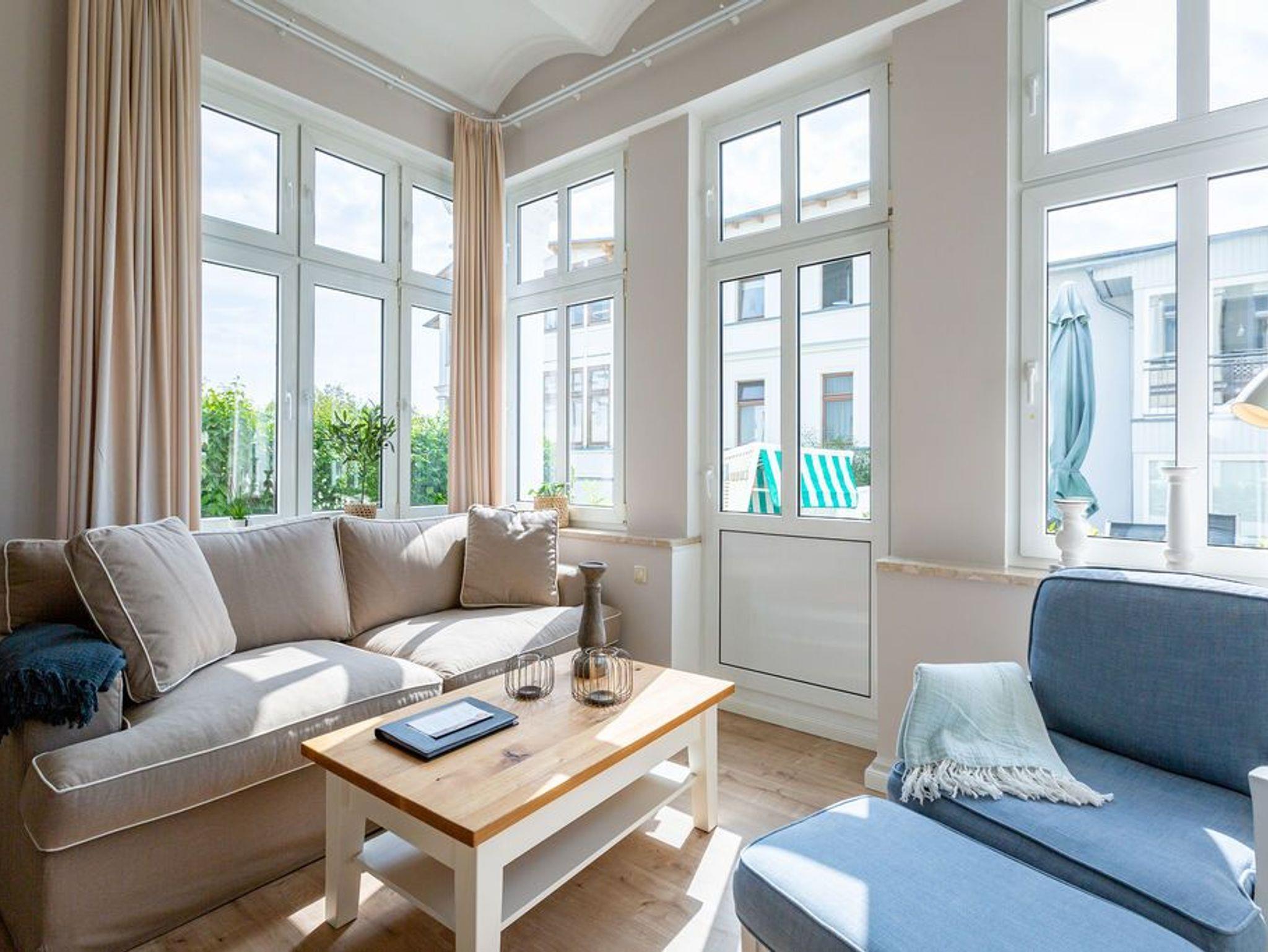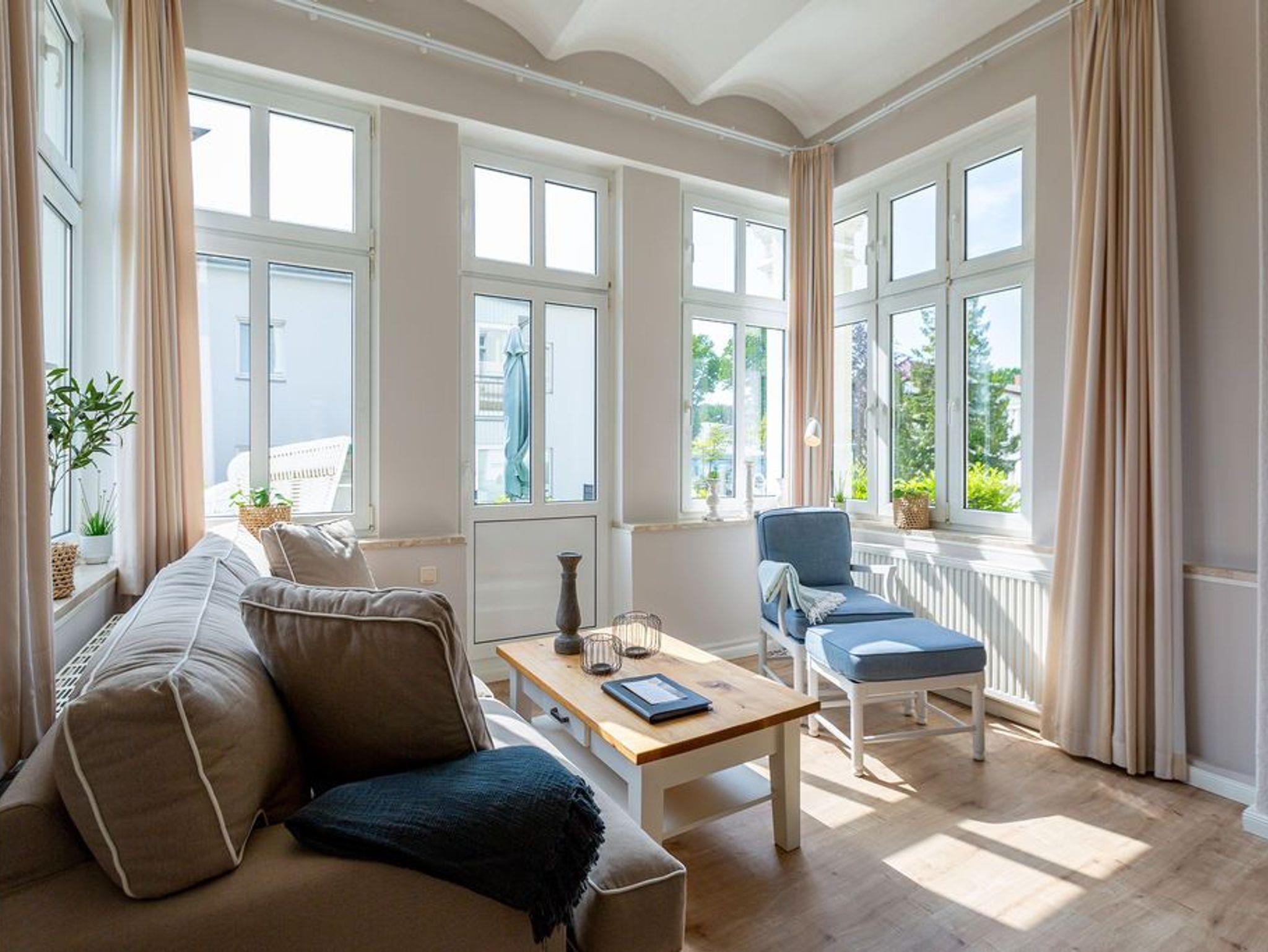 Moderne Ferienwohnung mit drei Schlafzimmern, großer Terrasse und nur wenige Meter von der Ostsee in Ahlbeck entfernt.
