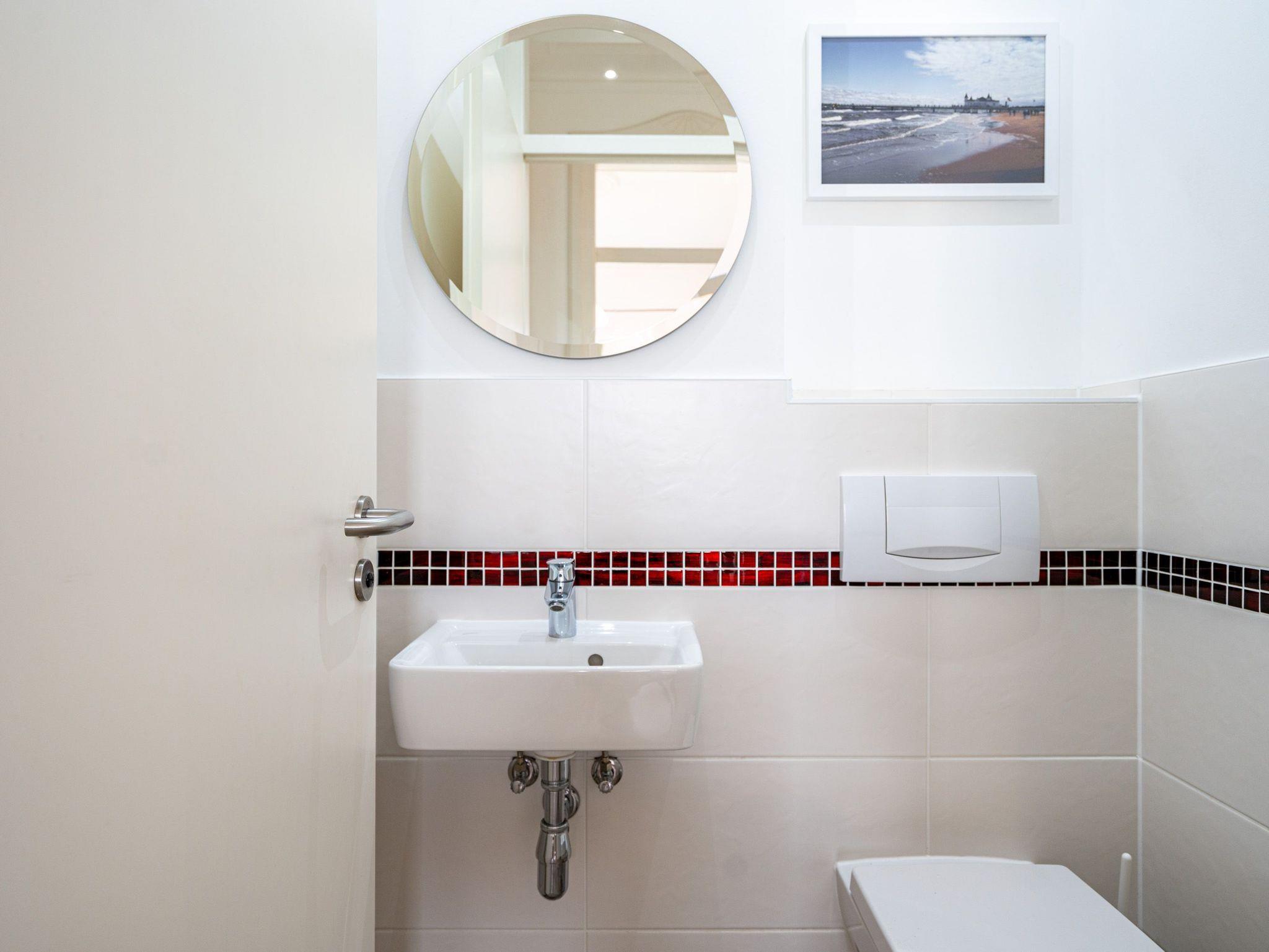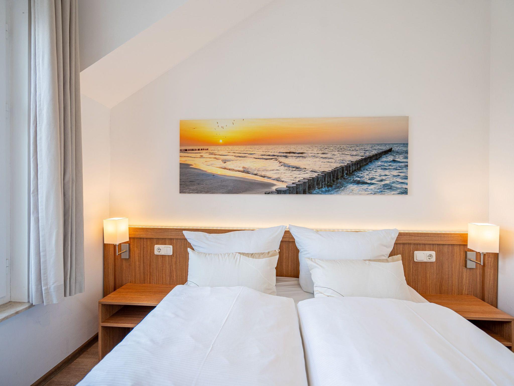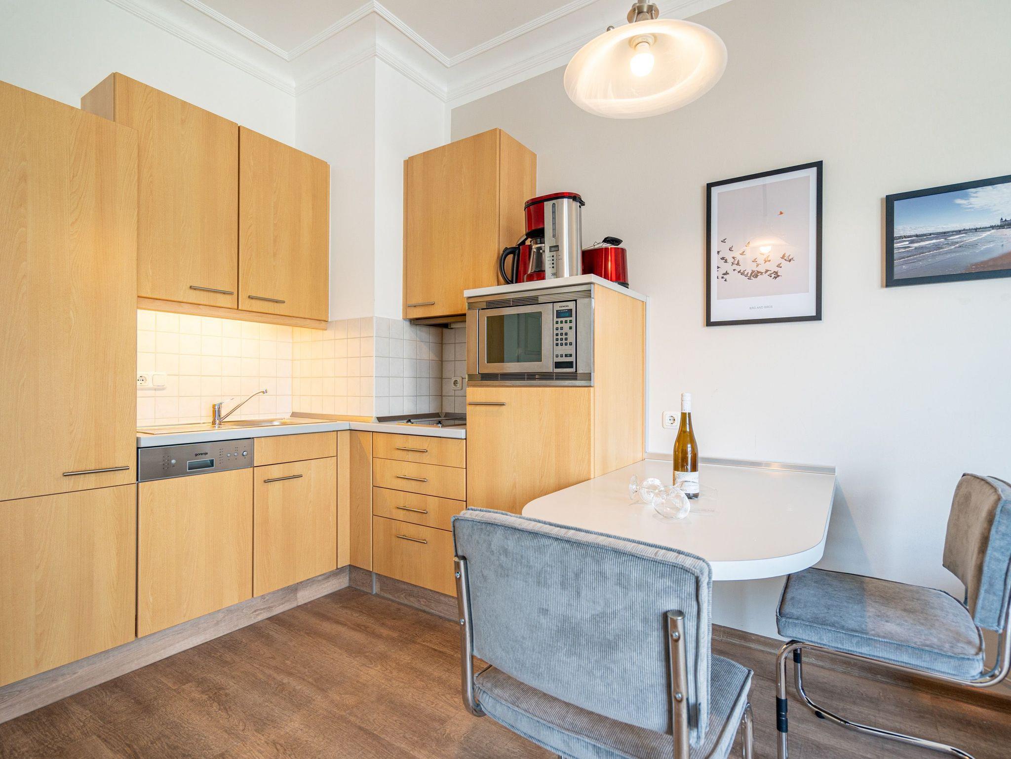 Die 2-Raum-Ferienwohnung Nr. C10 in der Villa Seedüwel bietet auf 38 qm Platz für zwei Personen und befindet sich im 2. Obergeschoss. Der offene Wohnbereich umfasst eine Küchenzeile mit einem 2-Platten-Cerankochfeld, einer Mikrowelle und einem Kühlschrank mit Gefrierfach. Ein Essplatz für zwei Personen, eine gemütliche Sitzgruppe und ein Flat-TV runden den Wohnbereich ab. Vom Wohnbereich aus gelangen Sie auf den ca. 4 qm großen West-Balkon, wo Sie entspannen können. Das Schlafzimmer ist mit einem Doppelbett (1,60 m x 2,00 m) und einem Kleiderschrank ausgestattet. Das innenliegende Bad verfügt über eine Dusche und ein Waschbecken, zudem gibt es ein separates WC. Ein Stellplatz in der Tiefgarage ( Einfahrthöhe 2,03m) des benachbarten Hauses „Strandterrasse“ ist für Sie reserviert. WLAN steht Ihnen kostenfrei zur Verfügung.