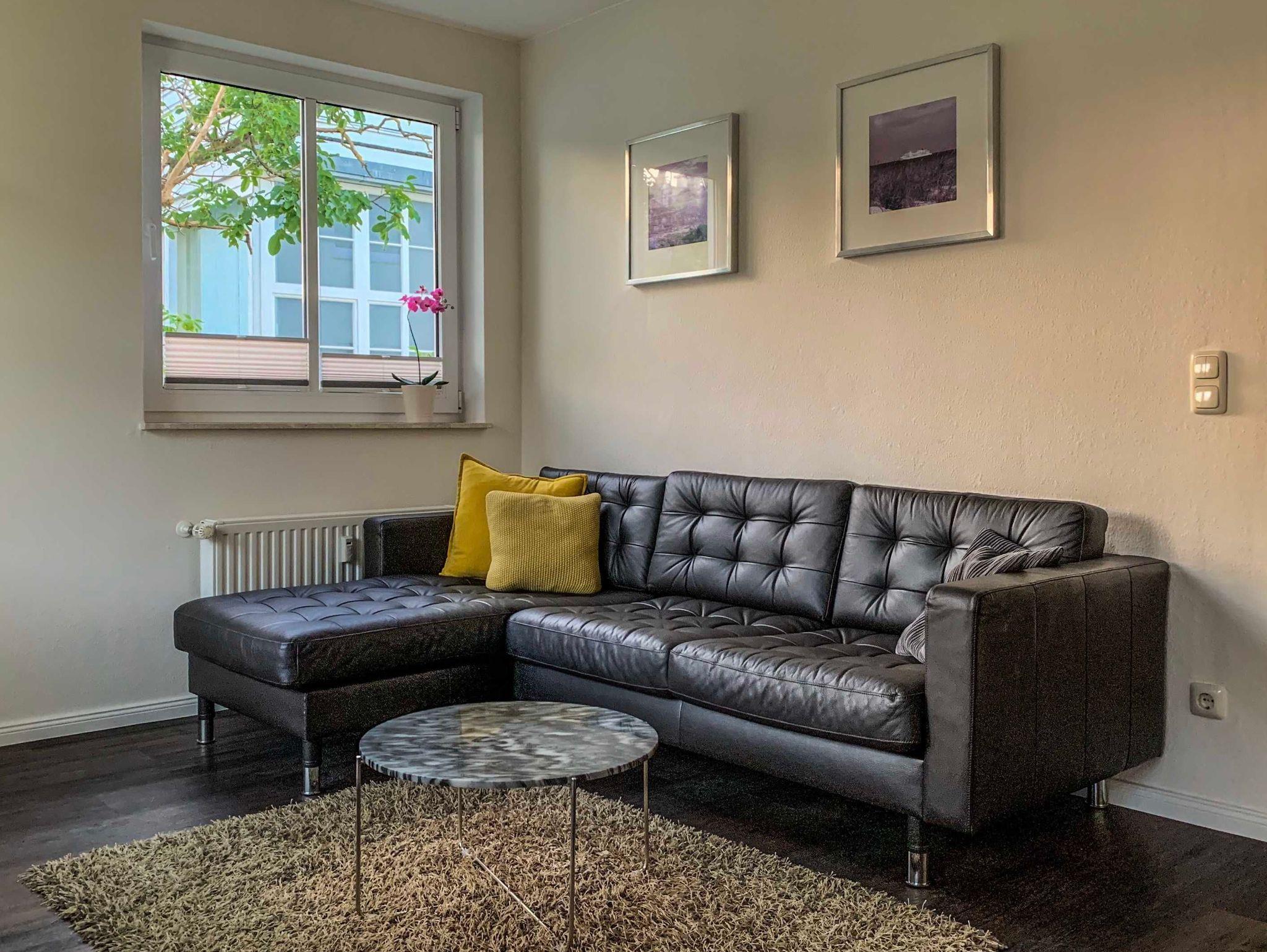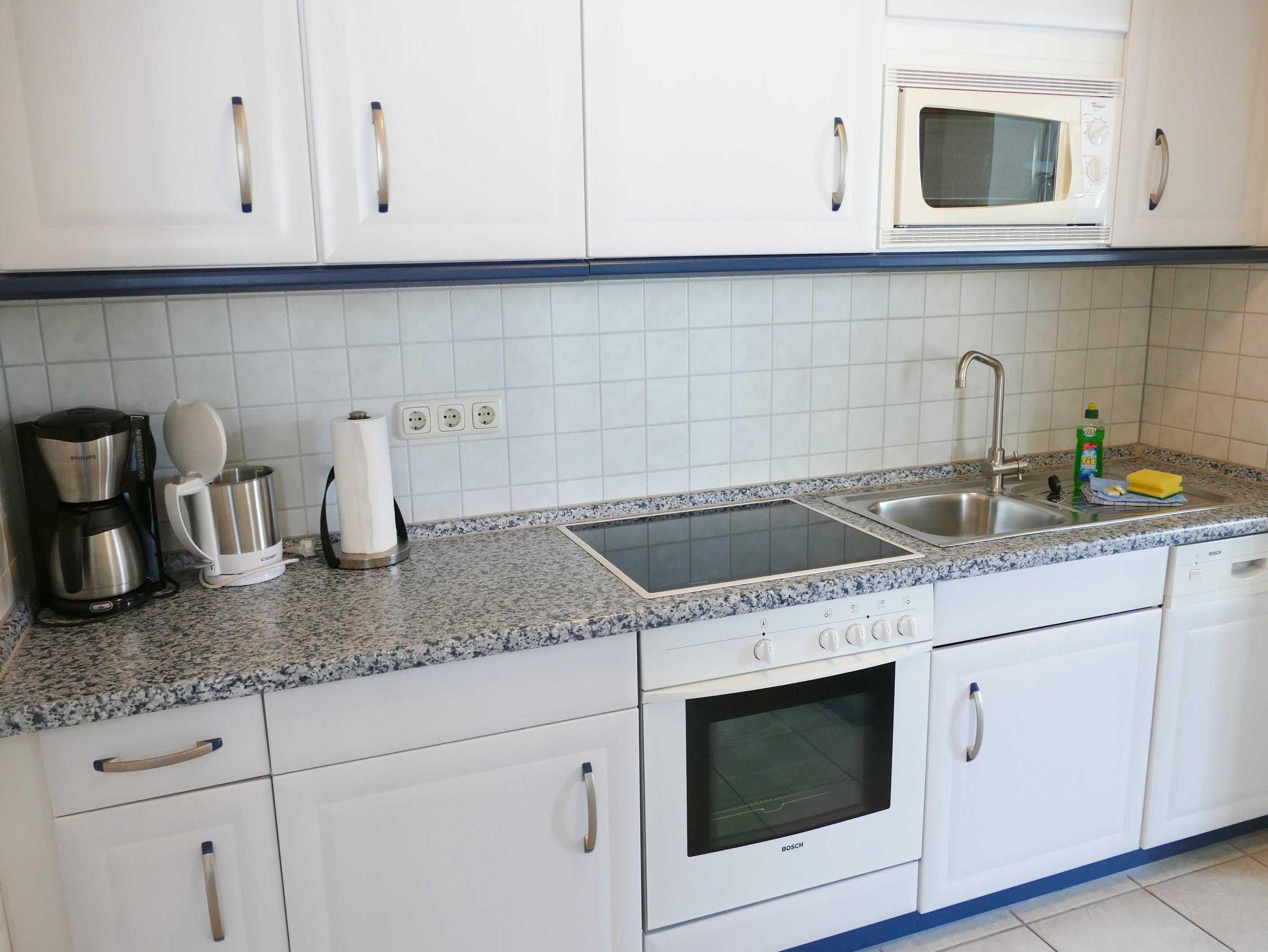 Die Ferienwohnung mit einer Größe von 40 m² befindet sich im ersten Obergeschoss des Hauses. Die 2-Raumwohnung ist modern eingerichtet und bietet bis zu 2 Personen Platz für einen angenehmen Ferienaufenthalt. Der Wohnbereich, mit sonnigem Balkon zur Süd- Westseite und Sitzmöbeln, ist mit einer modernen Sitz- und Essecke, TV, Radio/CD/DVD-Player und kostenfreiem WLAN ausgestattet. Eine komplett ausgestattete Küchenzeile mit Elektroherd, Kühlschrank mit Gefrierfach, Geschirrspüler, Mikrowelle, Kaffeemaschine und Toaster befindet sich im Eingangsbereich. Ein Schlafzimmer mit Doppelbett mit einer Liegefläche von 1,60 m x 2,00 m sowie ein Tageslichtbad mit Dusche und WC sind ebenfalls vorhanden.