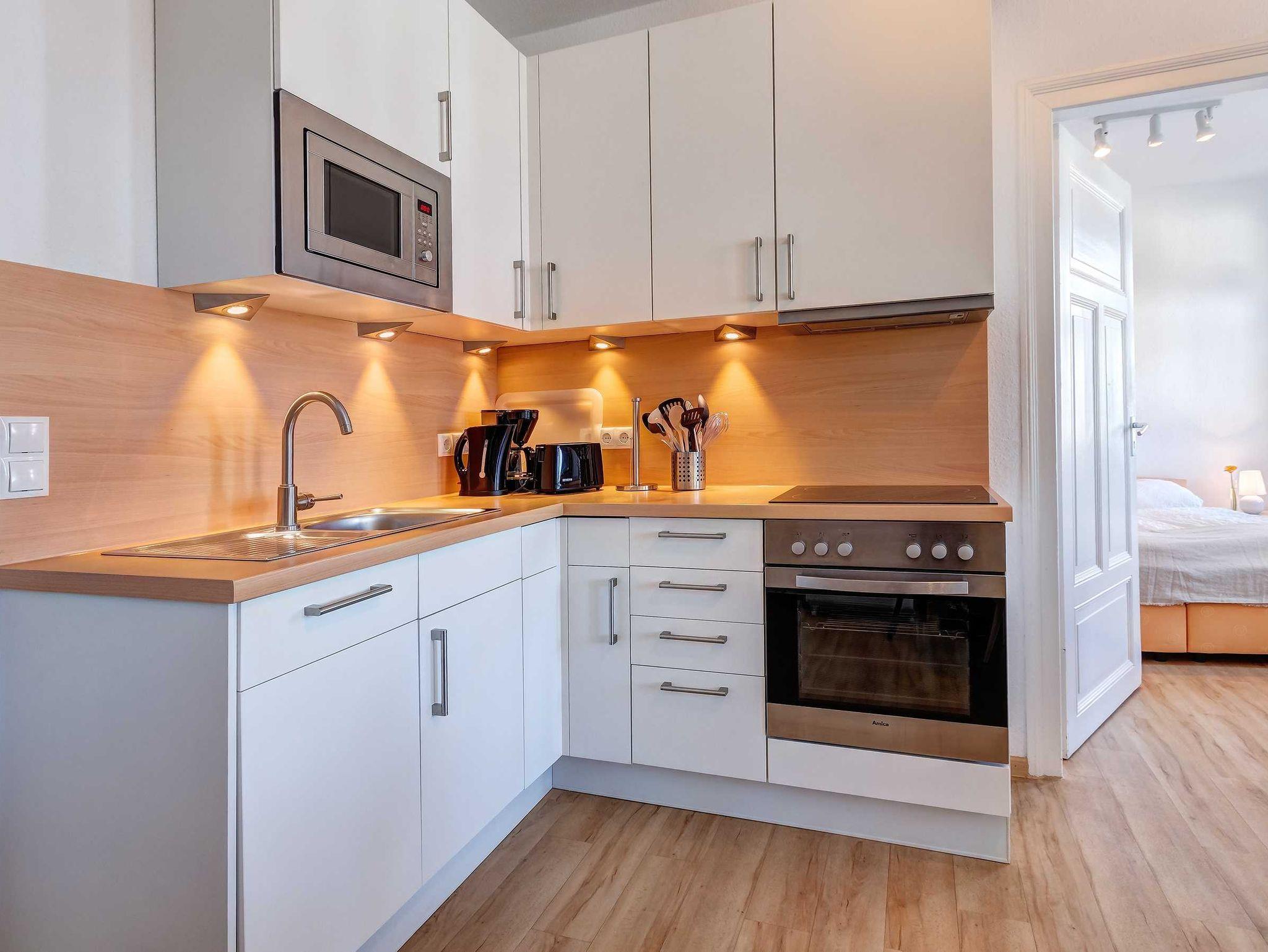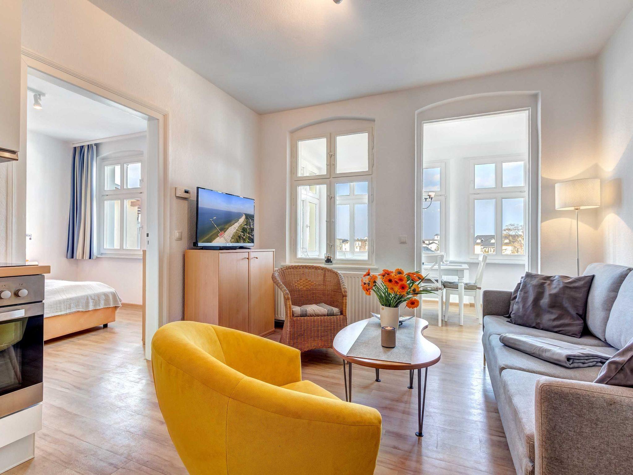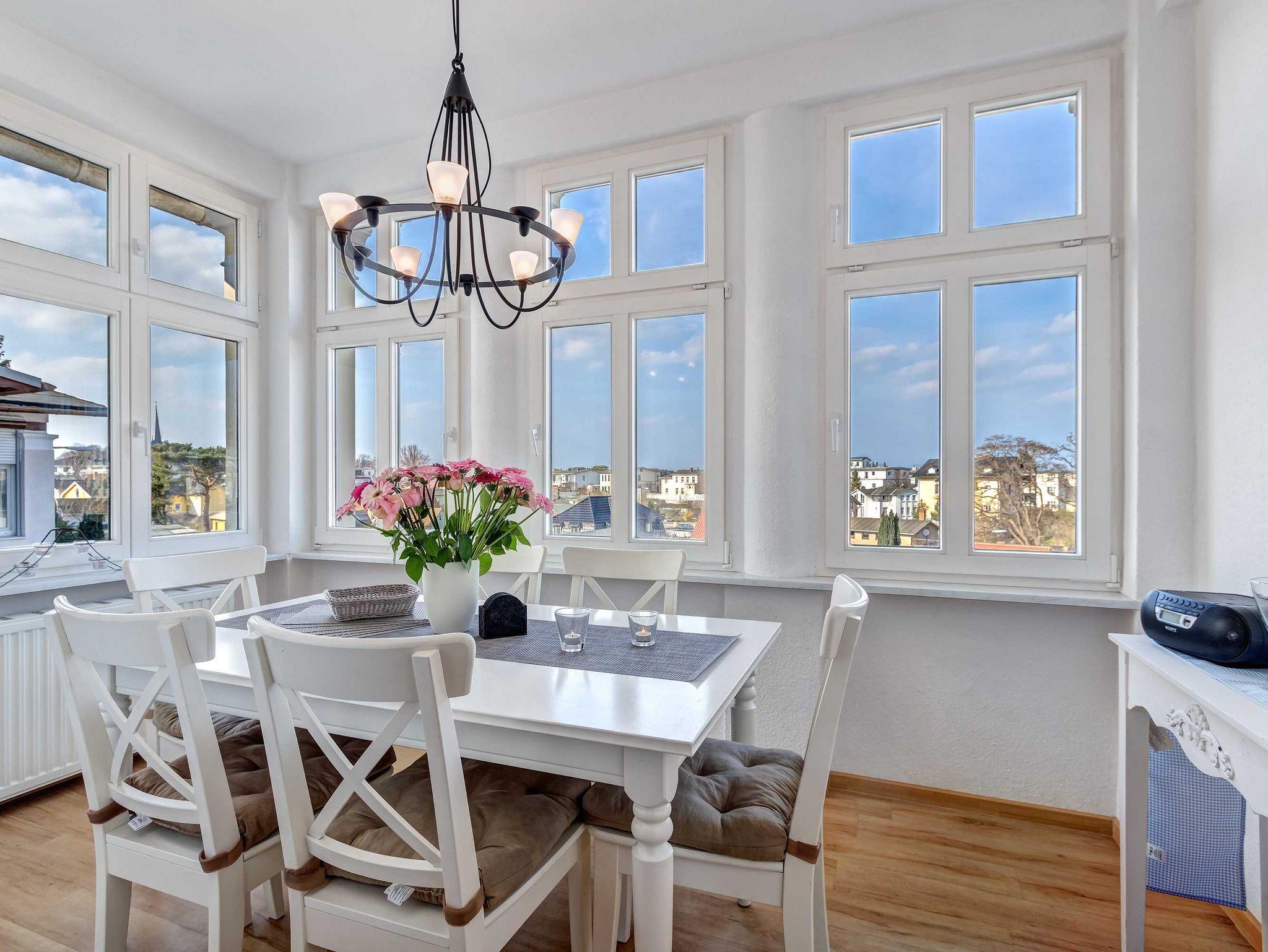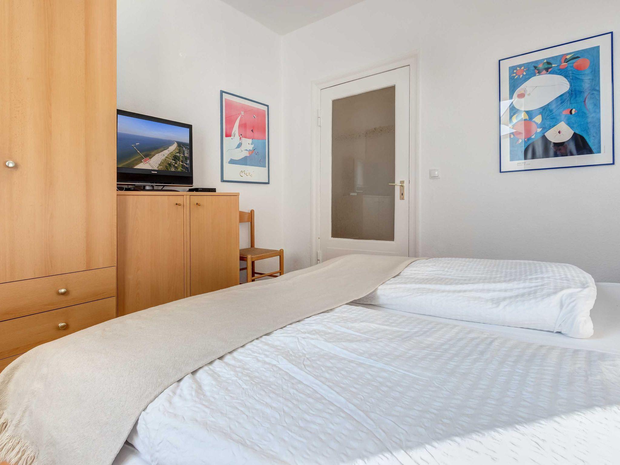 Strandnah! Ruhige Lage! Großer Balkon! Schöner Weitblick aus der verglasten Veranda! Diese großzügige, 2014 renovierte 4-Raum-Wohnung, hat 3 Schlafzimmer und ist für bis zu 6 Personen (2 Doppelbetten 1,80m breit, 1 Doppelbett 1,60m breit). Im Wohnzimmer befinden sich eine Couch, ein Flachbildfernseher und eine offene Küche mit amerikanischem Kühlschrank. Der Essplatz befindet sich in der verglasten Veranda mit schönem Weitblick. Die Küche ist mit einem Backofen, Kaffeemaschine, Wasserkocher, Mikrowelle, Geschirrspüler und Toaster ausgestattet. Die 2 Bäder sind mit Badewanne und Duche bzw. nur Dusche ausgestattet, wobei 1 Bad En-Suite ist! Die Ferienwohnung befindet sich in der 1. Etage. Zur Wohnung gehört ein kostenfreier Pkw-Stellplatz auf dem Grundstück.