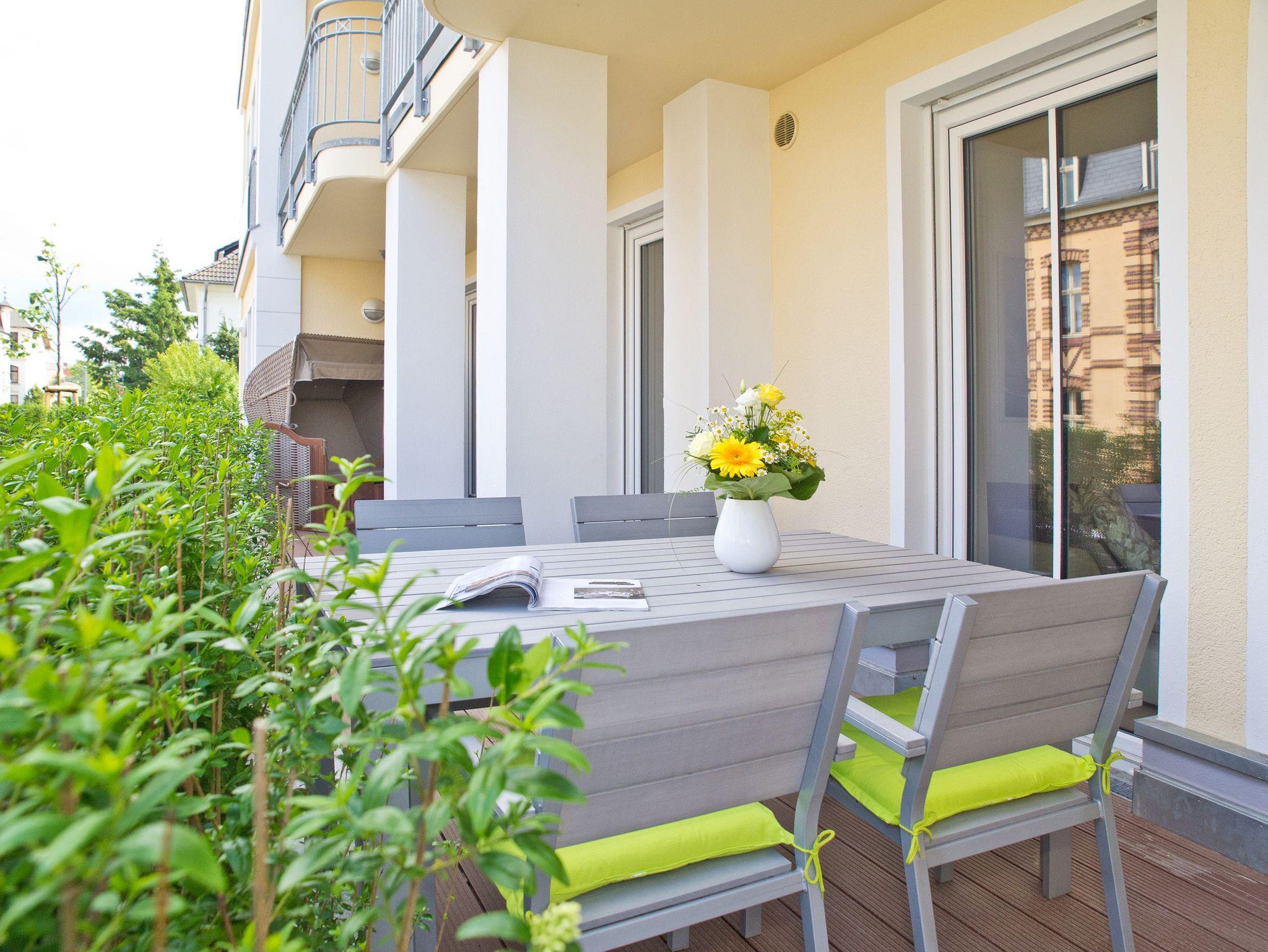 Charmante Ferienwohnung im Dünenpalais Ahlbeck mit Gaskamin, Terrasse und kostenfreiem WLAN, nur 100 m vom Strand entfernt.