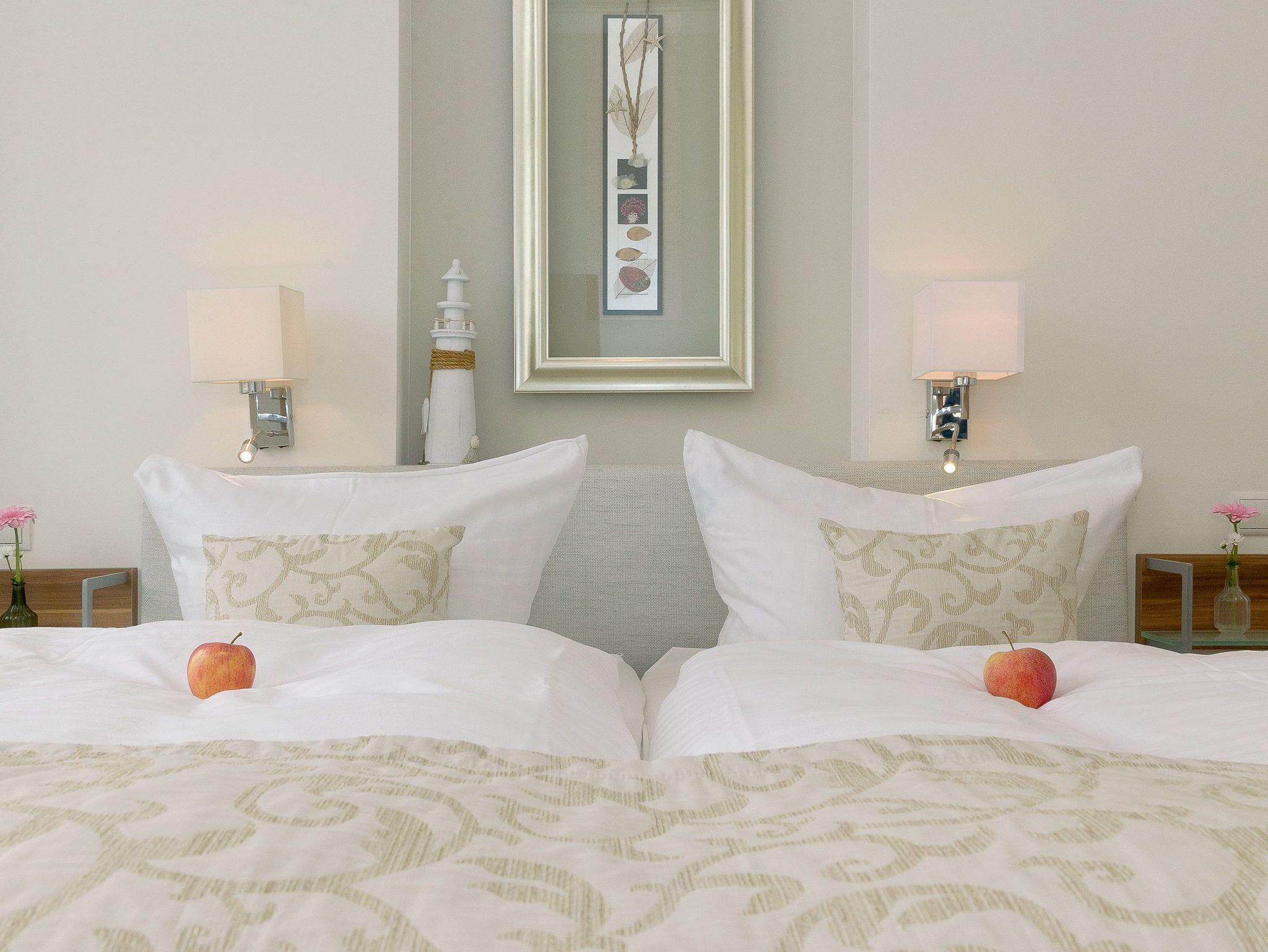Damit Sie Ihre wohlverdiente Urlaubszeit bereits am Anreisetag in vollen Zügen genießen können, haben wir das Bett für Sie und das für Ihre lieben Mitreisenden bereits bezogen und ein Duschtuch sowie ein kleines Handtuch bereitgelegt.