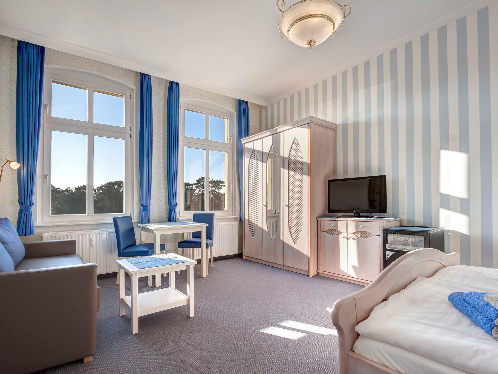 Das Hotel Villa Seeschlößchen bietet ein stilvolles Doppelzimmer direkt an der Strandpromenade in Ahlbeck.