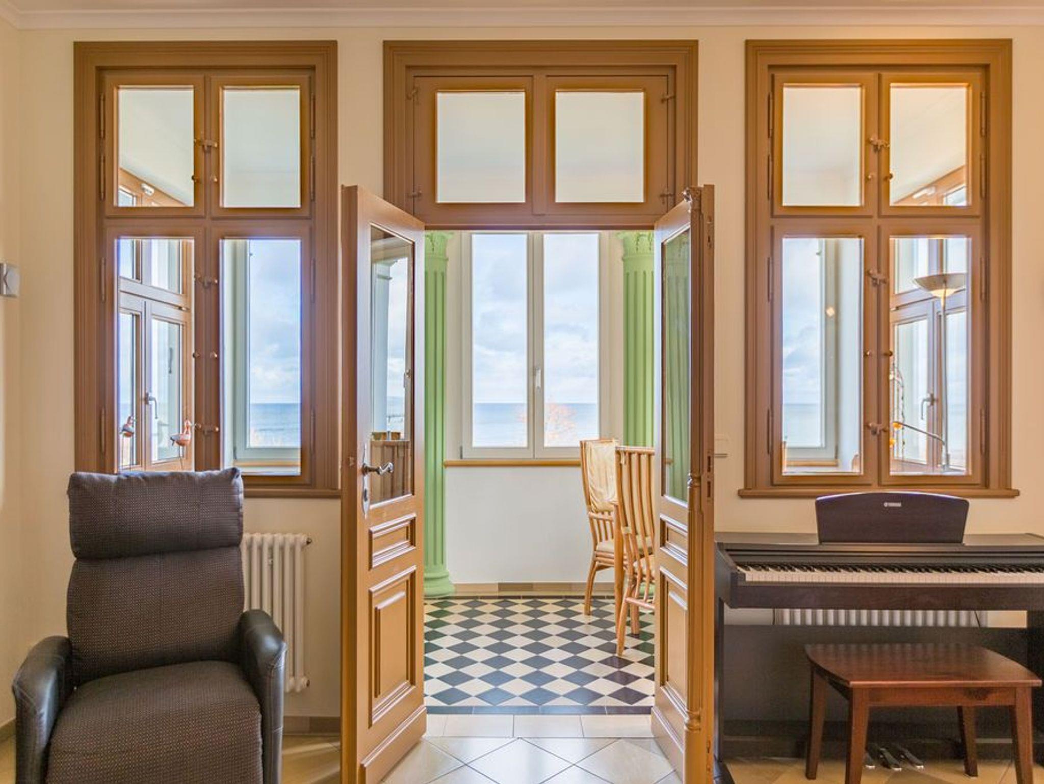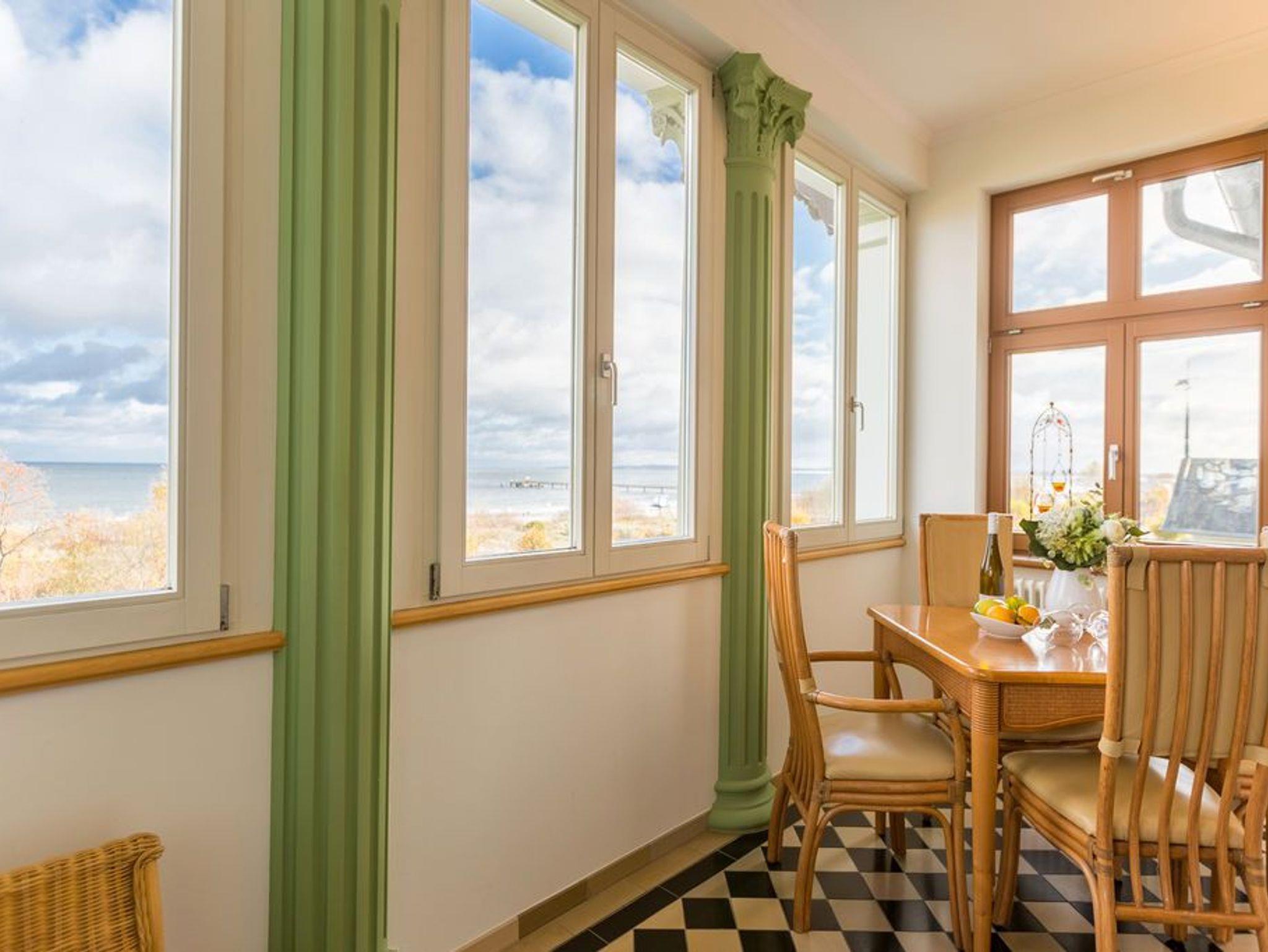 Erleben Sie tollen Meerblick und Komfort in der stilvollen Villa Bella, nur wenige Meter vom Strand in Ahlbeck entfernt.