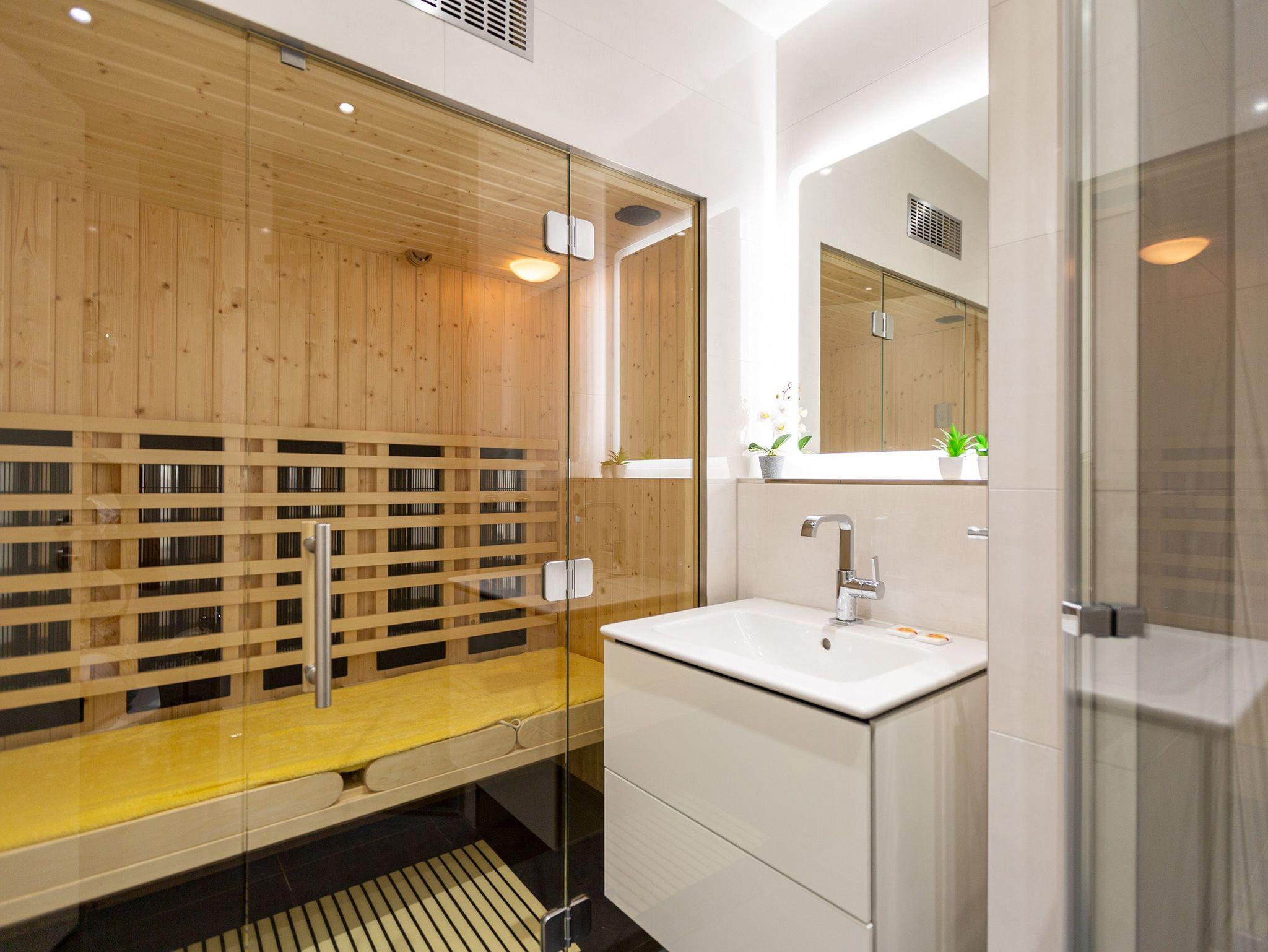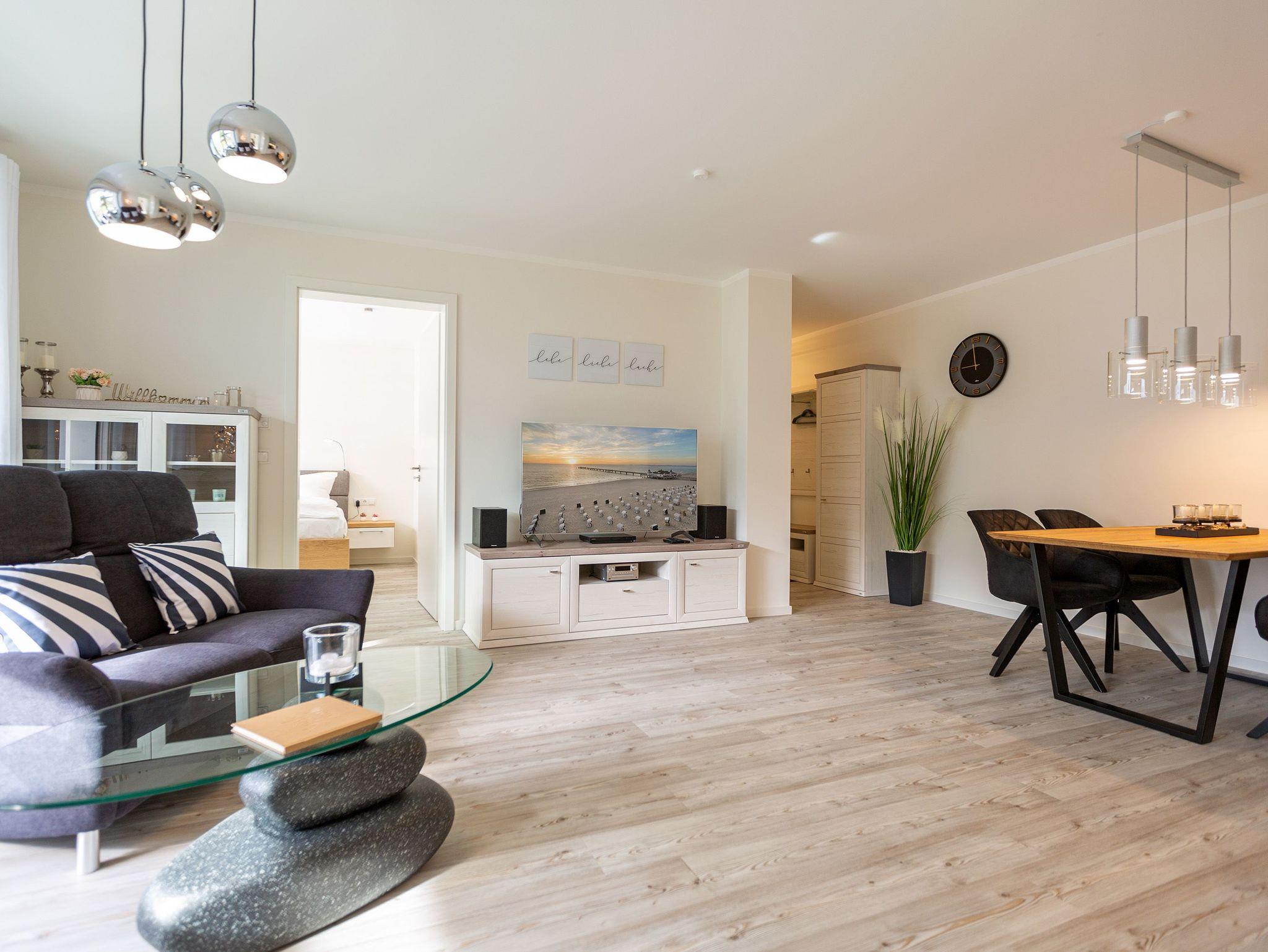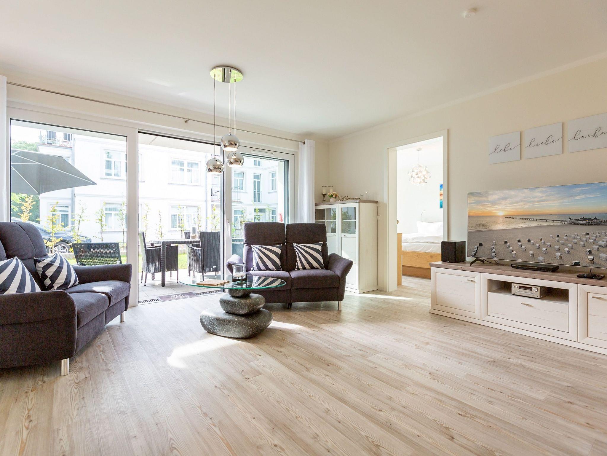 Modernes Dreizimmer-Appartement in Ahlbeck mit Terrasse, Infrarotsauna und kostenfreiem WLAN, nur 250 m vom Strand entfernt.