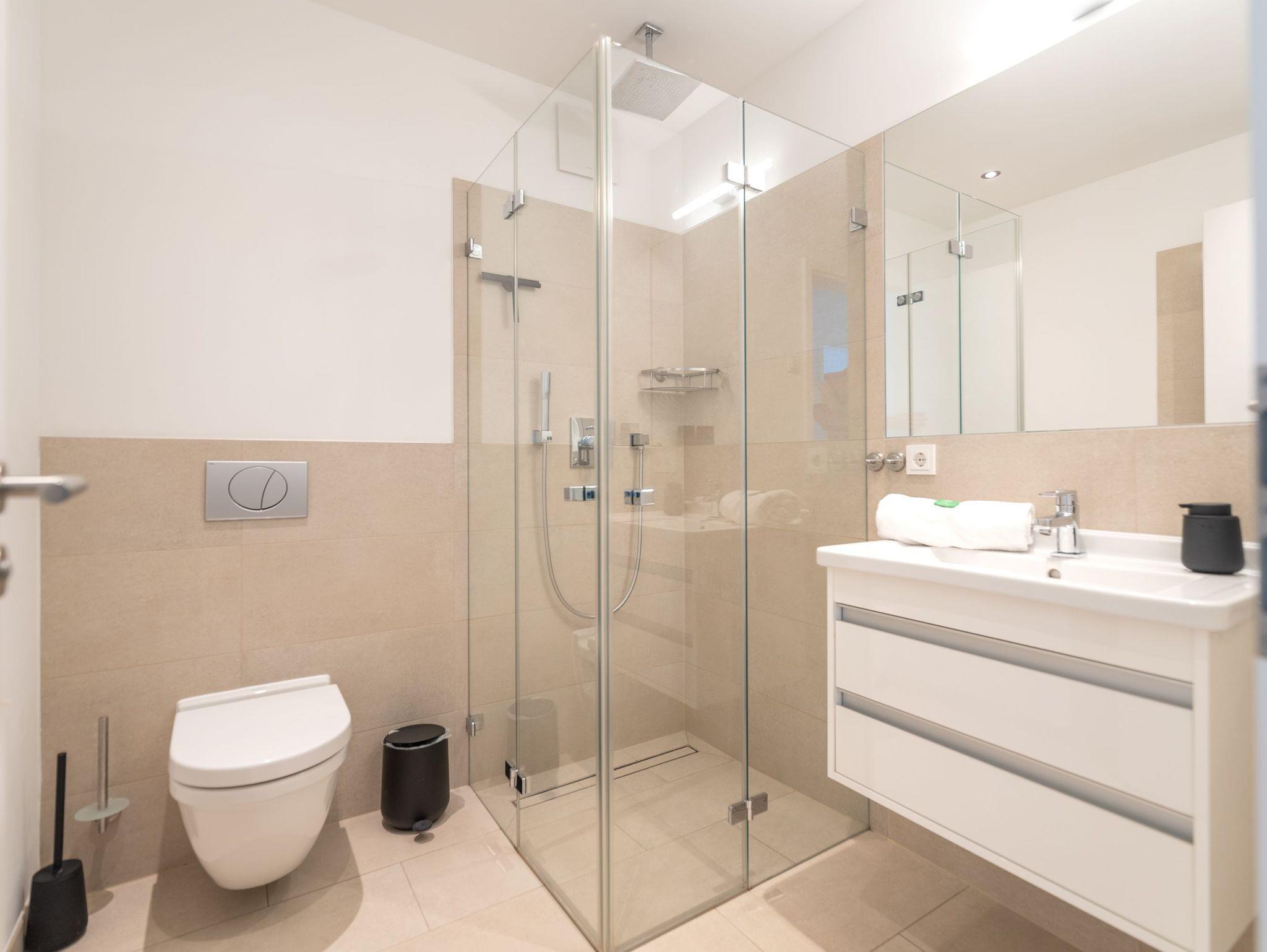 • Zwei modern eingerichtete Schlafzimmer mit bequemen Doppelboxspringbetten (1,80 m x 2,00 m), Flat-TVs und geräumigen Einbauschränken.