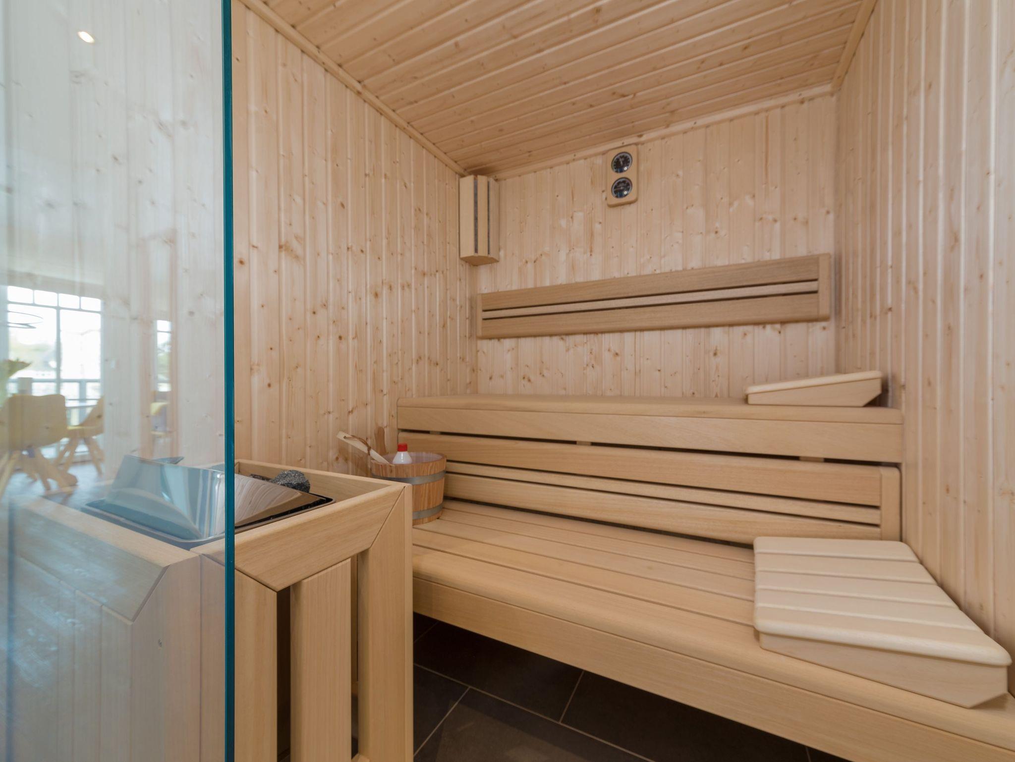 • Eine geräumige Panoramasauna für entspannende Momente, besonders nach einem langen Spaziergang am Strand.