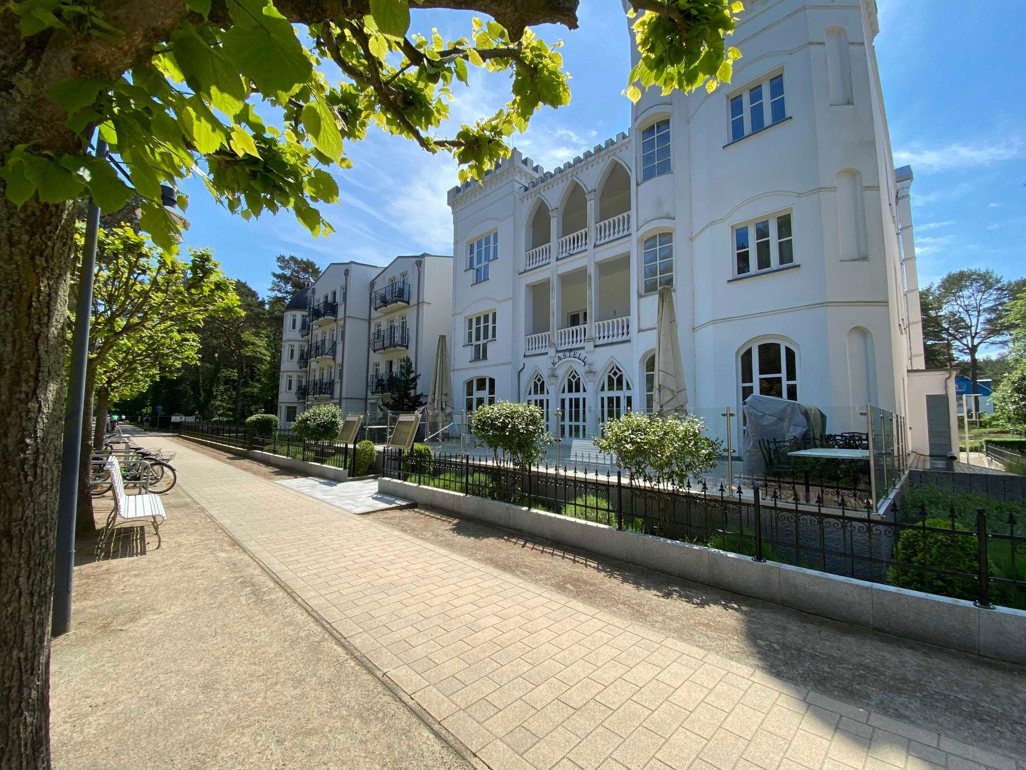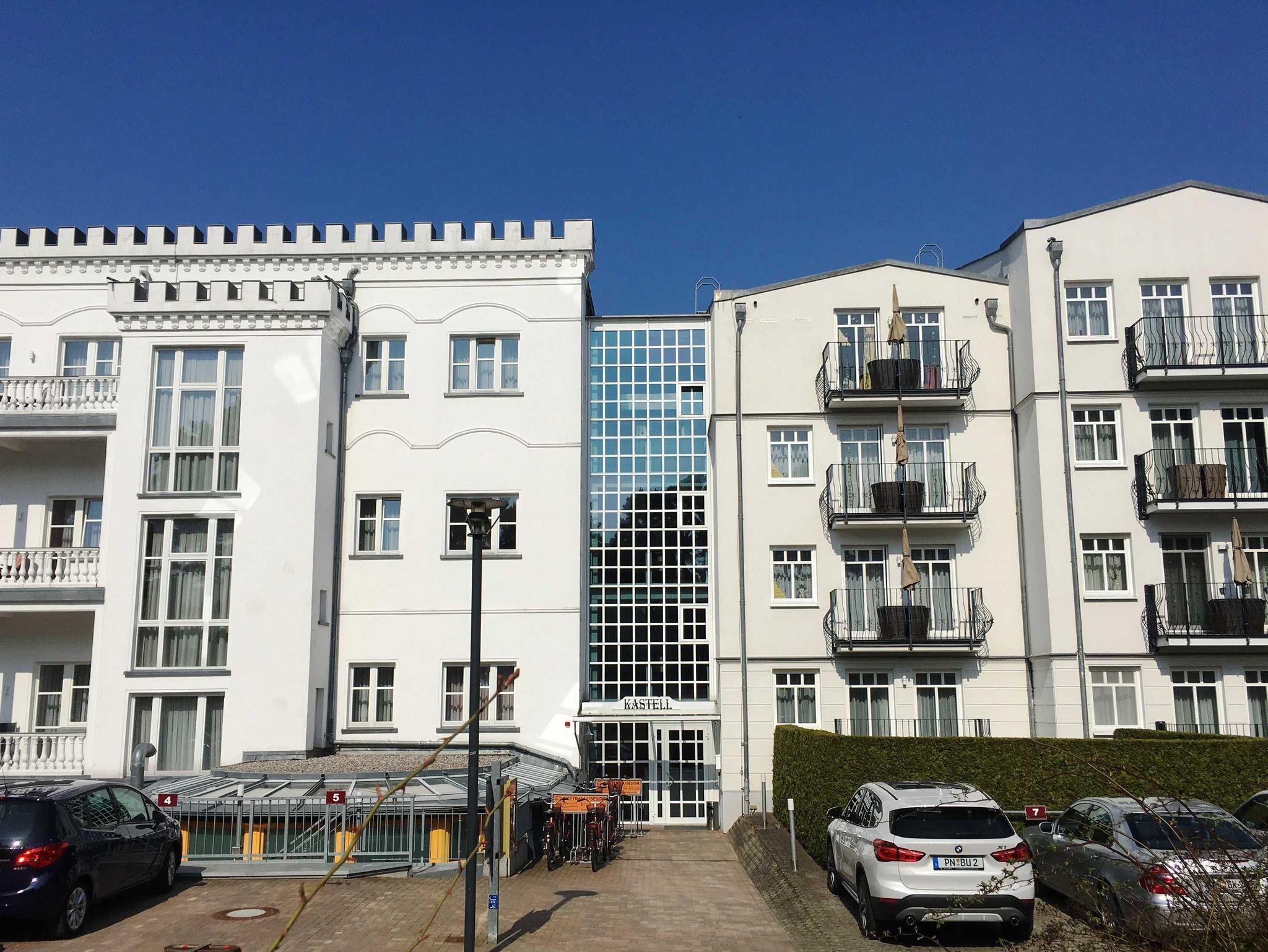 Das ruhig gelegene Apartmenthaus Kastell in Ahlbeck bietet Strandnähe, Balkon und Tiefgaragenplatz für entspannte Ferien.