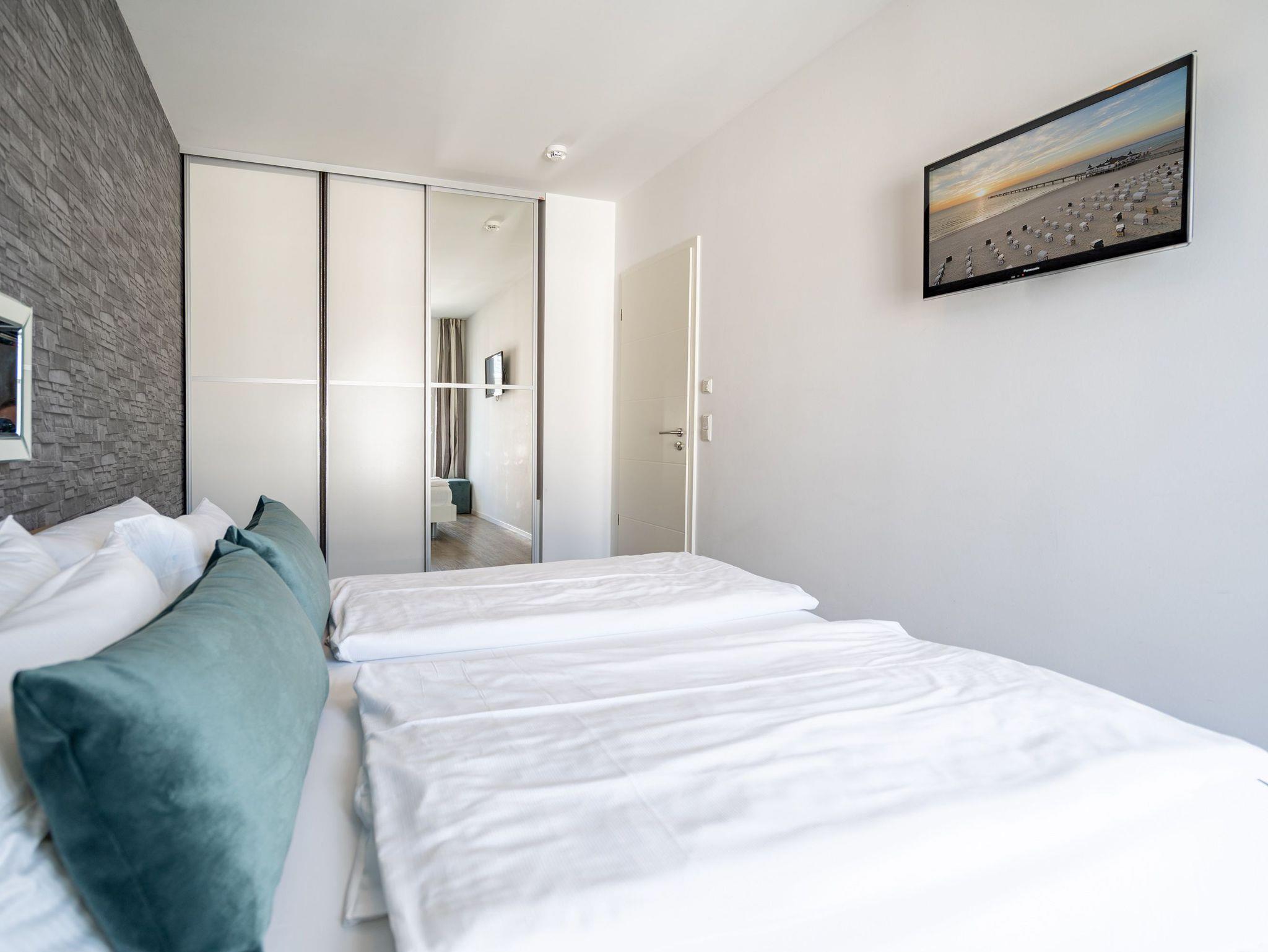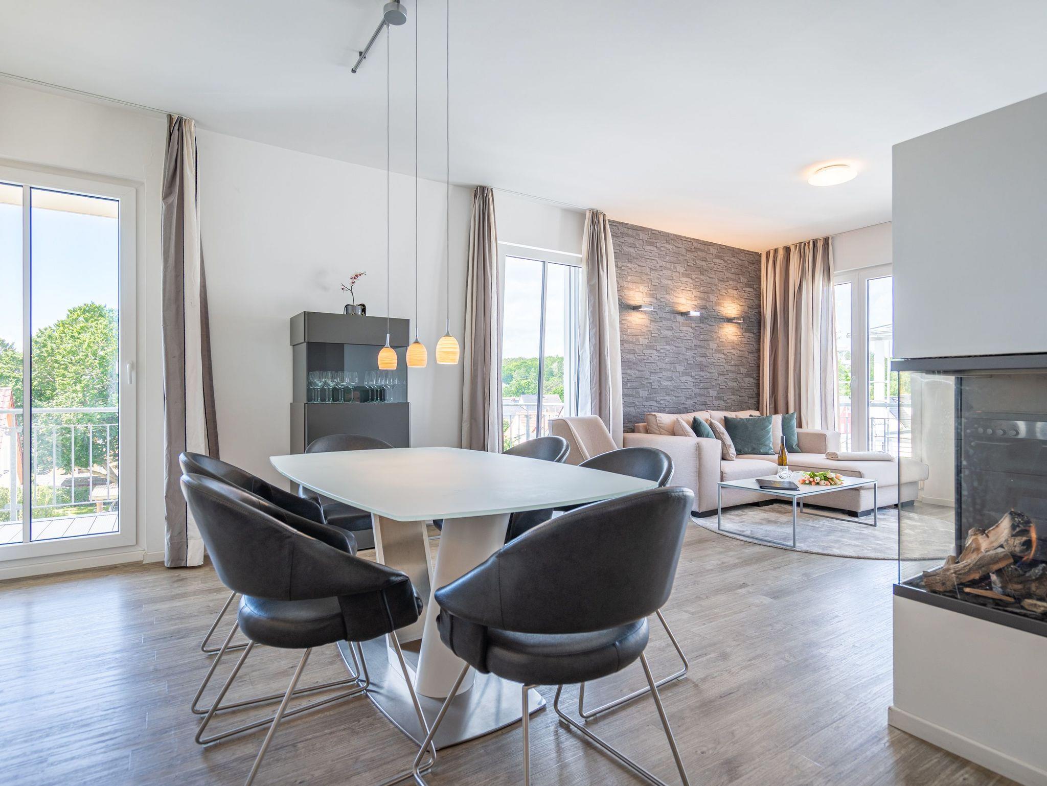 Modernes 2-Raum-Appartement mit Sauna, Gaskamin und zwei Balkonen im Dünenpalais Ahlbeck.