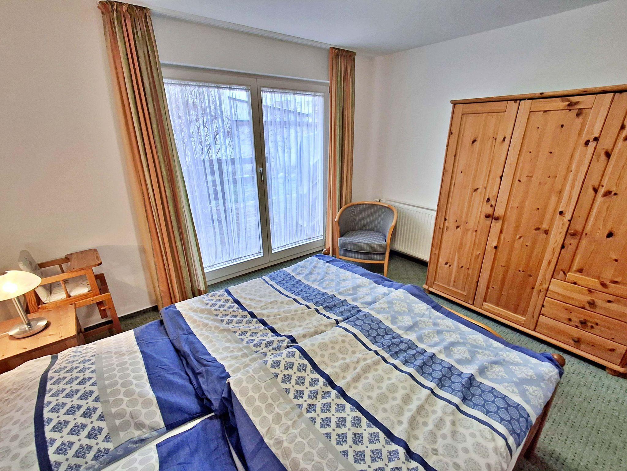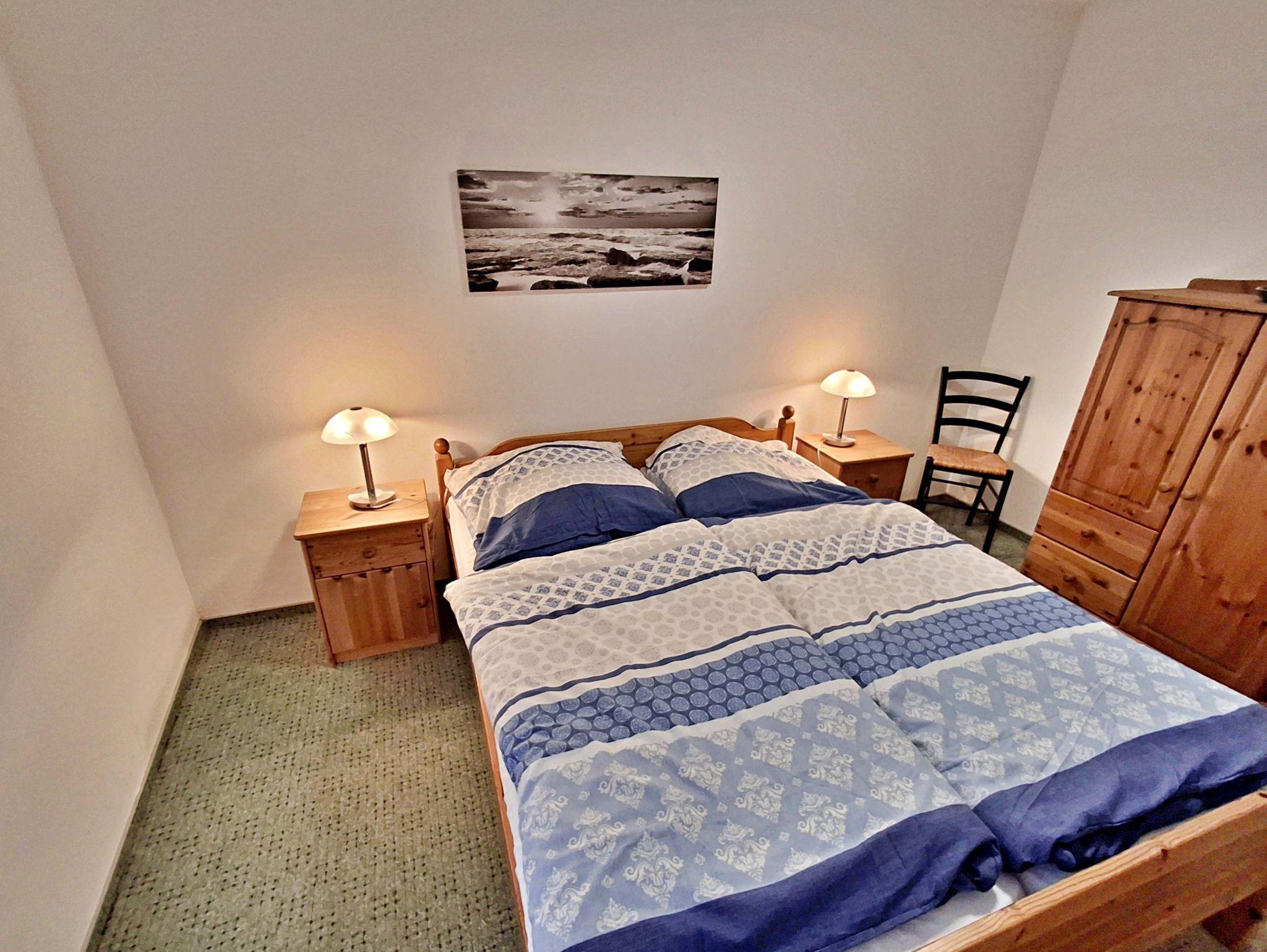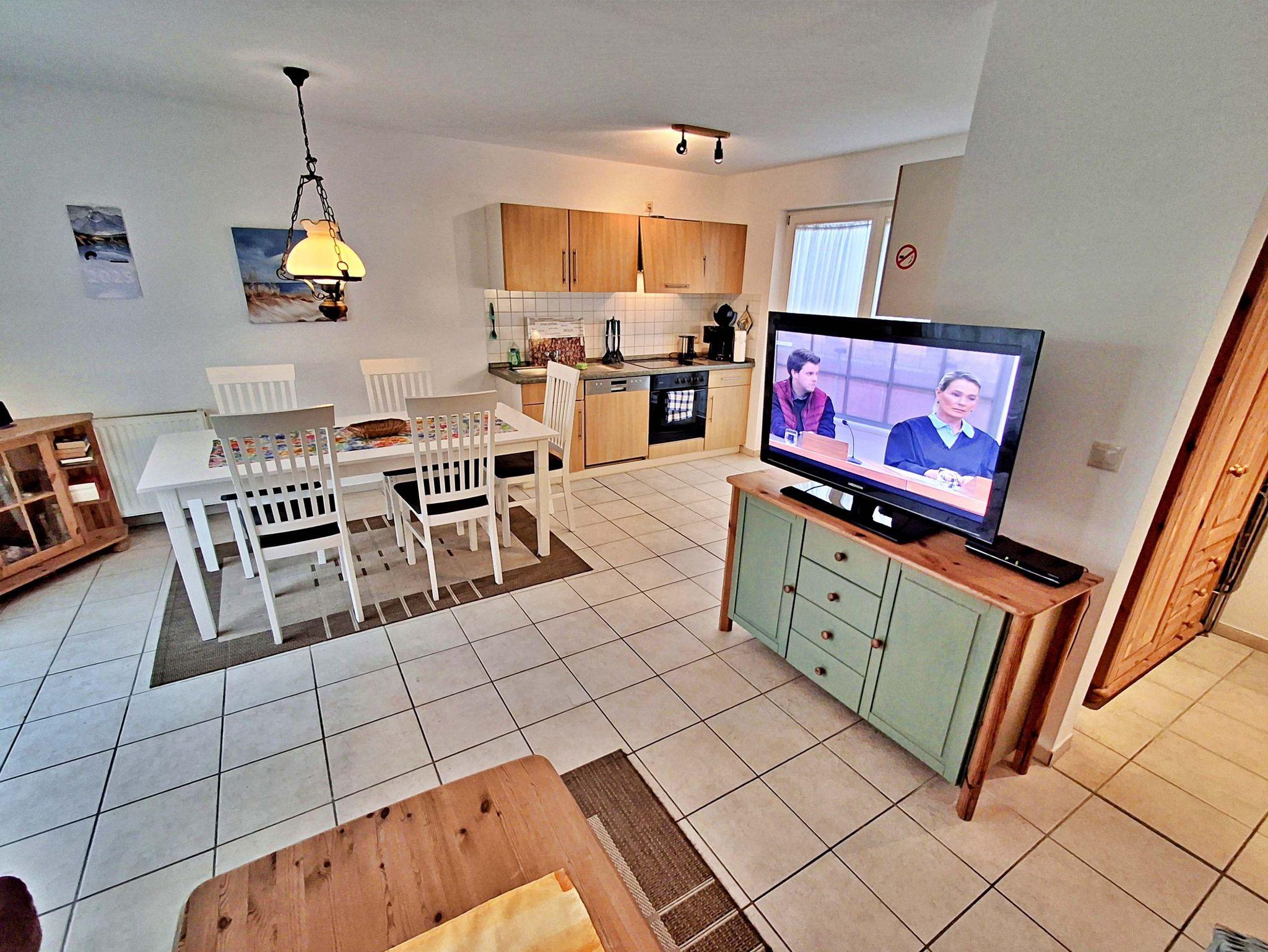 Diese moderne 65qm große 3-Raum-Ferienwohnung im Erdgeschoss verfügt über einen kombinierten Wohn- und Schlafraum (Schlafcouch für max. 1 Kind bis acht Jahre) mit Sat-TV und Radio, zwei Schlafzimmer mit jeweils einem Doppelbett sowie eine Küchenzeile mit 4-Platten-Ceranherd, Backofen, Spülmaschine, Mikrowelle, Kühlschrank mit Gefriermöglichkeit, Kaffeemaschine, Wasserkocher, Toaster und Geschirr. Das Badezimmer hat Dusche/WC und Fußbodenheizung. Die Terrasse, sowie die nnenliegende Terrasse mit Sitzmöbeln lädt zum Verweilen ein und vervollständigt die gemütliche Ausstattung der Wohnung. Ihren Pkw können Sie gern an der Ferienwohnung parken (nicht für Kleinbusse und Anhänger geeignet).
