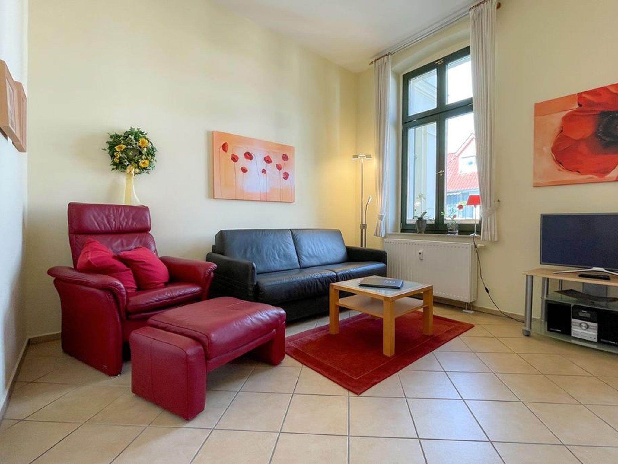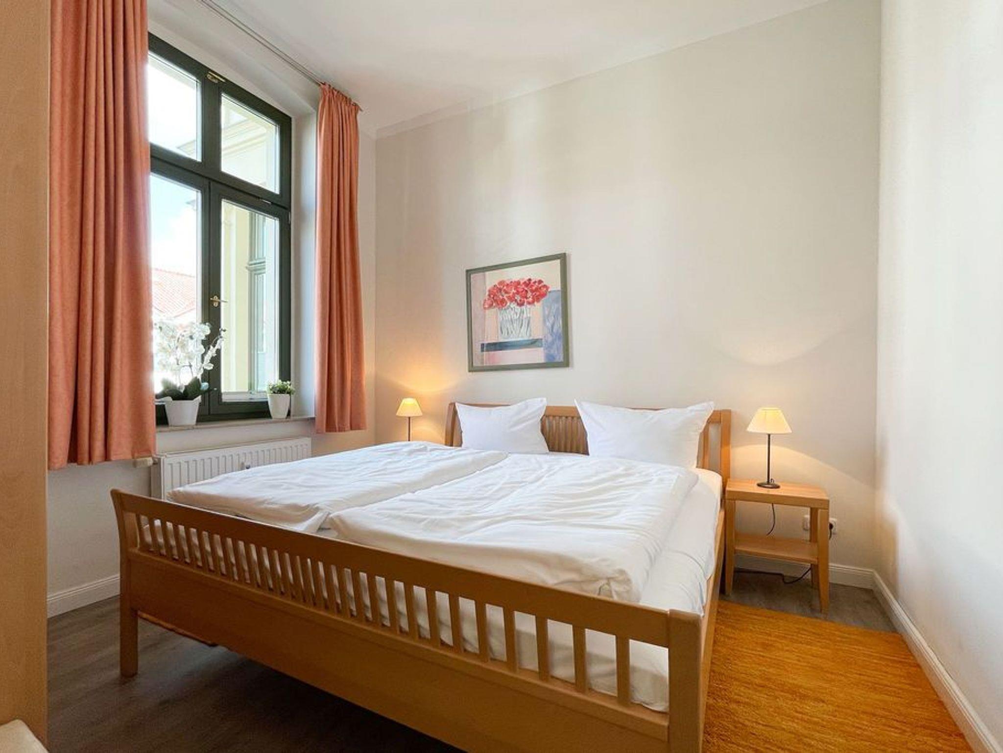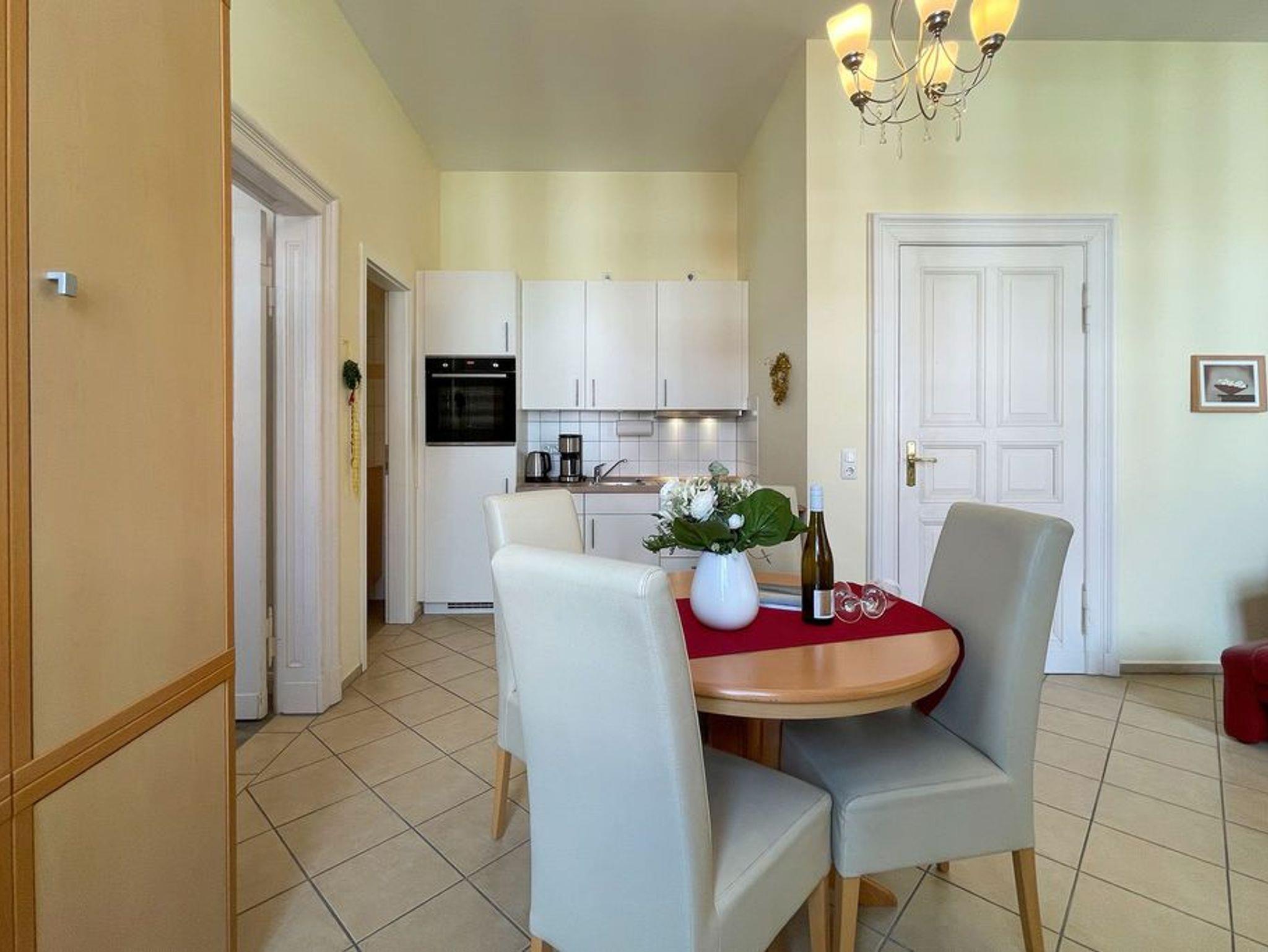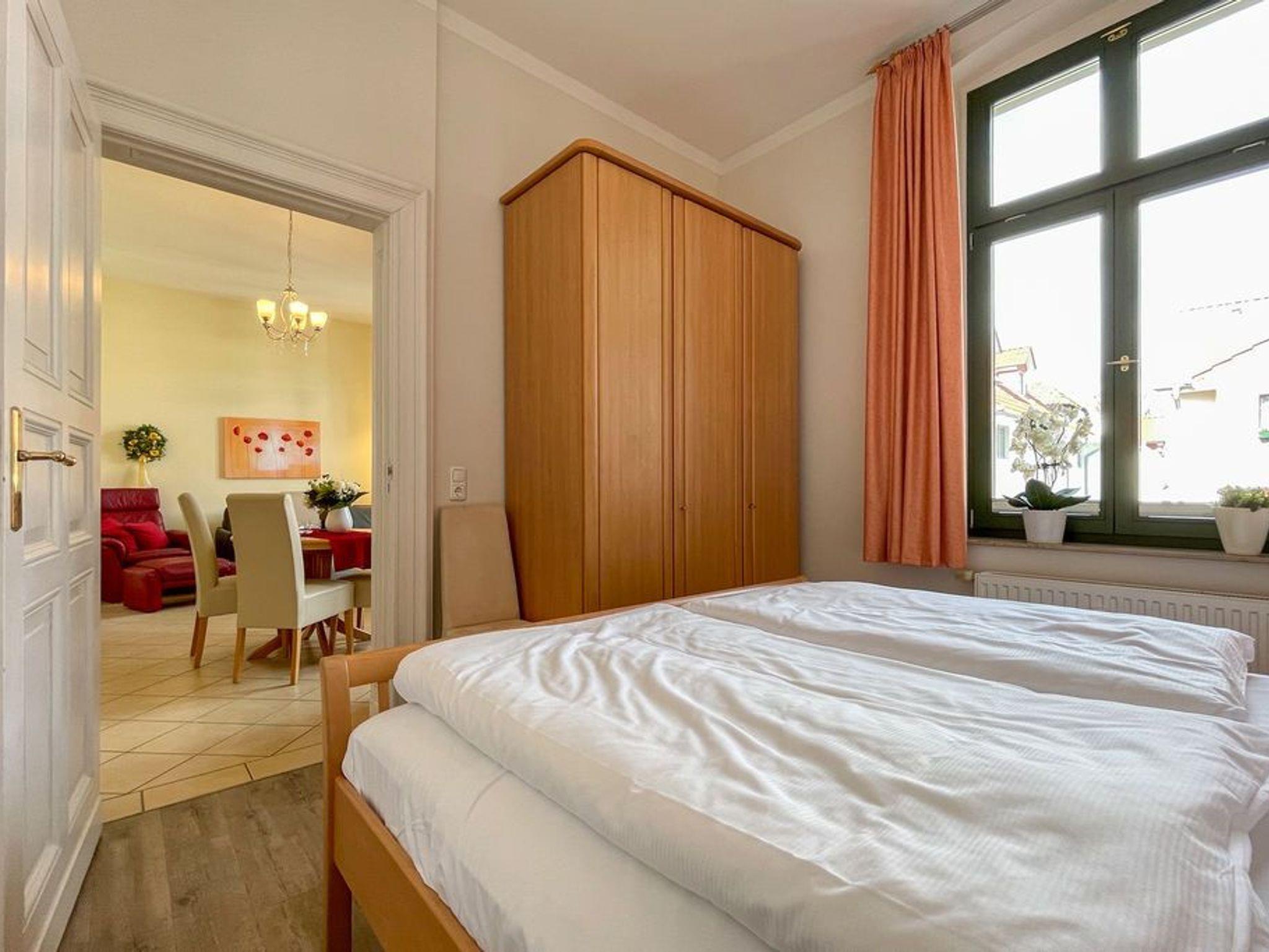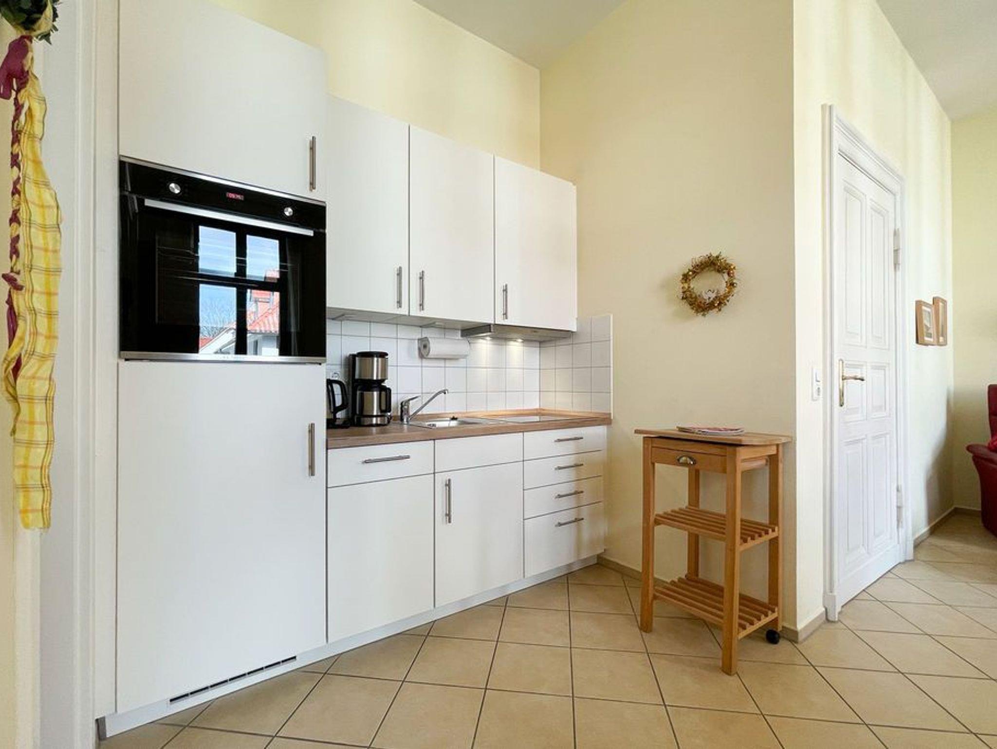 Klassisch elegant! Die Ferienwohnung 4 bietet Ihnen 43 qm Wohnfläche zum Wohlfühlen und ist zur Süd/ West Seite der Villa Goodewind ausgerichtet. Der Wohnbereich mit offener, komplett ausgestatteter Küchenzeile und Balkon lässt keine Wünsche offen. Klassisches Interieur in hochwertiger Ausführung, arrangiert mit liebevollen Details sorgen für eine entspannte, stimmungsvolle Urlaubsatmosphäre. Das Appartement 4 hat den einzigen Balkon der der Nachmittag- und Abendsonne zugewandt ist. Ein Schlafzimmer mit Doppelbett und eine Schlafcouch im Wohnzimmer bieten 3 Personen Platz für einen gelungenen Urlaub. Ein Badezimmer mit Dusche macht die Wohnung komplett. Für Ihren Komfort steht die Erstausstattung Wäsche für Sie bereit. Das WLAN-Netz im Haus kann kostenfrei genutzt werden.