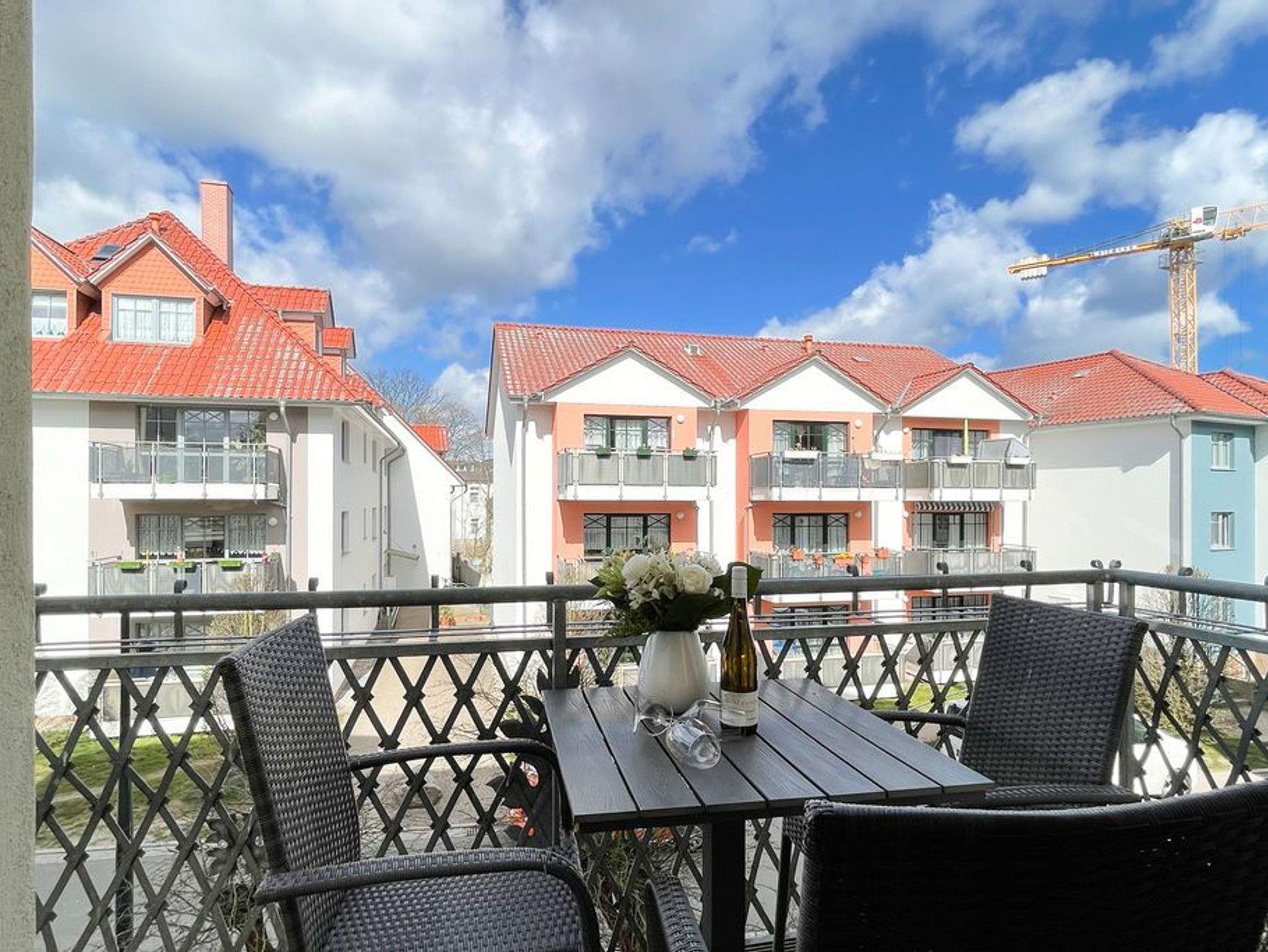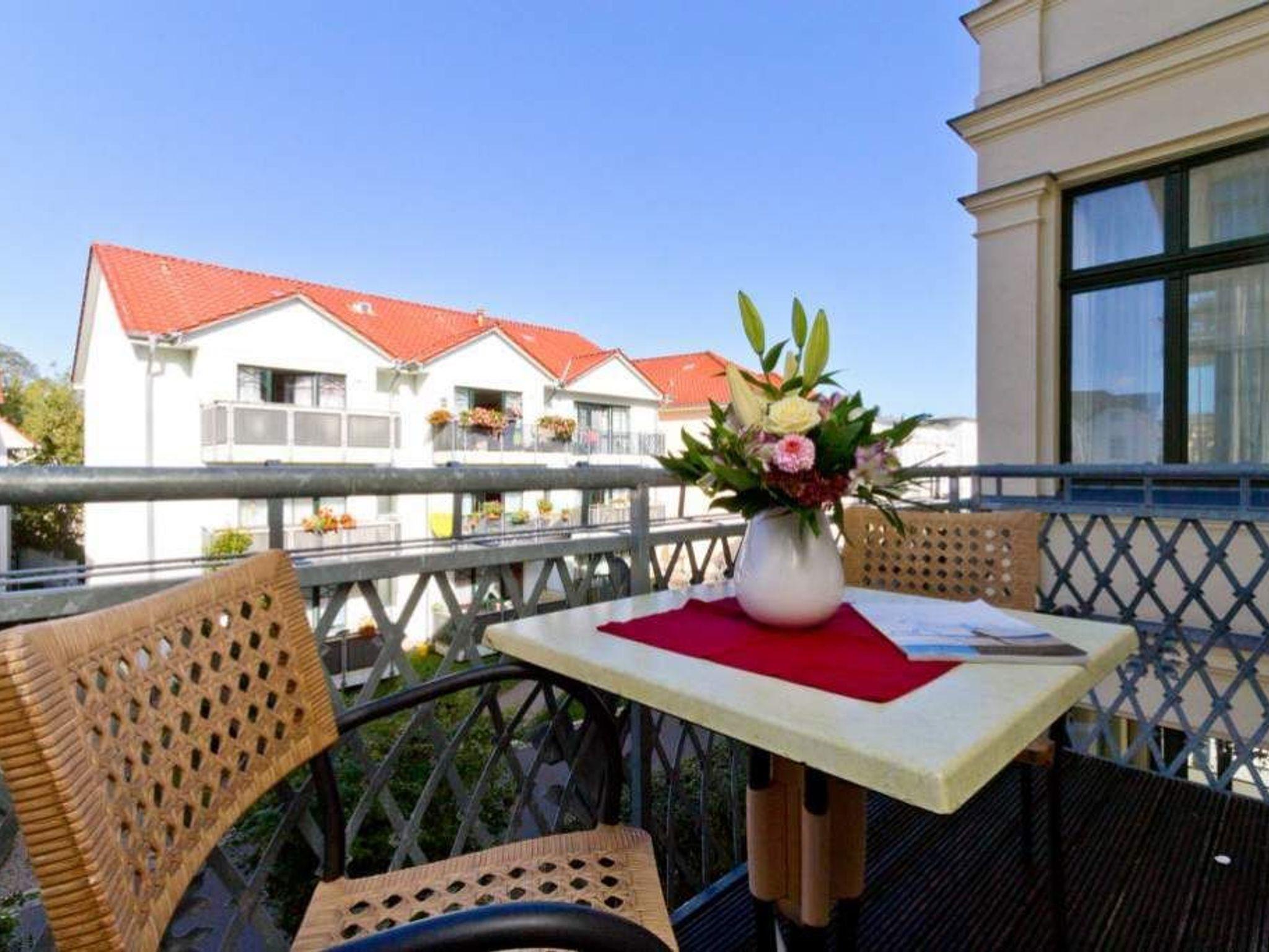 Klassisch elegante Ferienwohnung mit Balkon und WLAN in der Villa Goodewind in Ahlbeck, nur 180 m vom Strand entfernt.