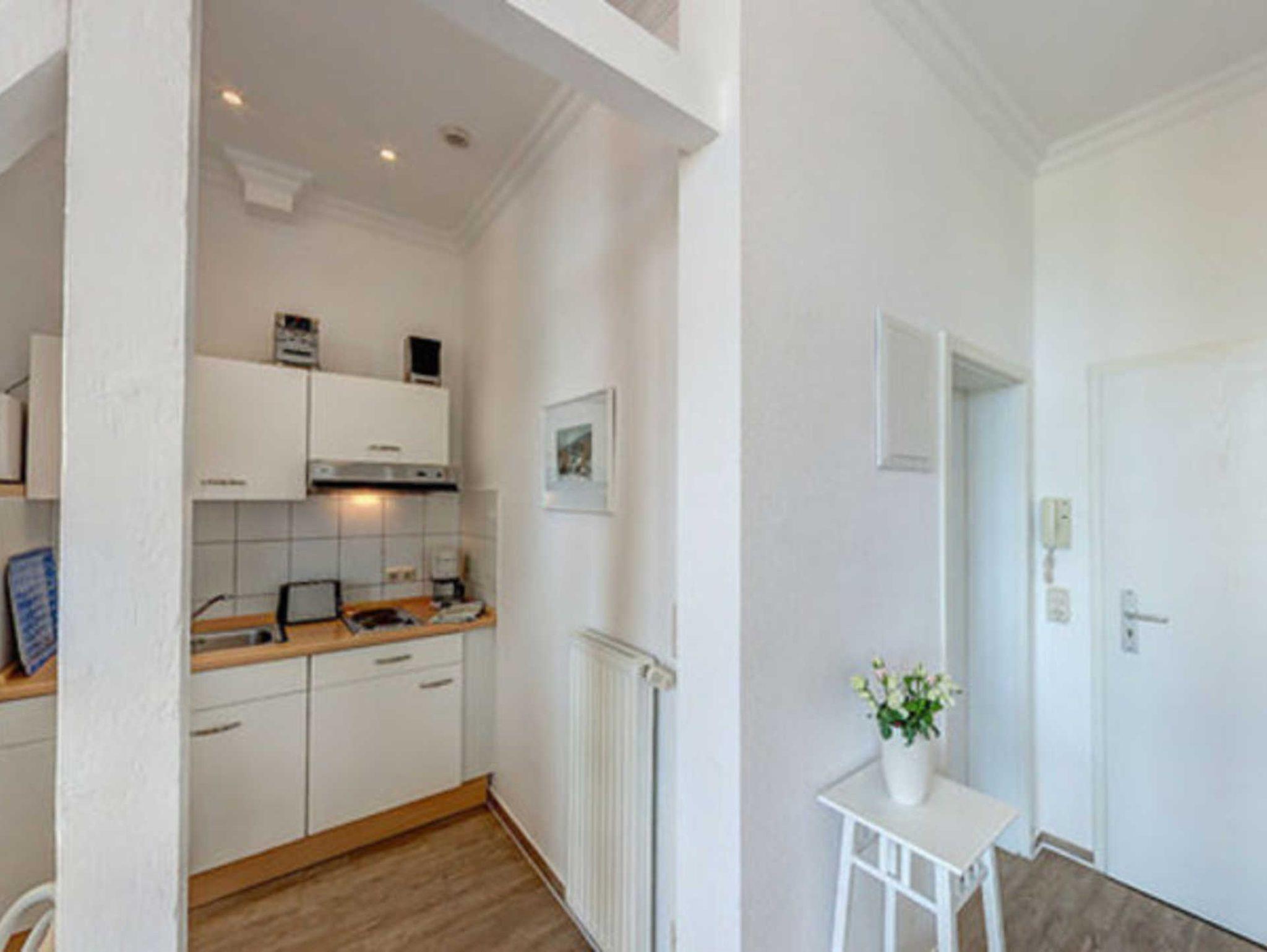 Das gemütliche 1-Zimmer-Appartement Nr. 9 befindet sich im 1. Obergeschoss der Villa Ostseewarte. Es verfügt über einen geräumigen Wohn- und Schlafraum mit einem Doppelbett, einer gemütlichen Sitzgruppe sowie einem Essplatz. Die integrierte Küchenzeile ist voll ausgestattetet mit Kaffeemaschine, Wasserkocher, Toaster und Mikrowelle. Das Bad ist mit Dusche und WC ausgestattet. Zum Appartement gehört darüber hinaus ein möblierter Balkon. Ein Pkw-Stellplatz steht Ihnen auf dem Grundstück kostenfrei zur Verfügung und Ihre Fahrräder können Sie ebenfalls auf dem Grundstück in einem separaten Abstellraum unterbringen. Alle Wohnungen in der Villa Ostseewarte haben passwortgeschütztem DSL-WLAN Internetzugang (gerätegebunden, Euro 1,50 pro Tag und Gerät). Ein FAHRSTUHL wurde nachträglich eingebaut. Eine Waschmaschine können Sie gegen Gebühr gern nutzen (Münzgerät).