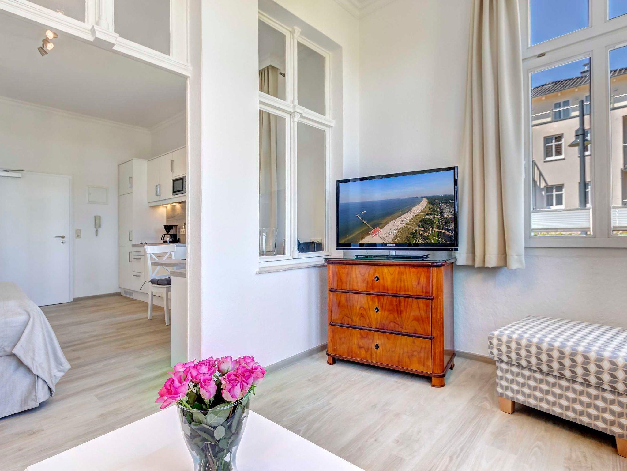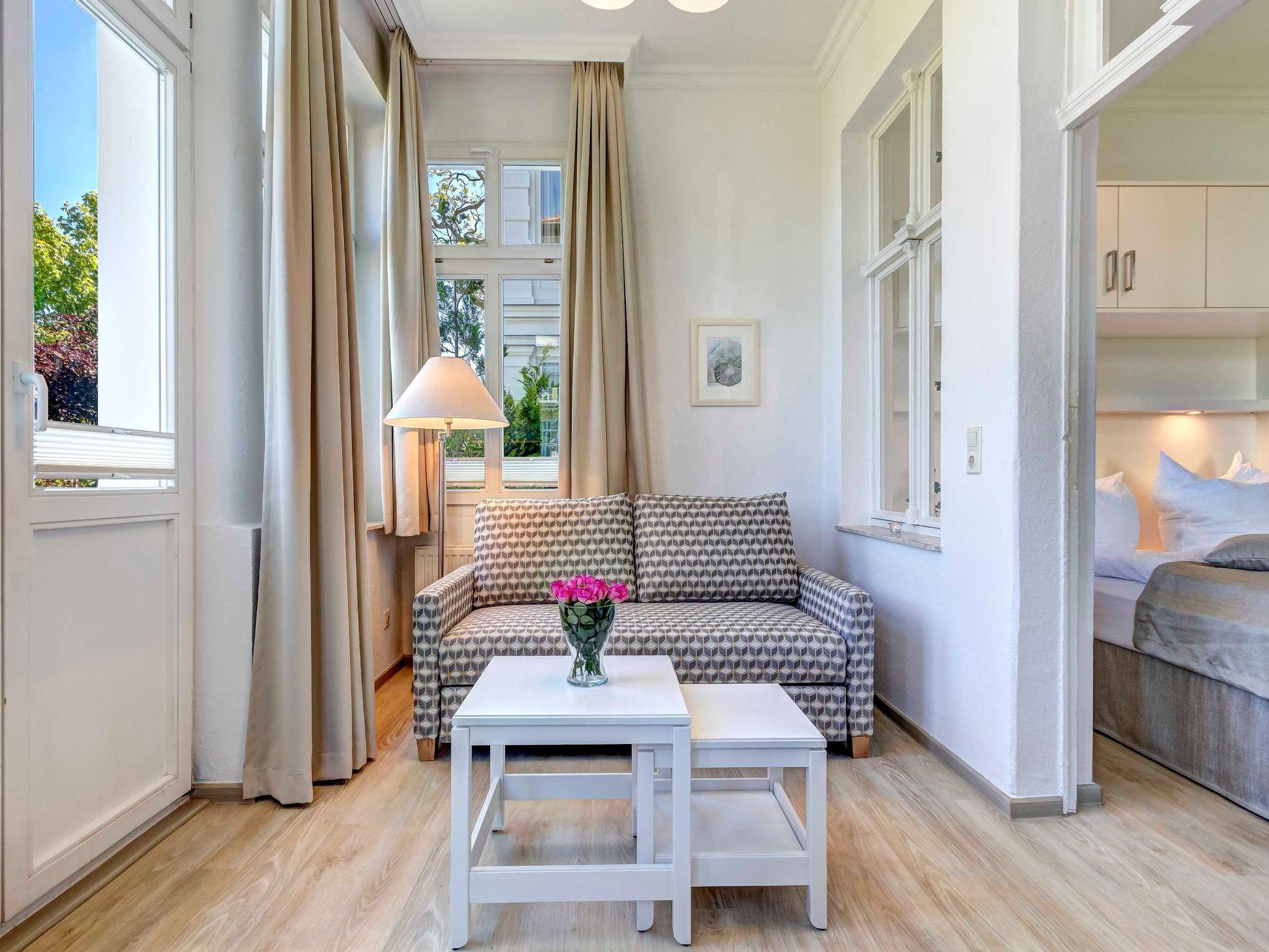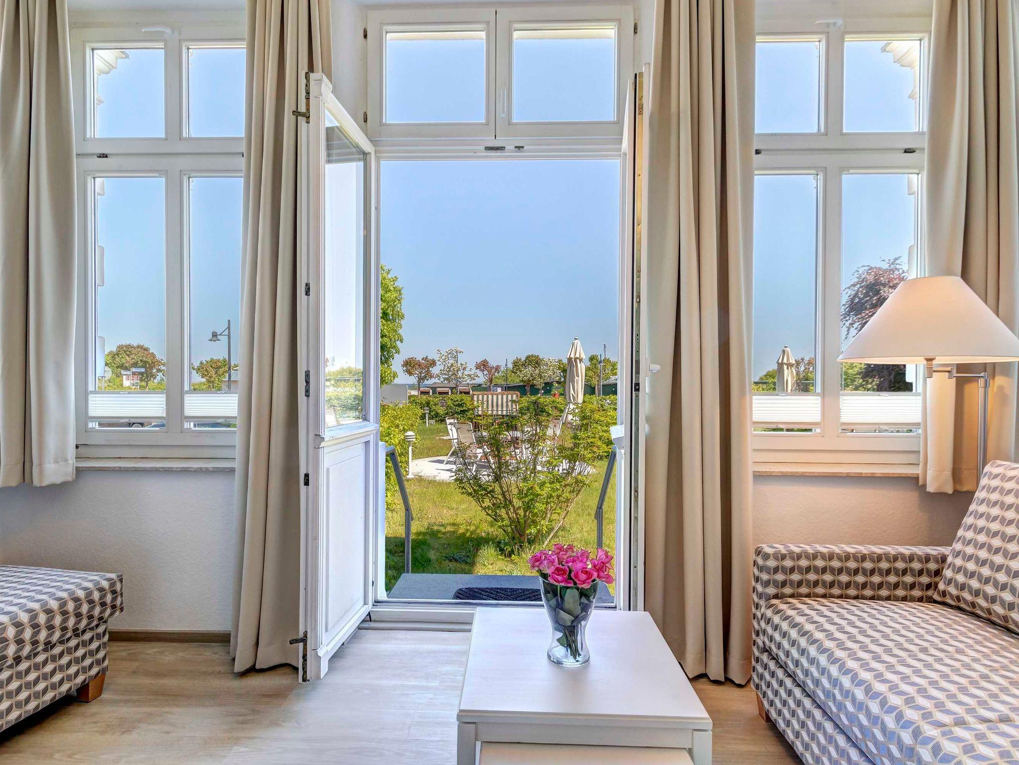 Gemütliches 2-Zimmer-Apartment direkt an der Strandpromenade von Ahlbeck mit großem Garten und Seeblick.