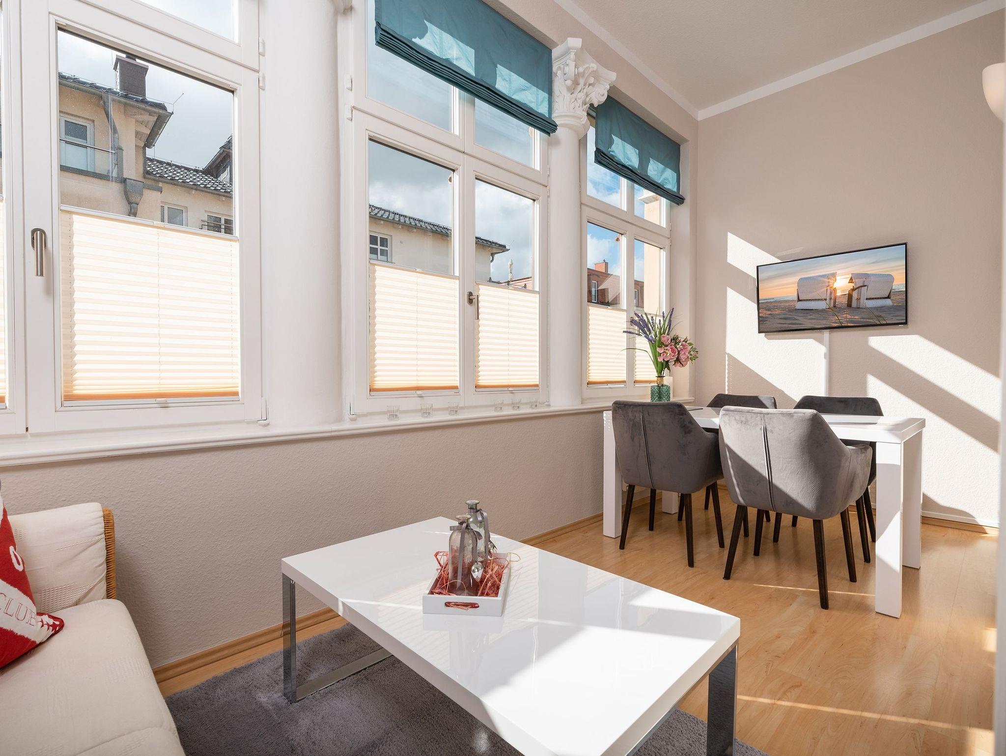 Erleben Sie im Appartement 11 der Villa Luna die perfekte Kombination aus historischem Charme und modernem Wohnkomfort. Genießen Sie die direkte Lage an der Strandpromenade von Ahlbeck und lassen Sie sich von der einzigartigen Atmosphäre dieses Ortes verzaubern.