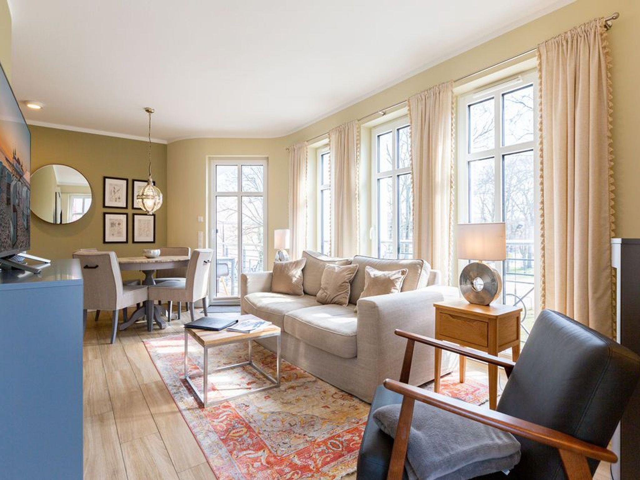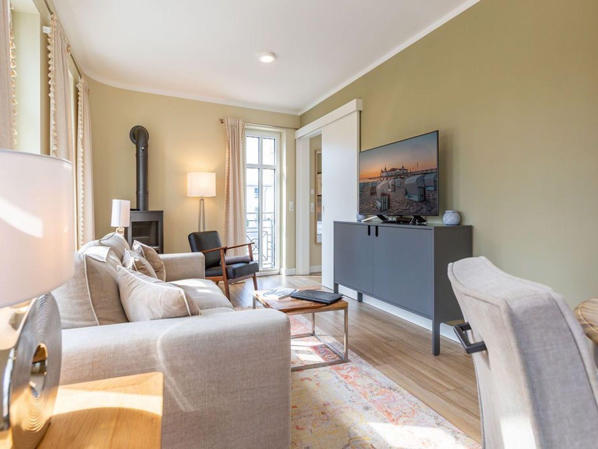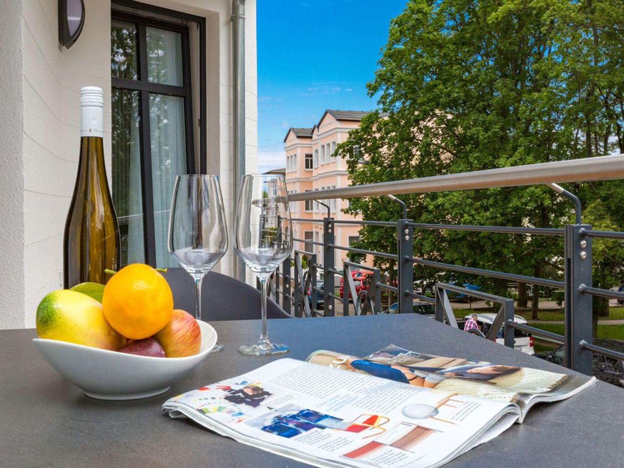 Stilvolle Ferienwohnung am Kurpark Ahlbeck mit Sauna, Balkon und modernem Komfort für erholsame Tage.