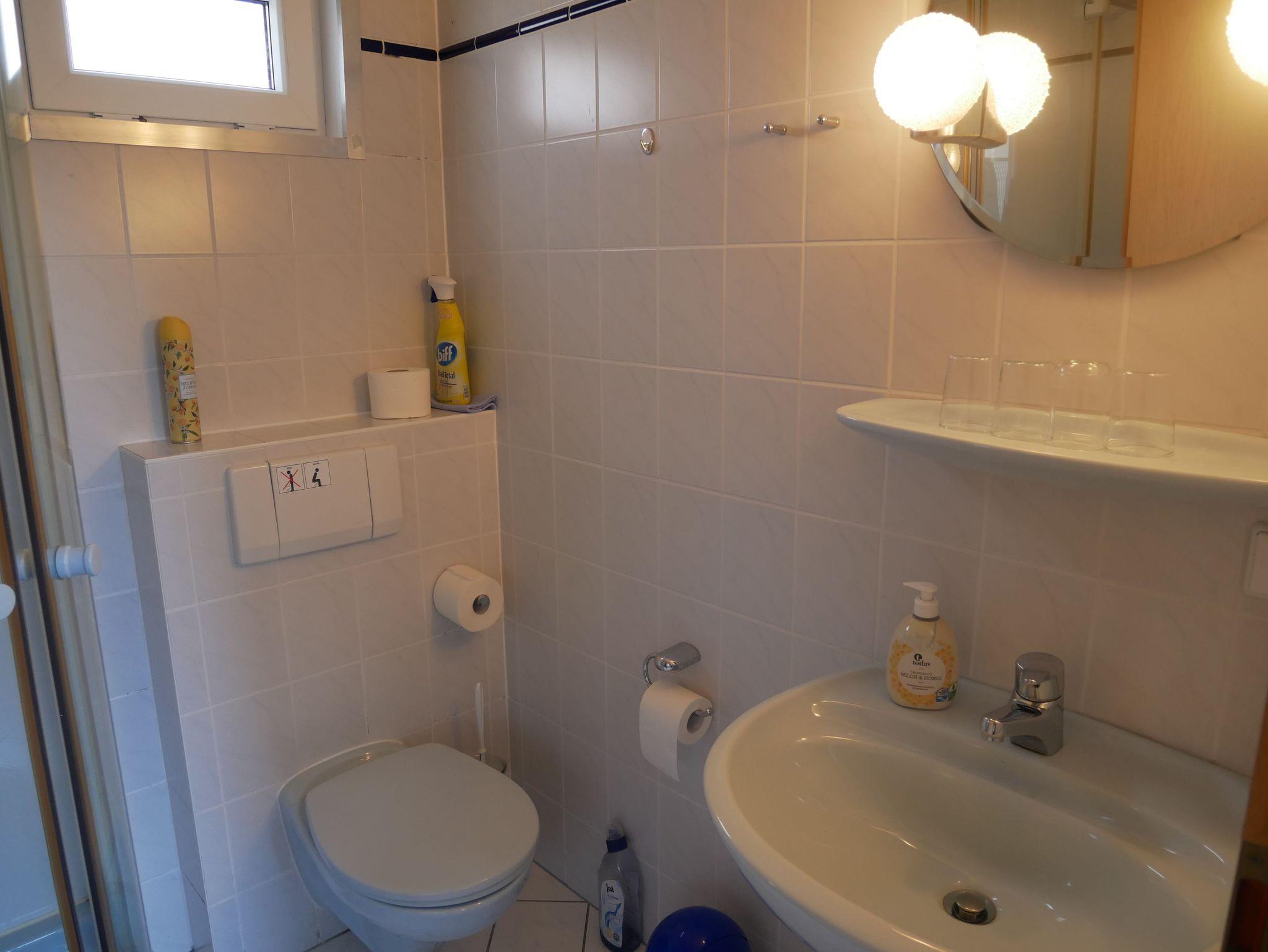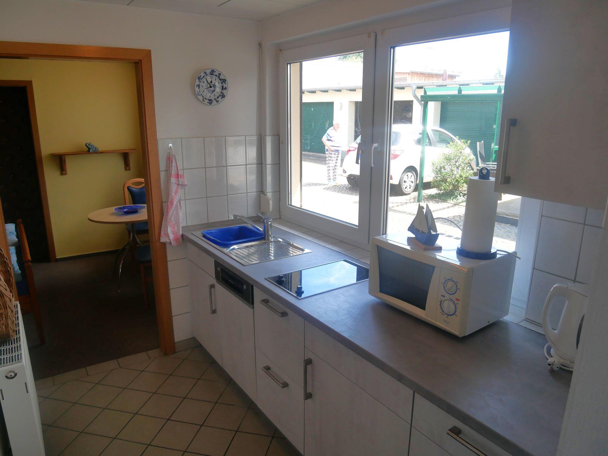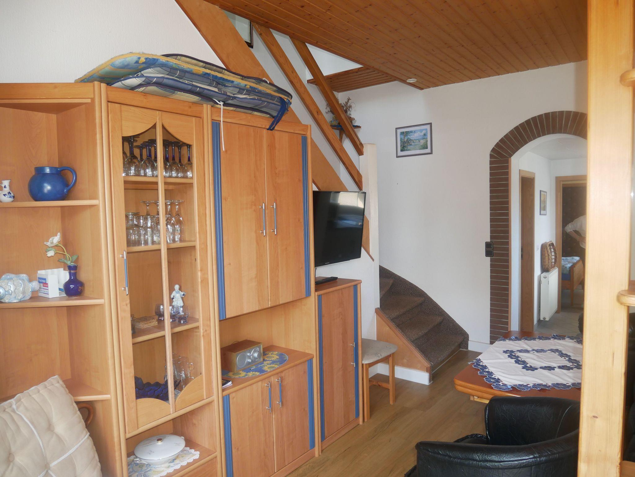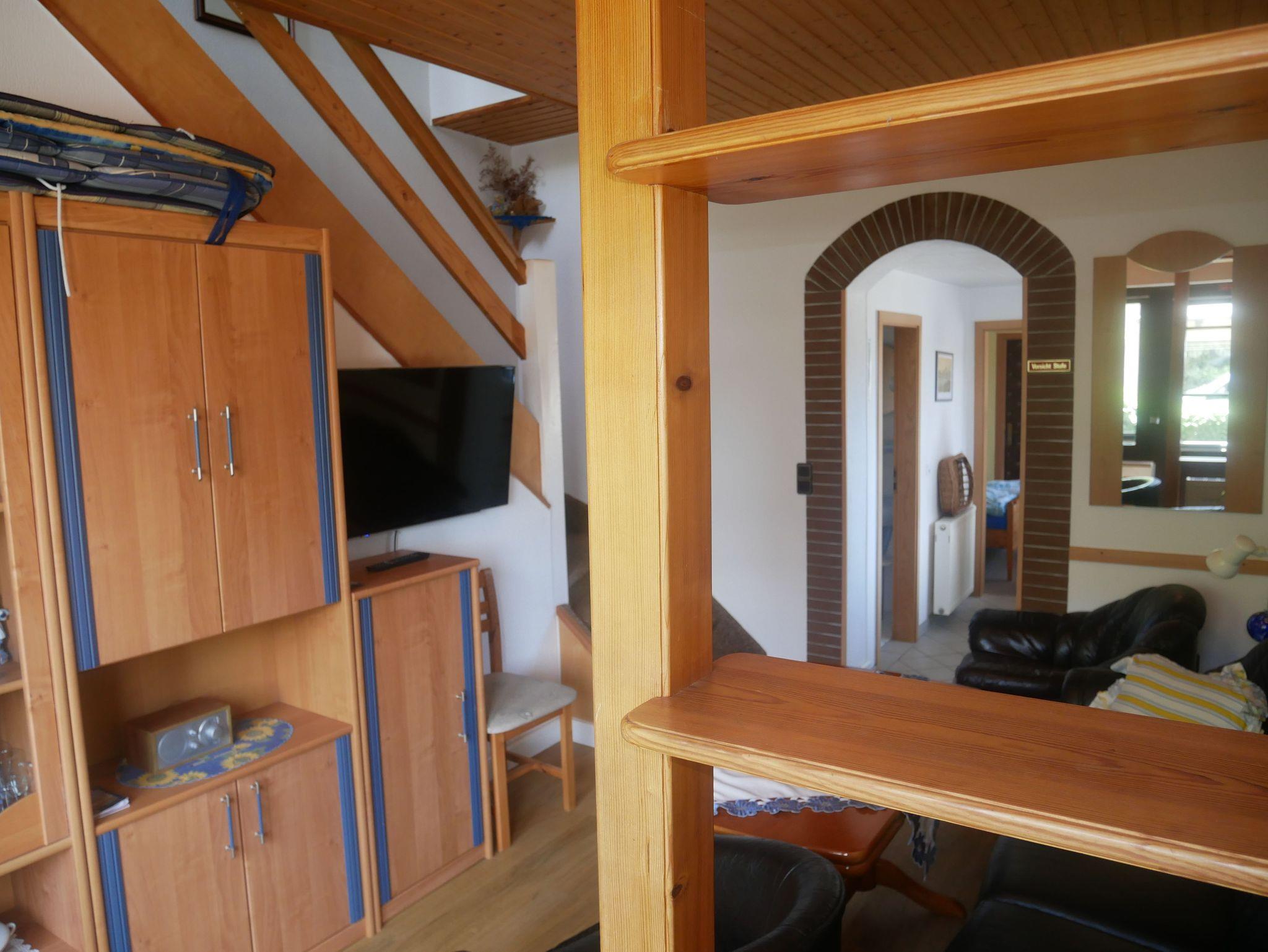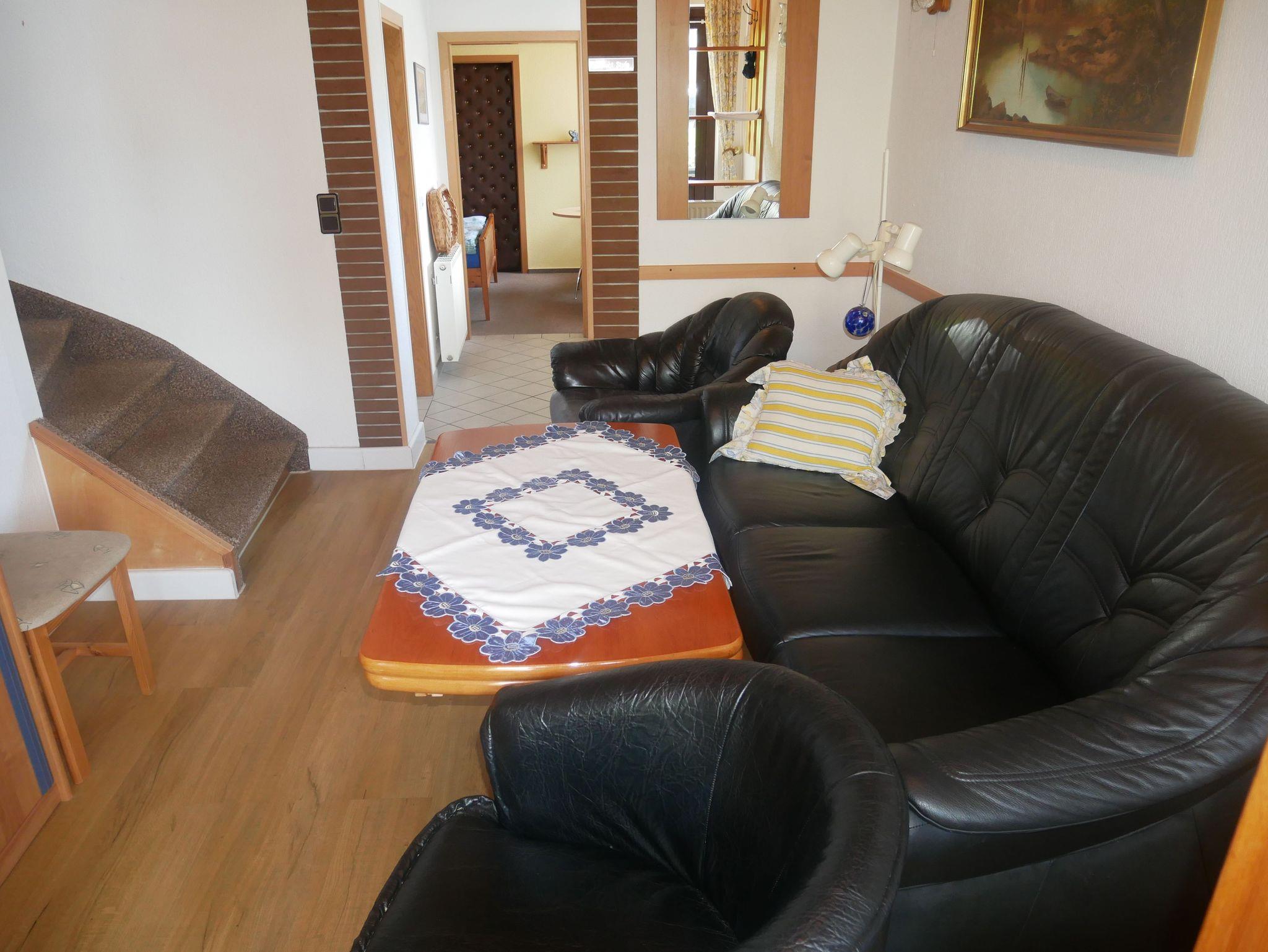 Die 3-Raum-Wohnung blau befindet sich im Erd- und Obergeschoss, sie ist ca. 60 m² groß. Das Wohnzimmer ist mit einer gemütlichen Couch, Sessel und Flachbildfernseher ausgestattet. Im Durchgang zwischen Wohnzimmer und Schlafzimmer befindet sich die offene Küche. Die Küche verfügt über ein 2er-Cerankochfeld, Kühlschrank mit Gefriermöglichkeit, Kaffeemaschine, Wasserkocher, Toaster und Mikrowelle. Das Schlafzimmer im Erdgeschoss ist ausgestattet mit einem gemütlichen Doppelbett und Kleiderschrank. Das zweite Schlafzimmer im Obergeschoss ist ebenfalls mit einem Doppelbett ausgestattet. Das Badezimmer befindet sich im Erdgeschoss und verfügt über eine Dusche und einen Haartrockner. Vor der Wohnung befindet sich eine möblierte Terrasse.