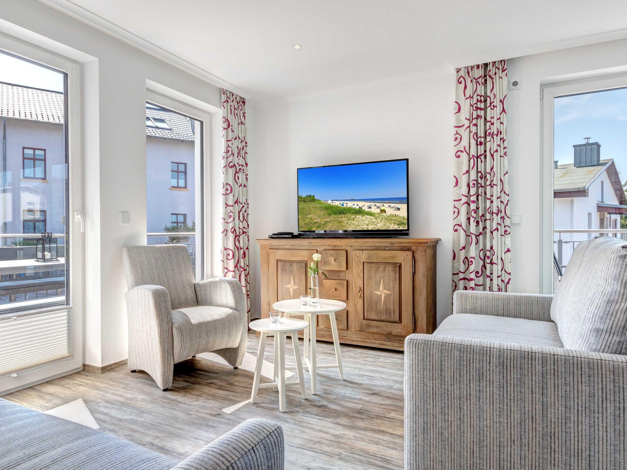 Moderne Villa Teutonia in Ahlbeck mit Strandnähe, zwei Balkonen und Aufzug für komfortablen Urlaub.