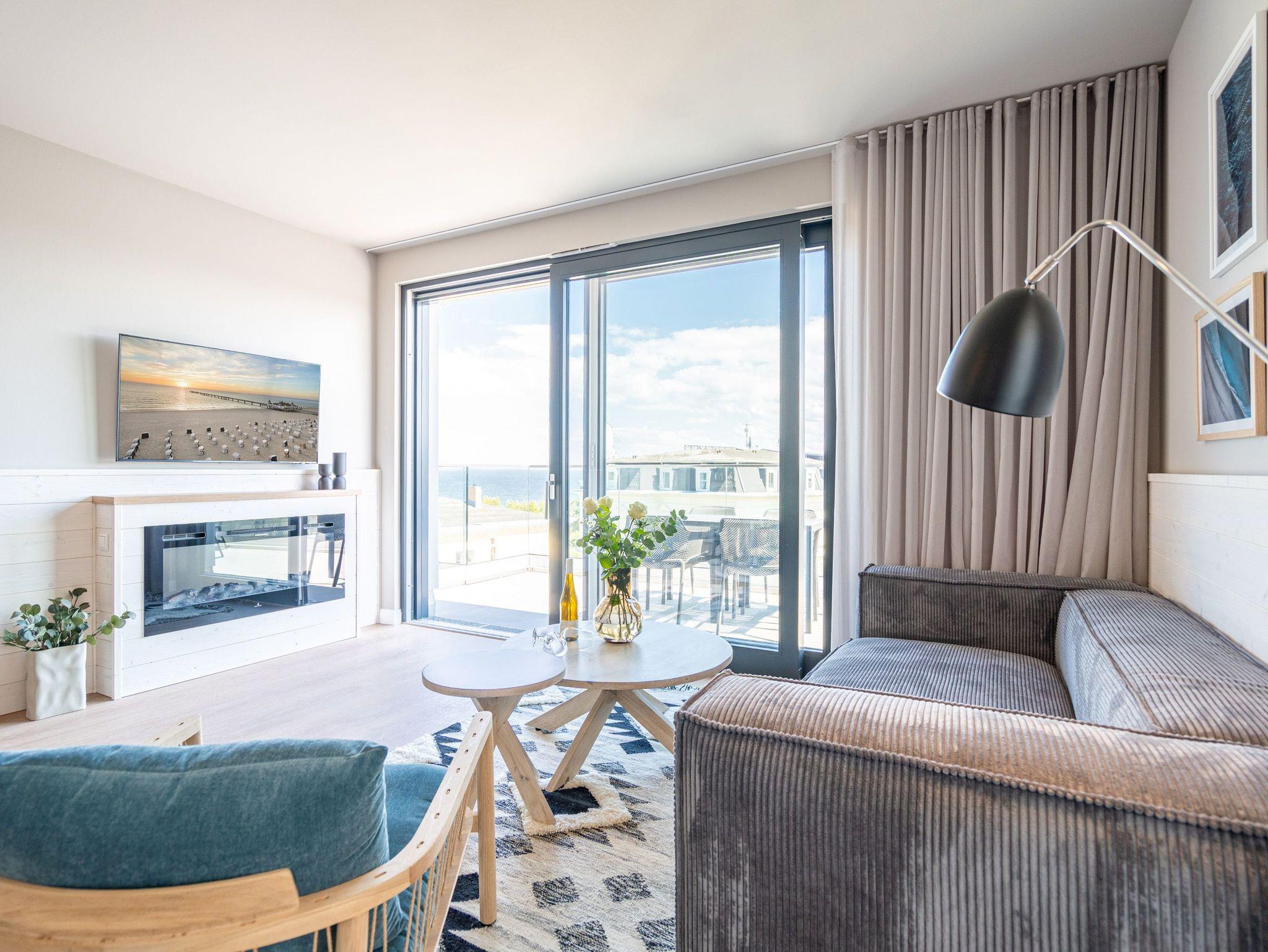 Genießen Sie atemberaubenden Ostseeblick vom Balkon dieses stilvollen, modernen 2-Zimmer-Apartments in Ahlbeck.